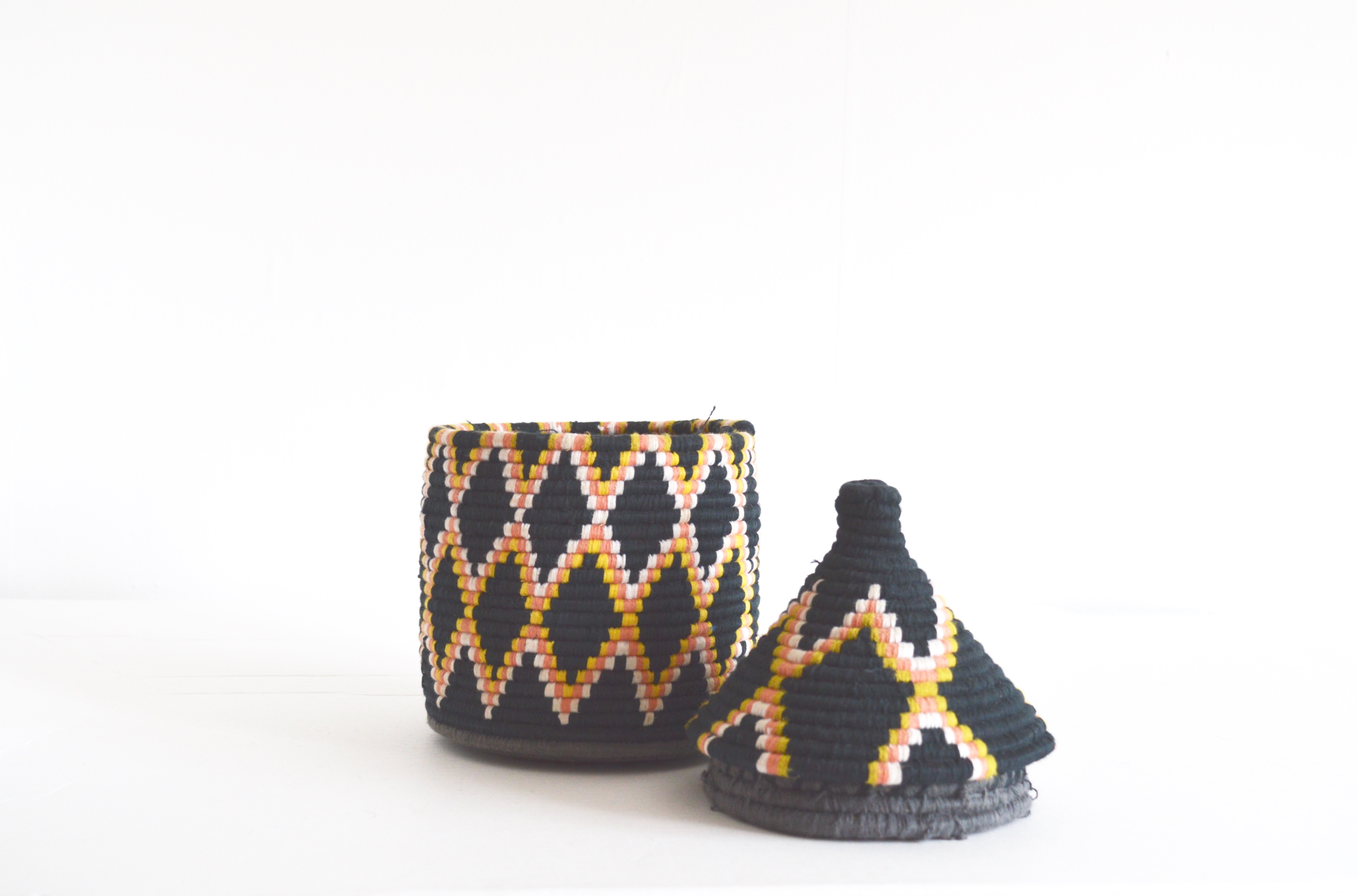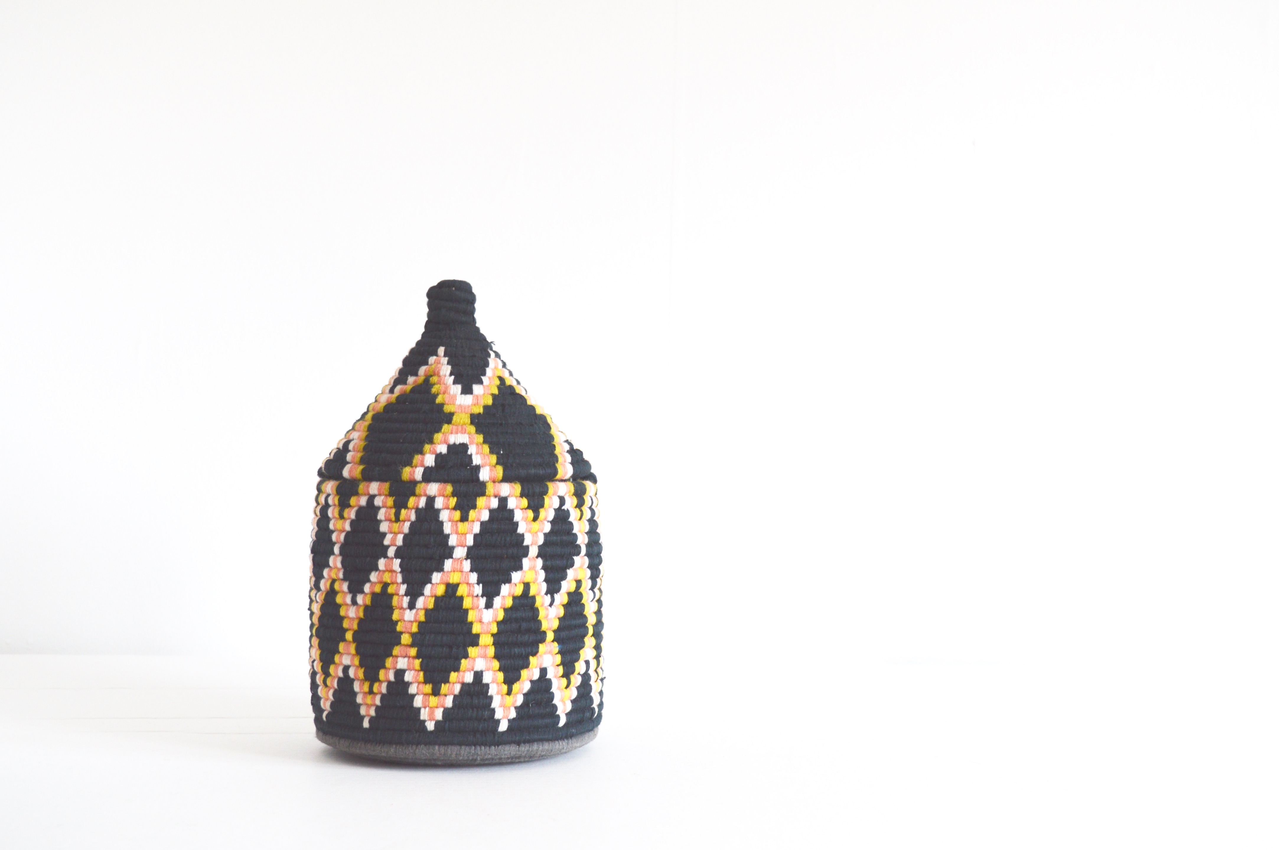 Berber Basket Handwoven Vintage Moroccan Berber Wool Lidded Basket