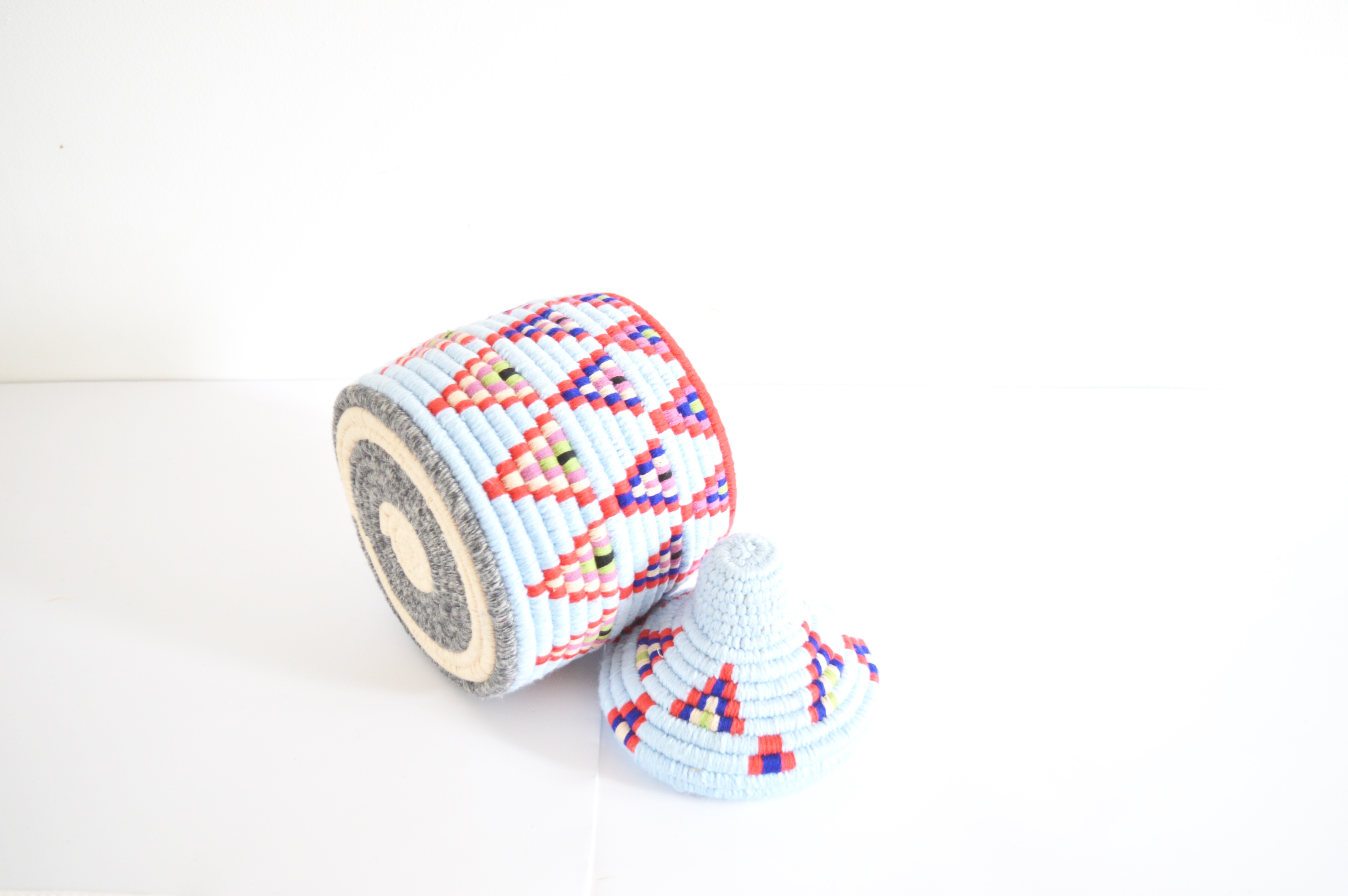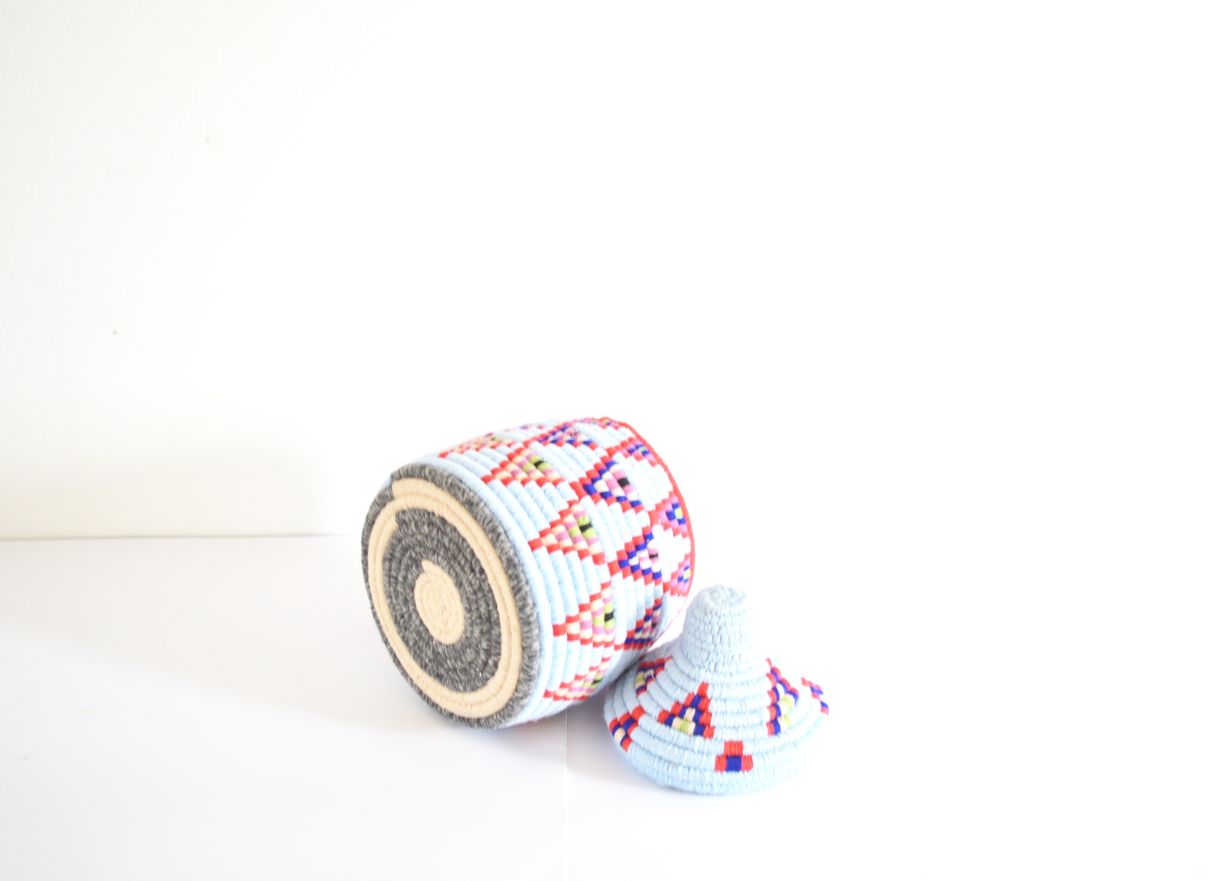 Berber Basket Handwoven Vintage Moroccan Berber Wool Lidded Basket