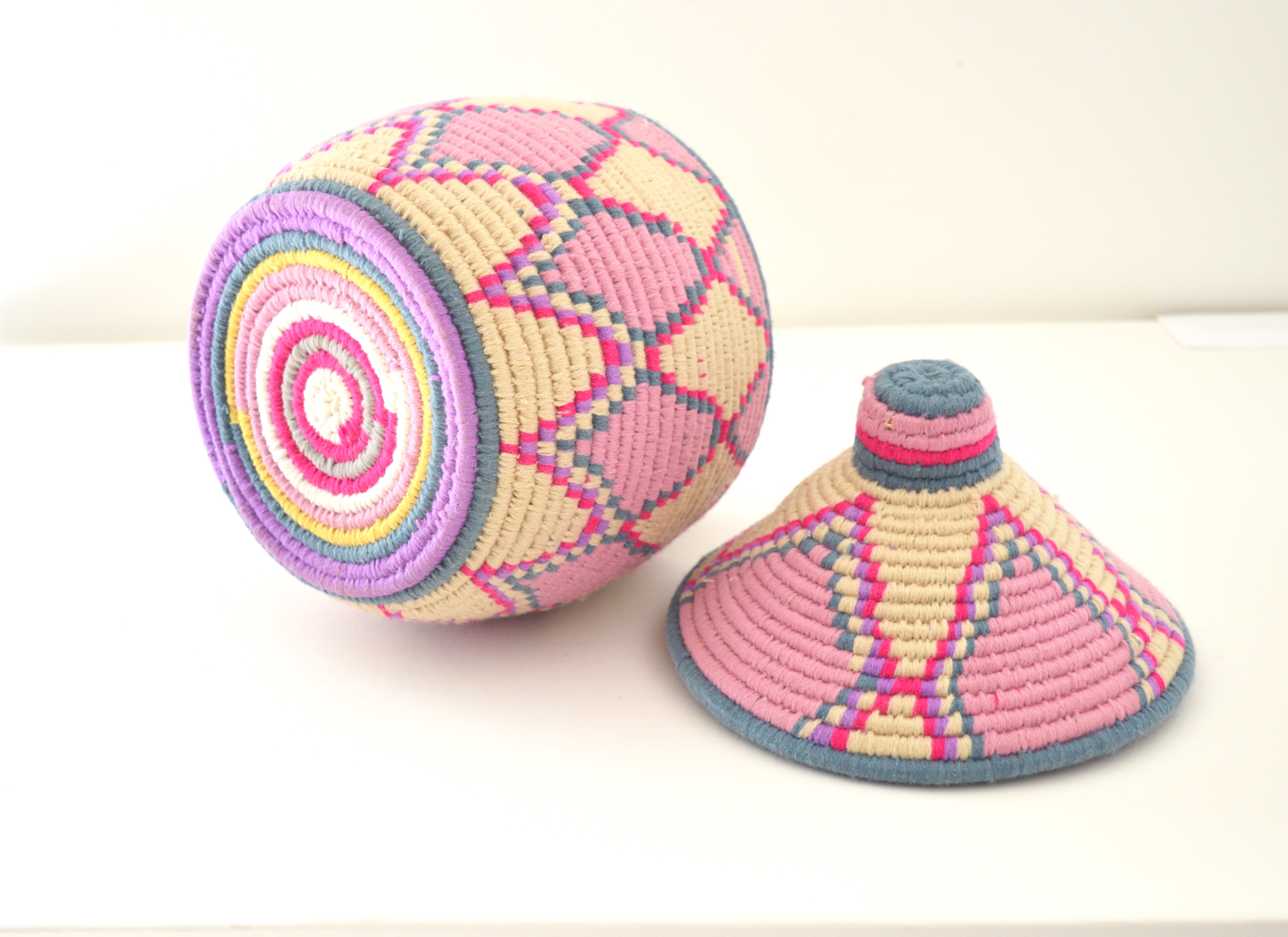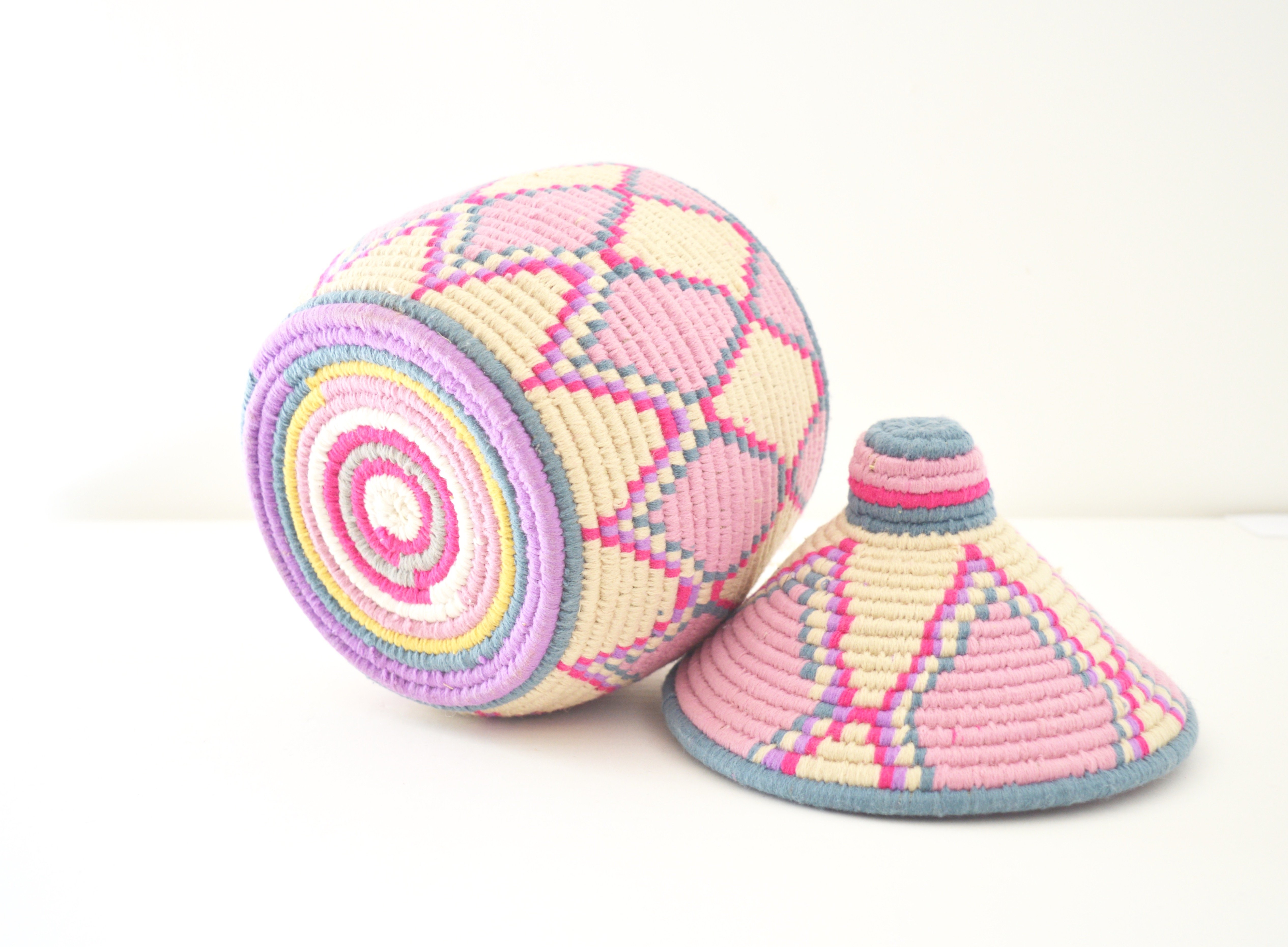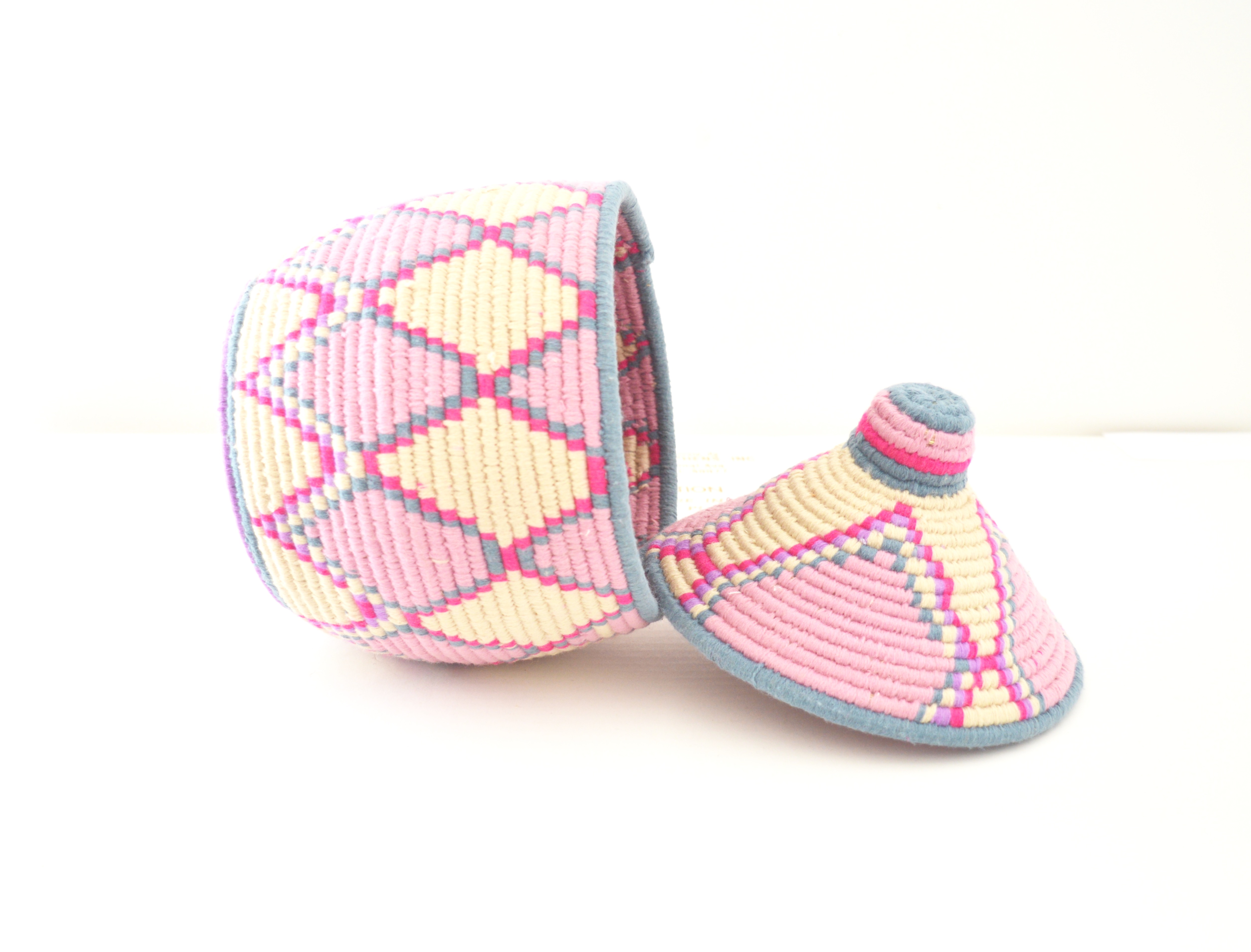 Berber Basket Handwoven Vintage Moroccan Berber Wool Lidded Basket