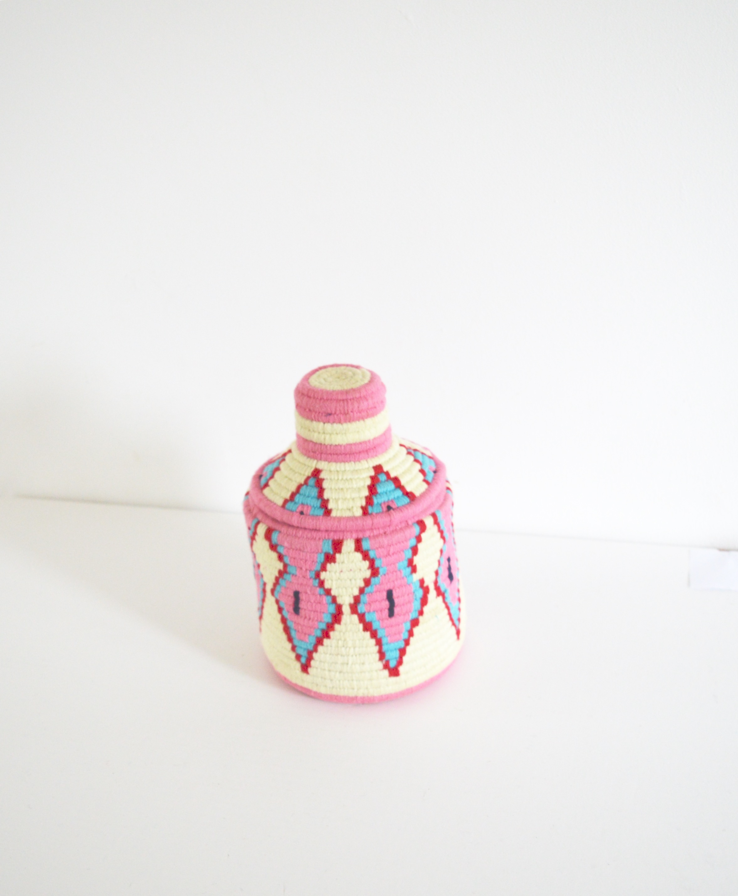 Berber Basket Handwoven Vintage Moroccan Berber Wool Lidded Basket