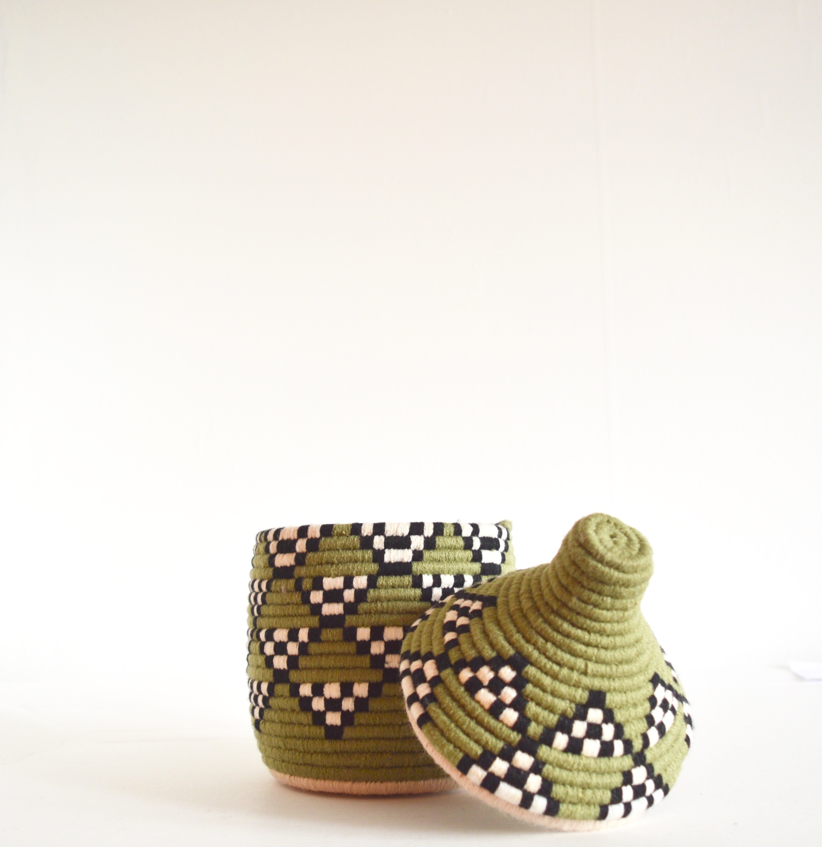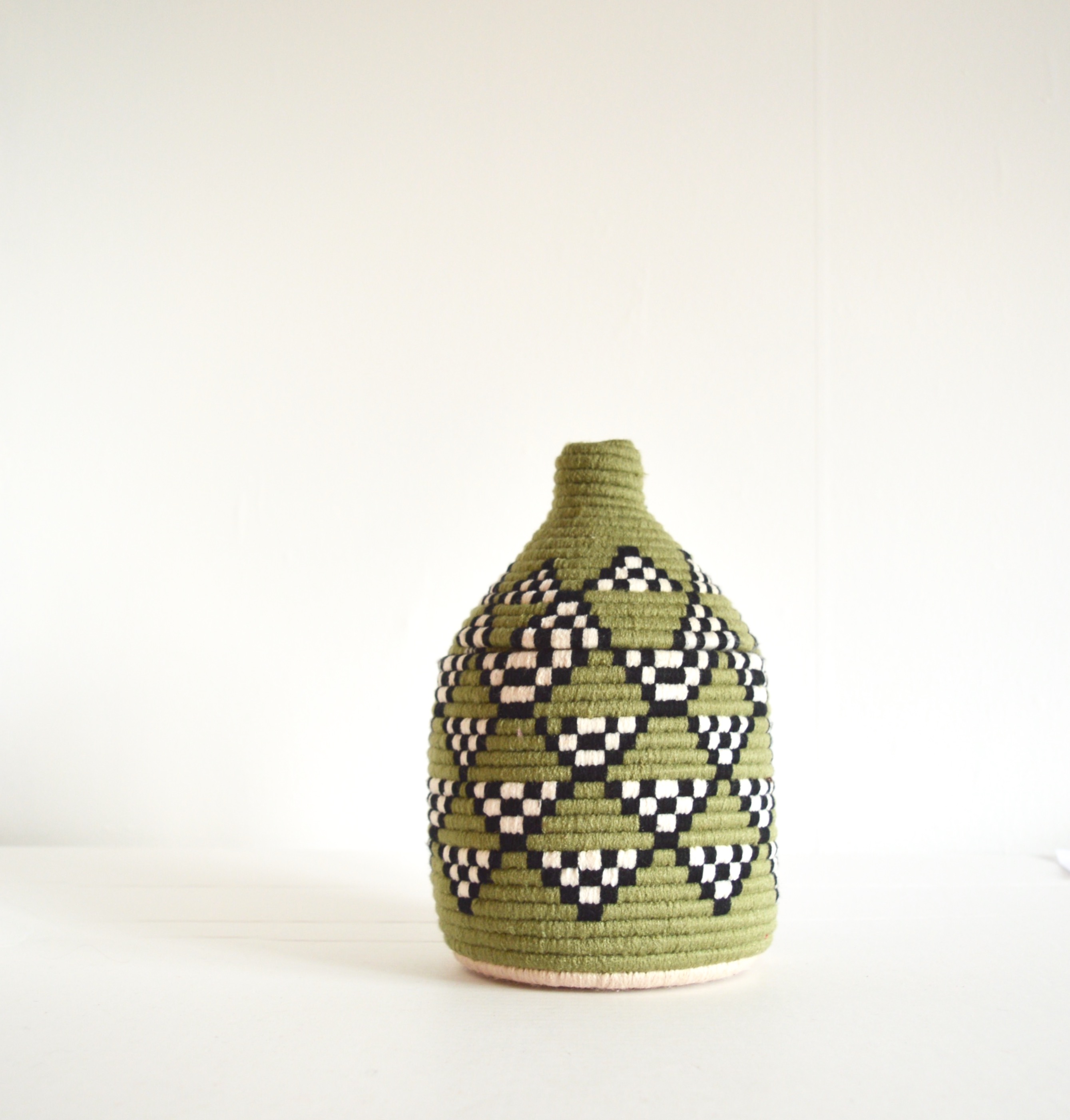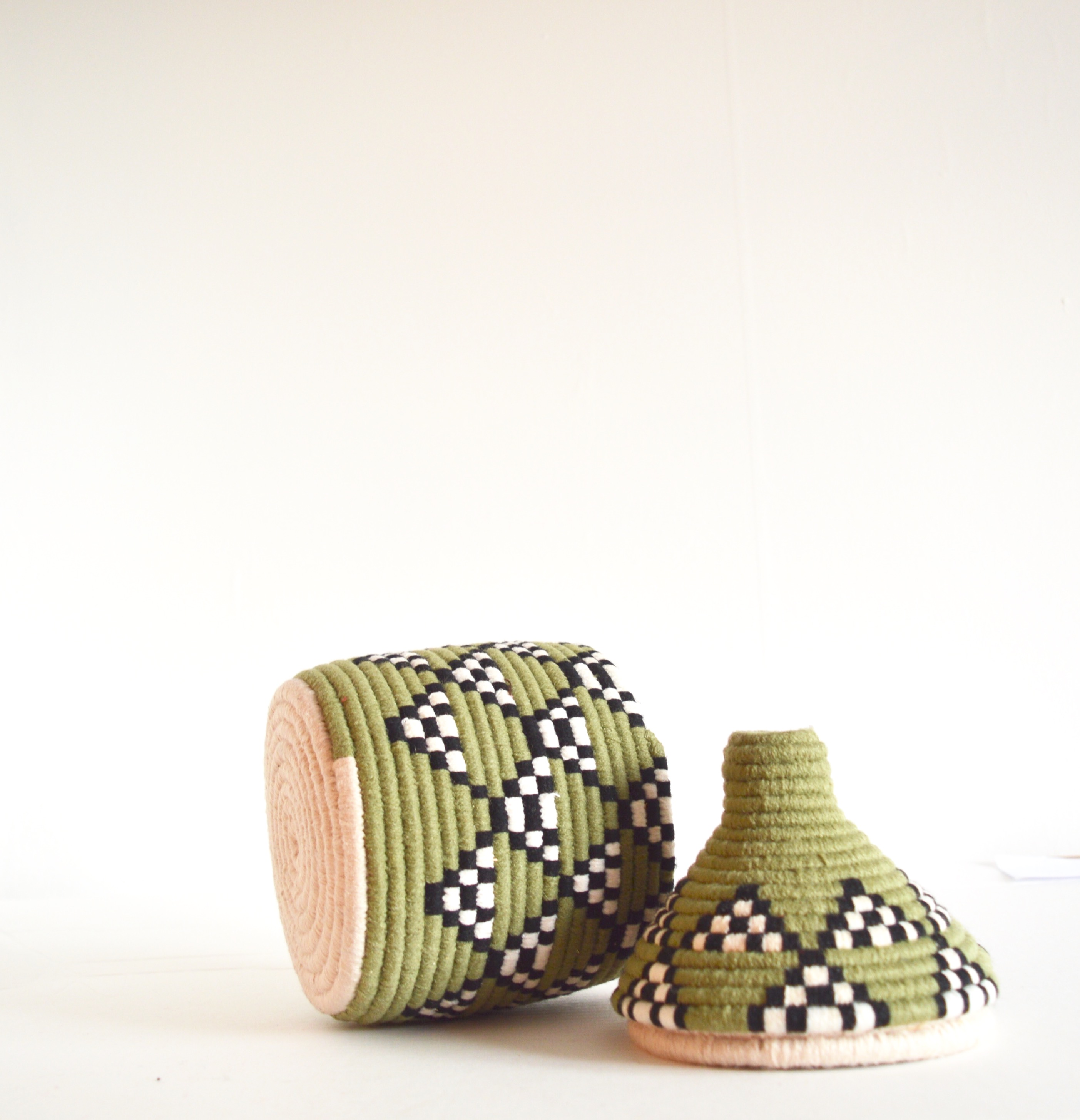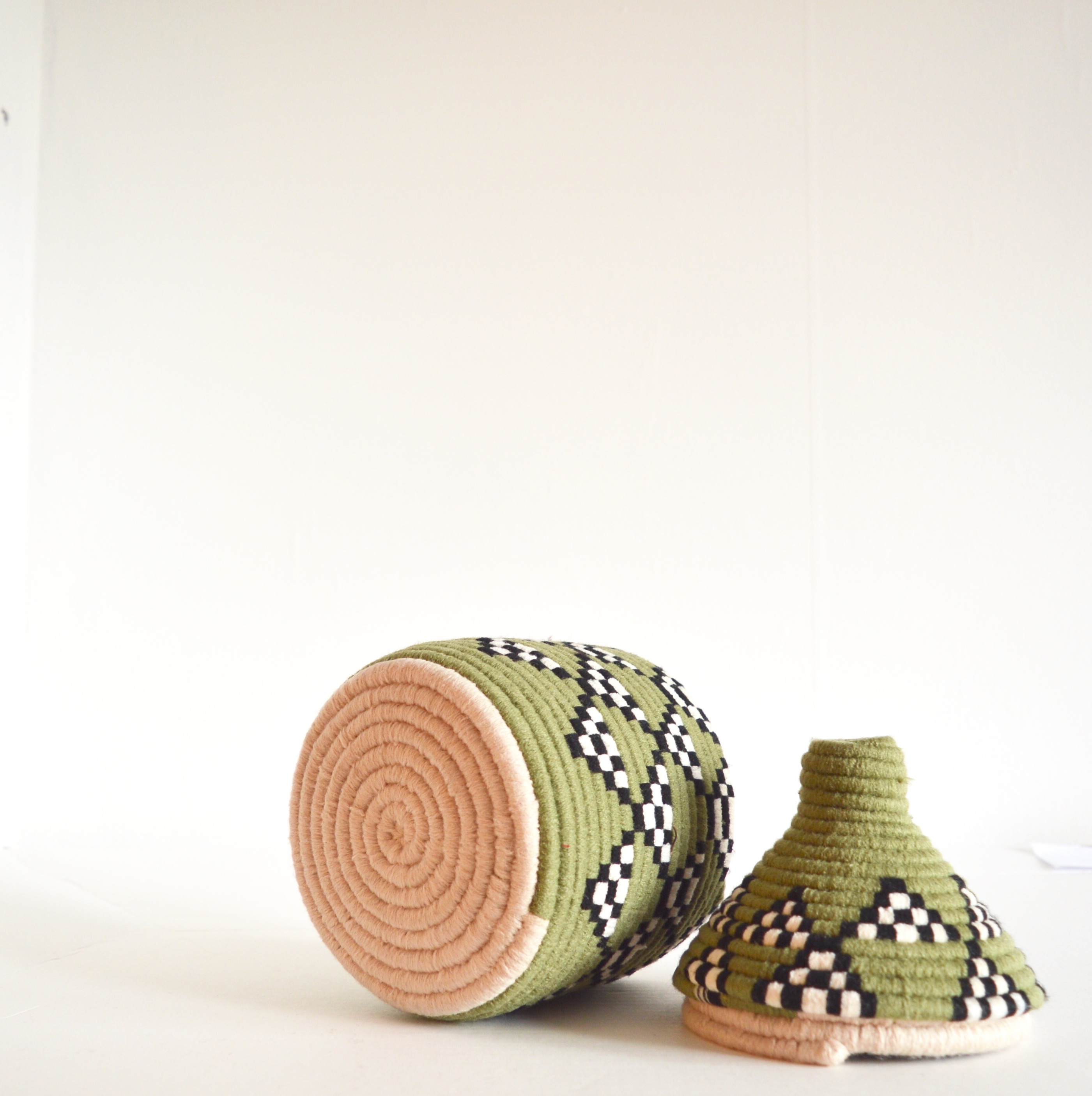 Berber Basket Handwoven Vintage Moroccan Berber Wool Lidded Basket