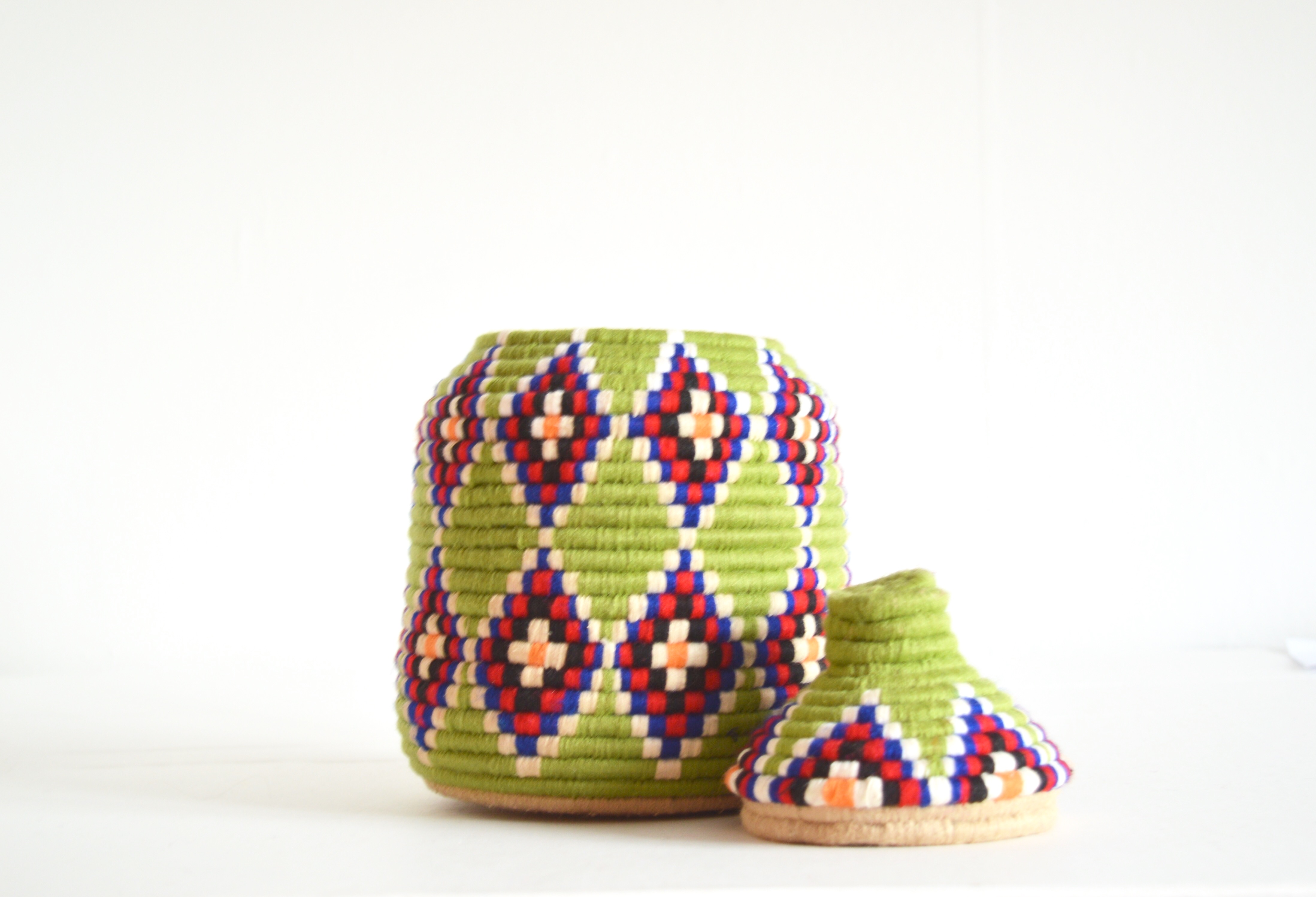 SOLD SOLD SOLD Berber Basket Handwoven Vintage Moroccan Berber Wool Lidded Basket