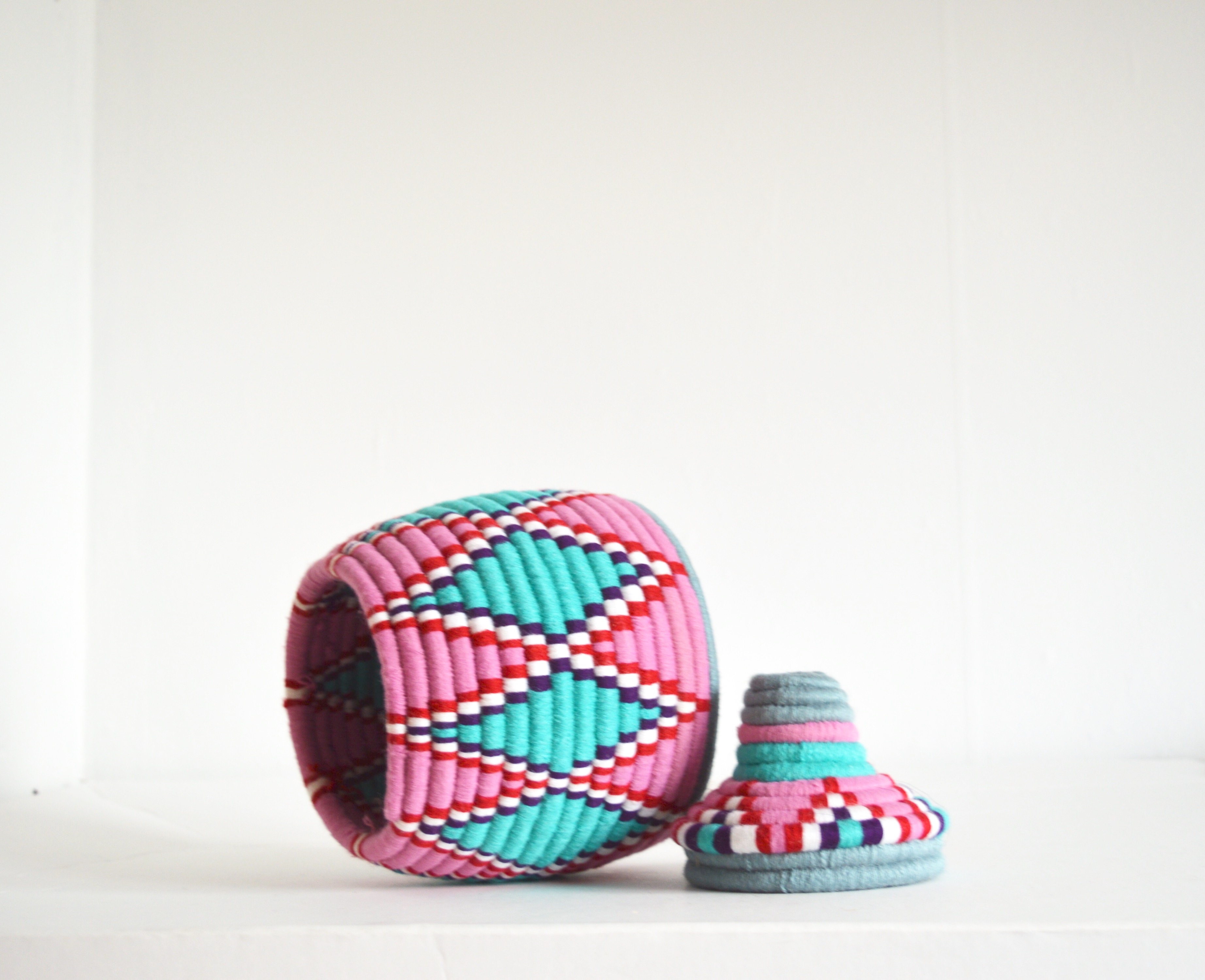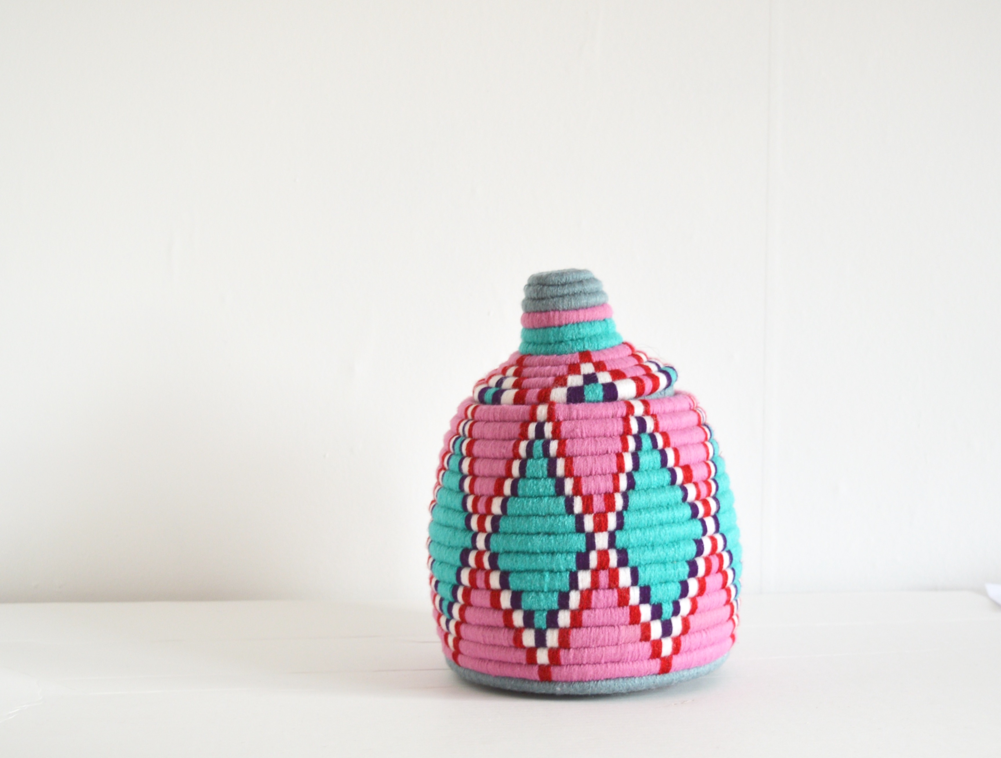 Berber Basket Handwoven Vintage Moroccan Berber Wool Lidded Basket
