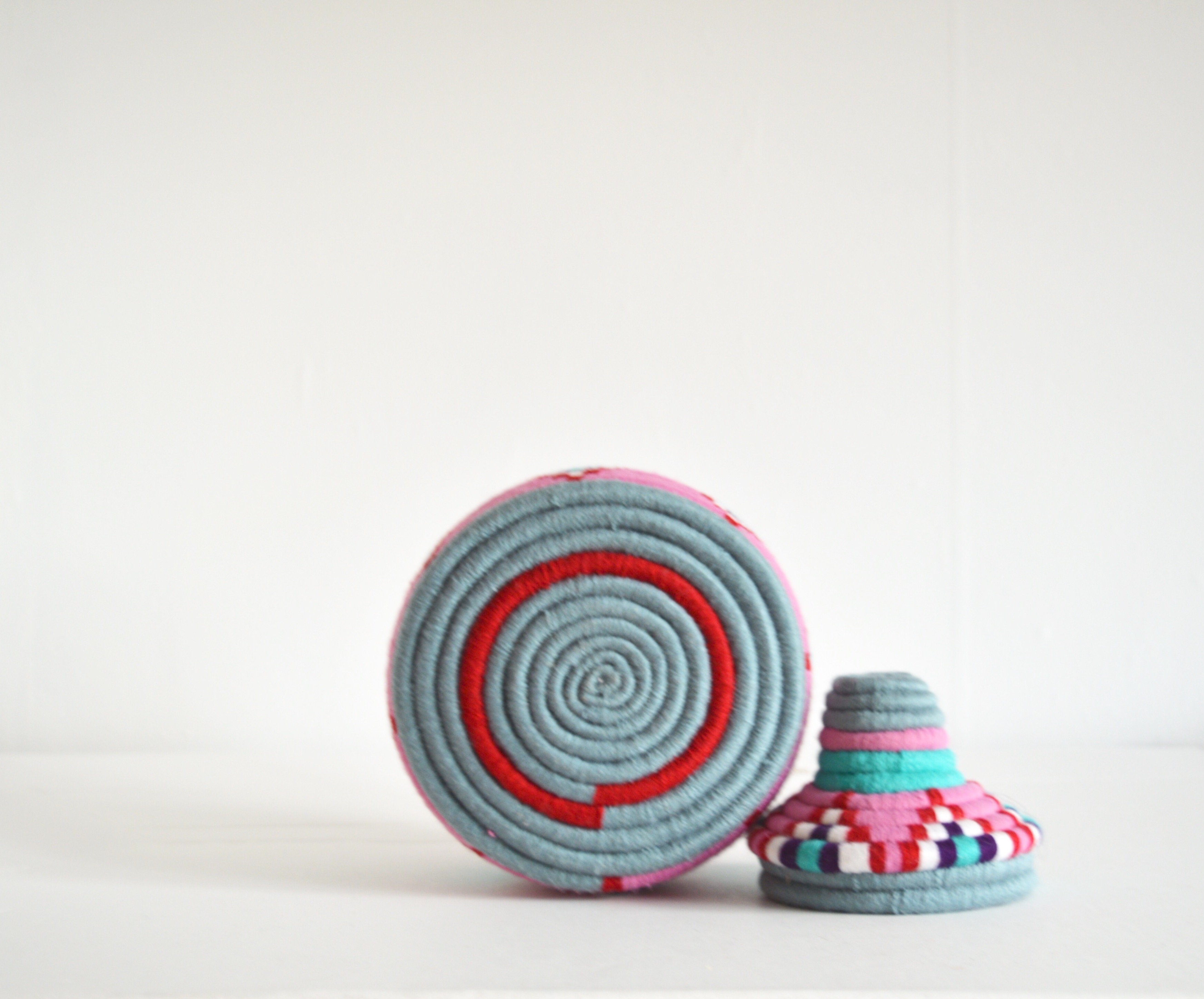 Handwoven Vintage Moroccan Berber Baskets were crafted to store "Khobz" Bread. Contrasting colours and Abstract designs create an individual unique item.