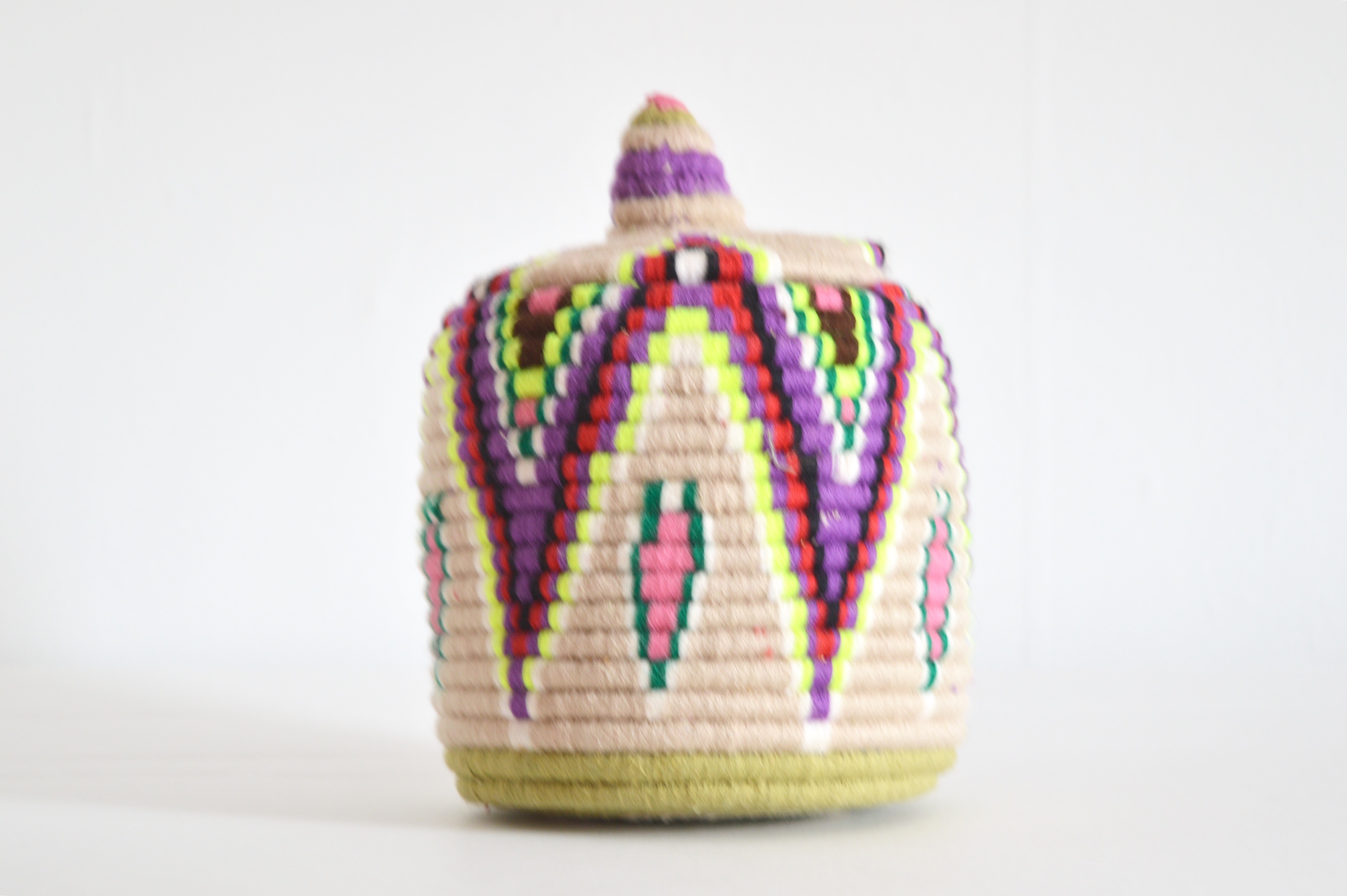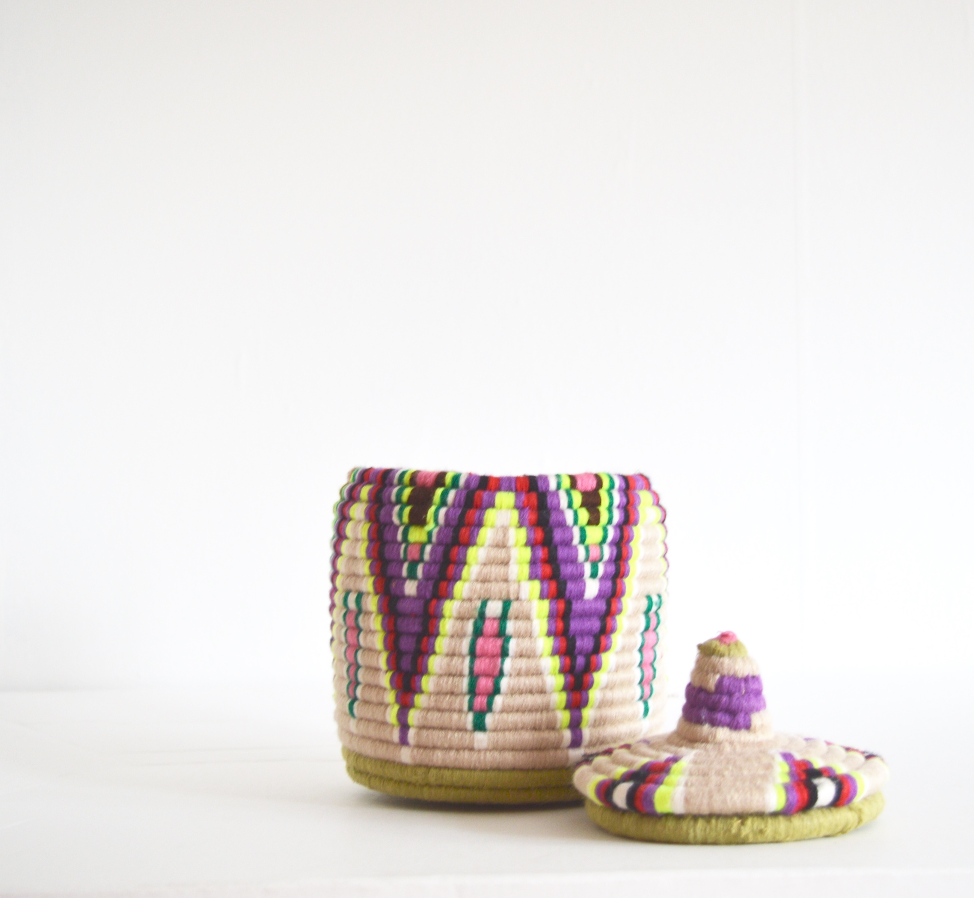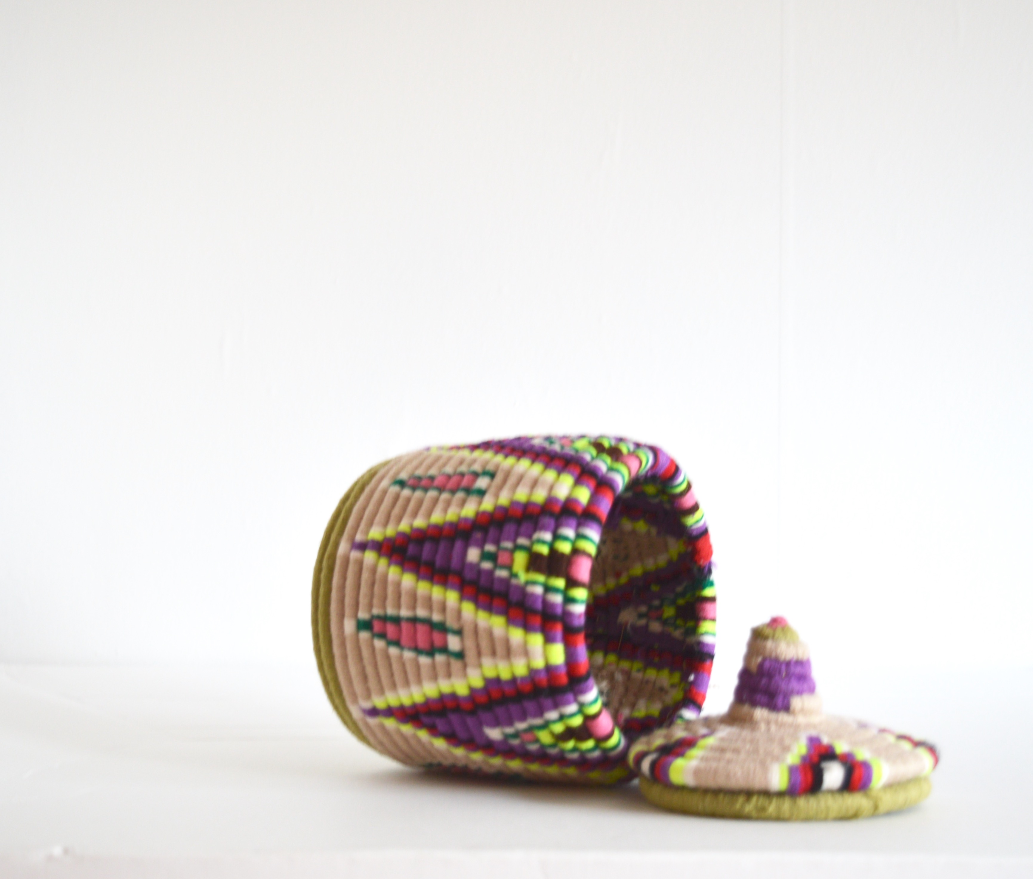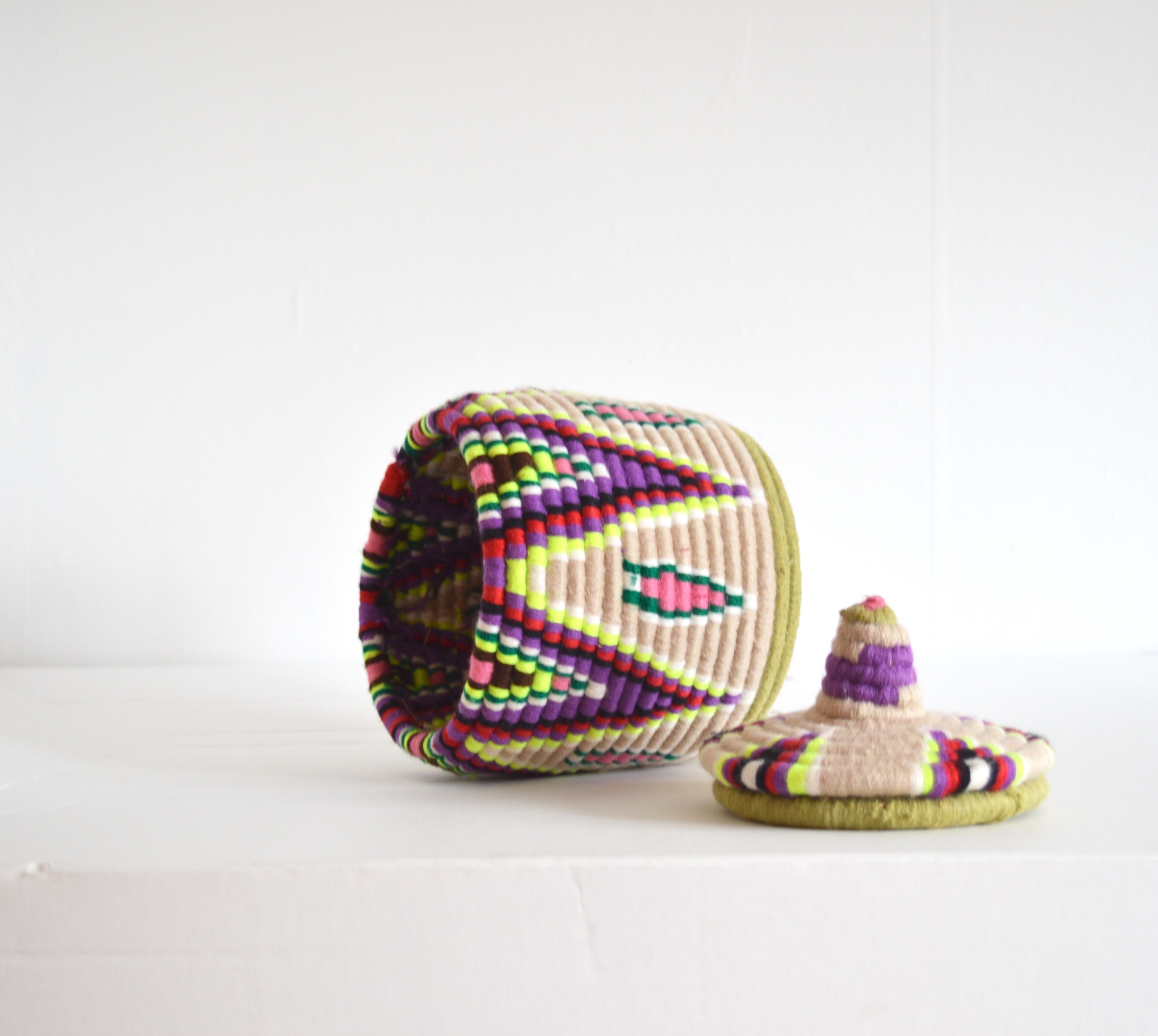 Berber Basket Handwoven Vintage Moroccan Berber Wool Lidded Basket