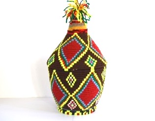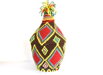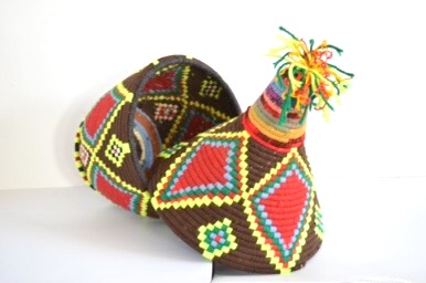 Handwoven Moroccan Berber Baskets were crafted to store "Khobz" Bread. Contrasting colours and Abstract designs create an individual unique item.