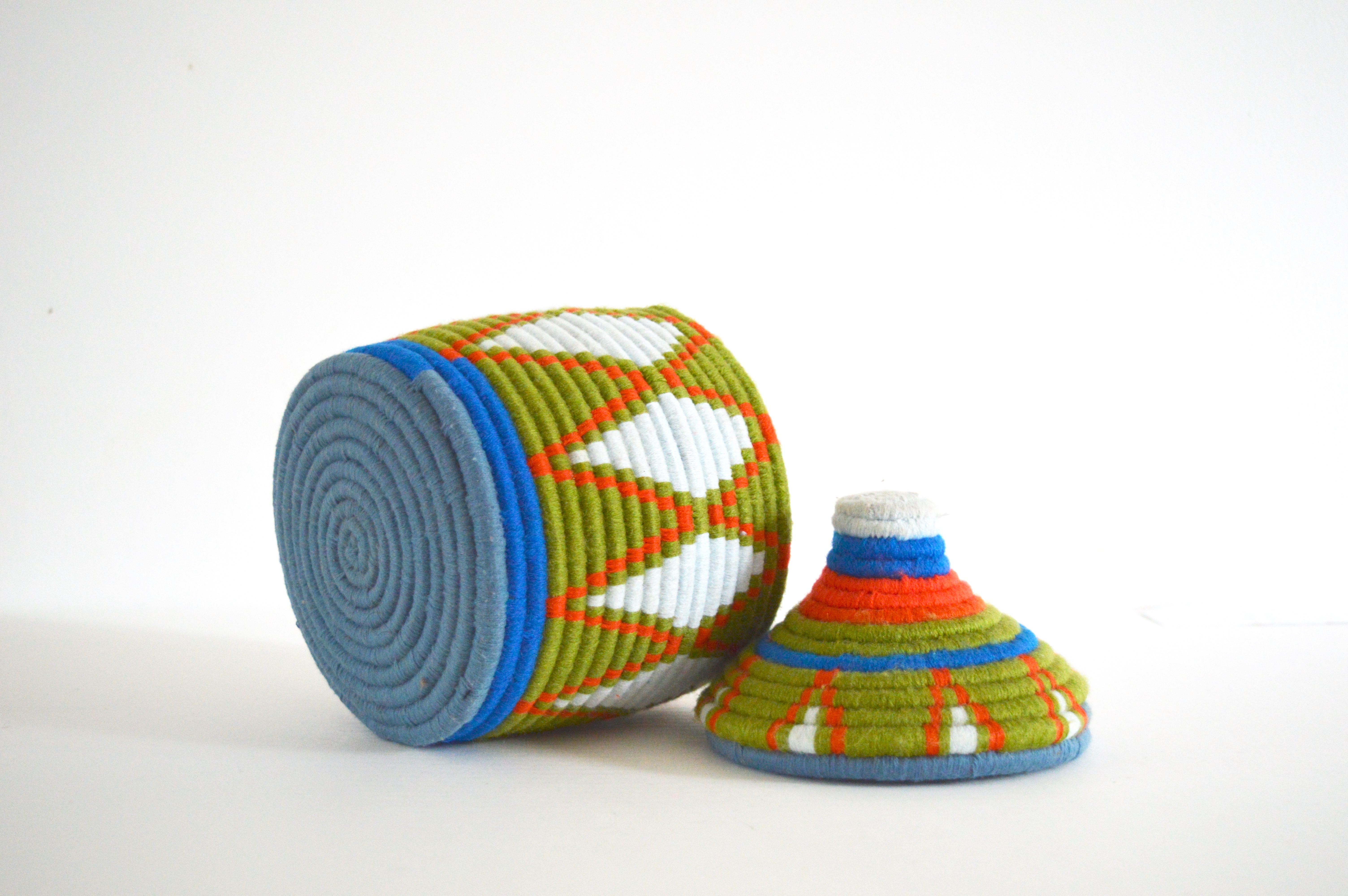 Berber Basket Handwoven Vintage Moroccan Berber Wool Lidded Basket