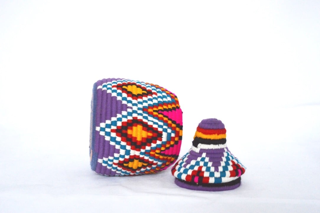 Berber Basket Handwoven Vintage Moroccan Berber Wool Lidded Basket