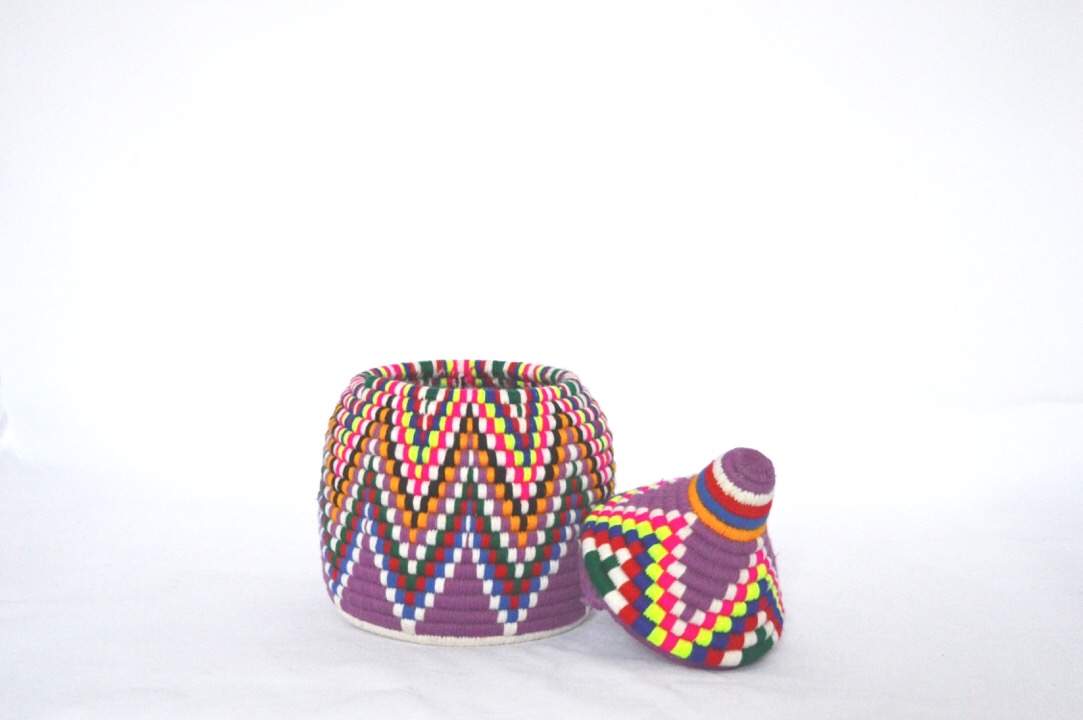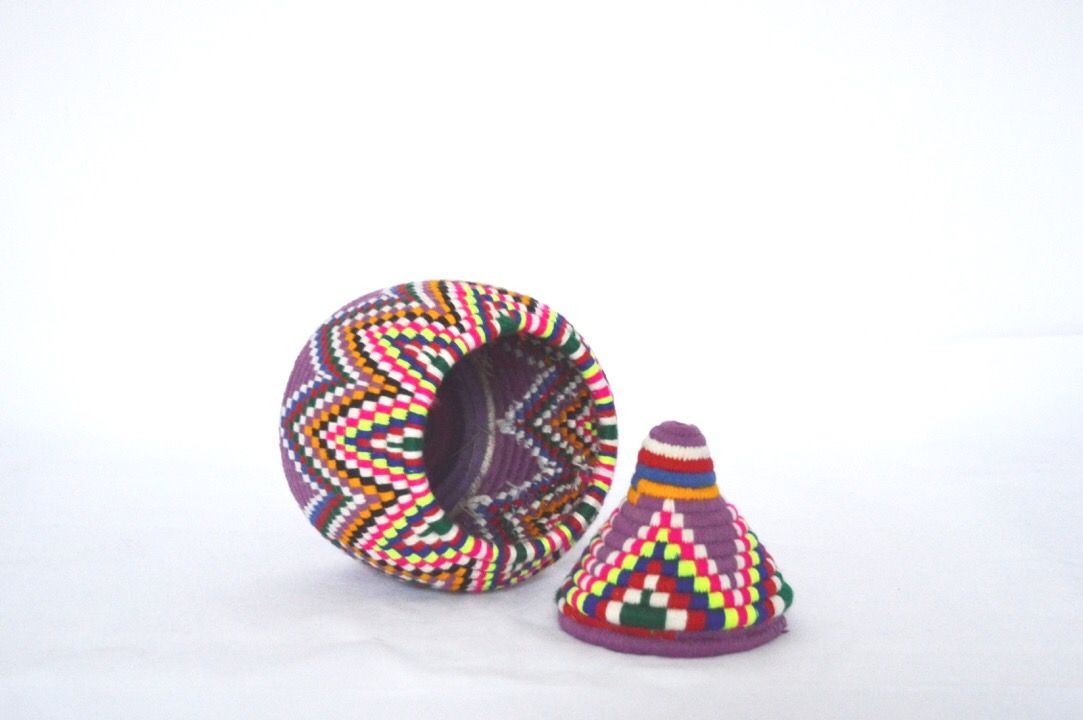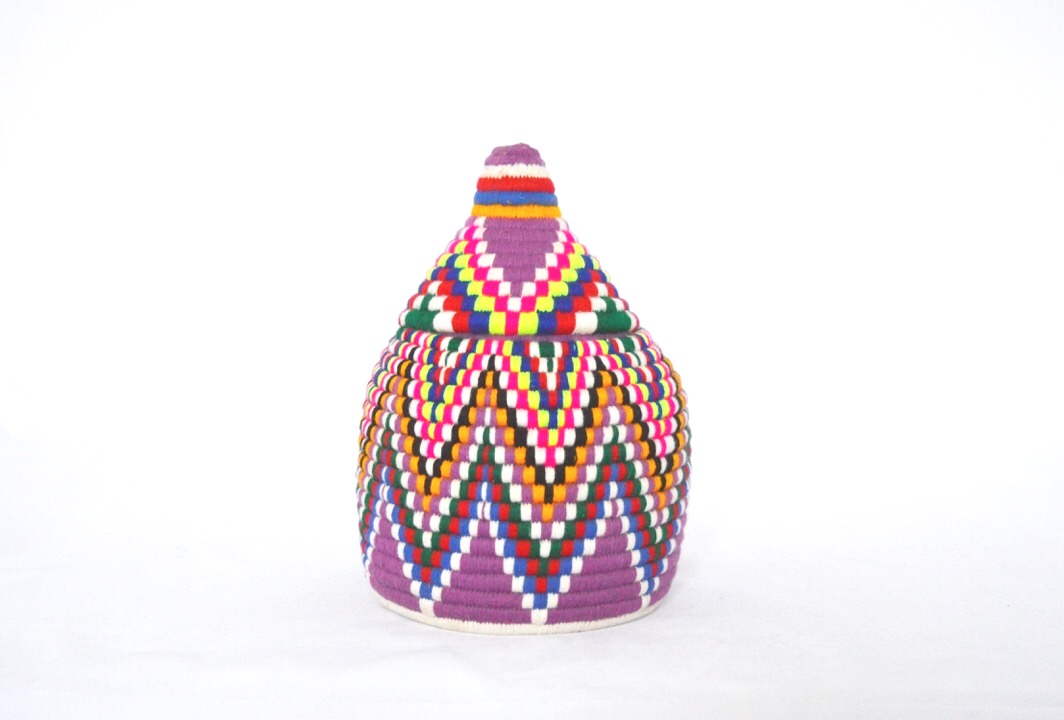 SOLD SOLD SOLD Berber Basket Handwoven Vintage Moroccan Berber Wool Lidded Basket