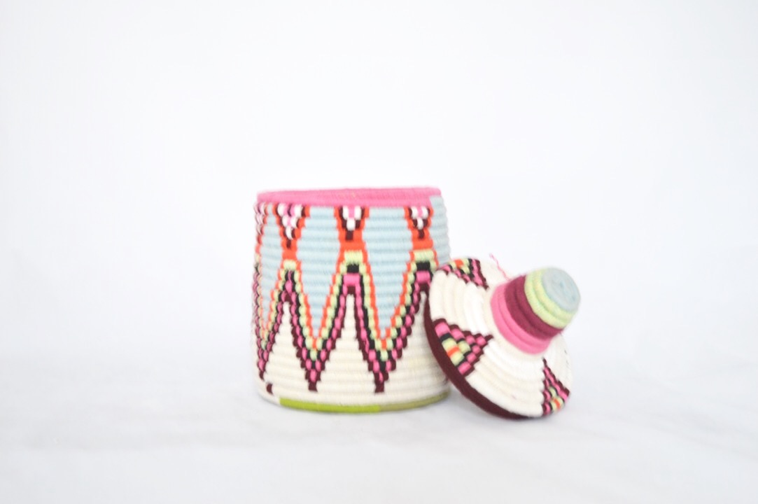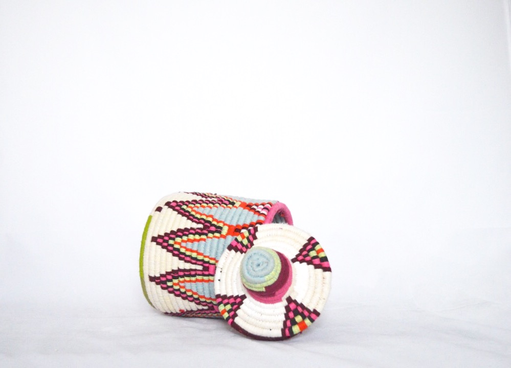 Berber Basket Handwoven Vintage Moroccan Basket Wool Lidded Basket