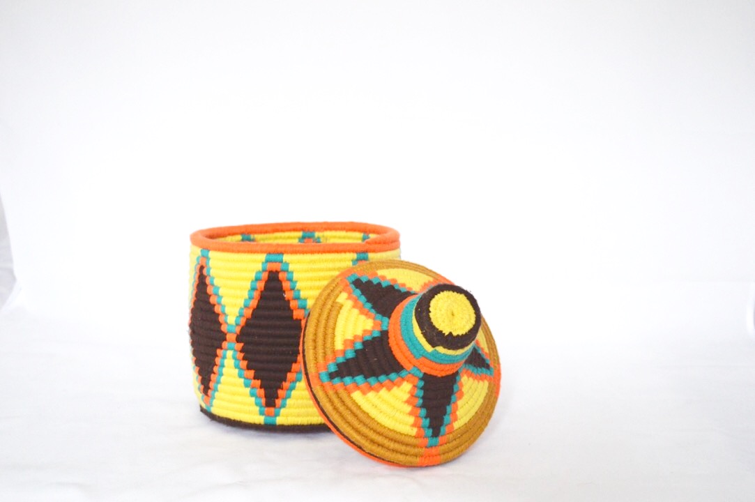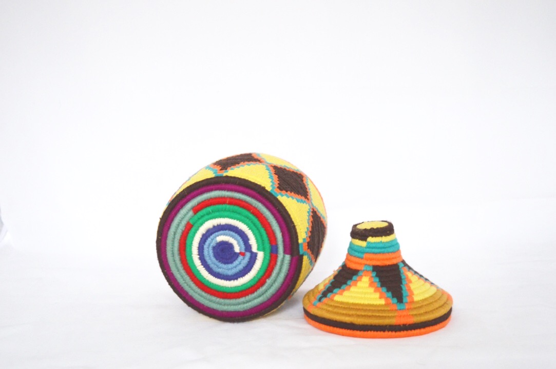 SOLD SOLD SOLD Berber Basket Handwoven Vintage Moroccan Wool Lidded Basket