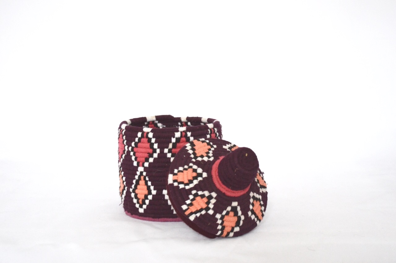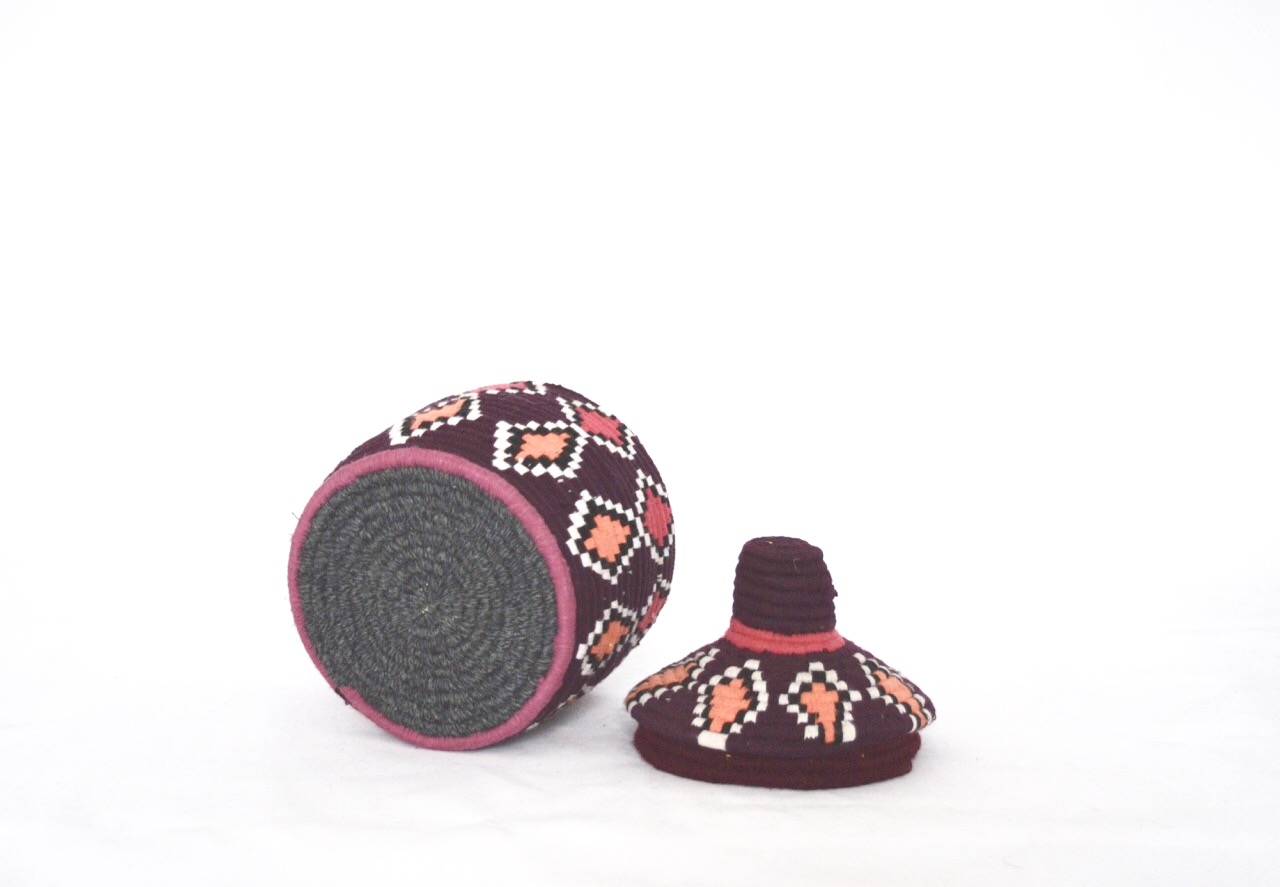 Berber Basket Handwoven Vintage Moroccan Wool Lidded Basket
