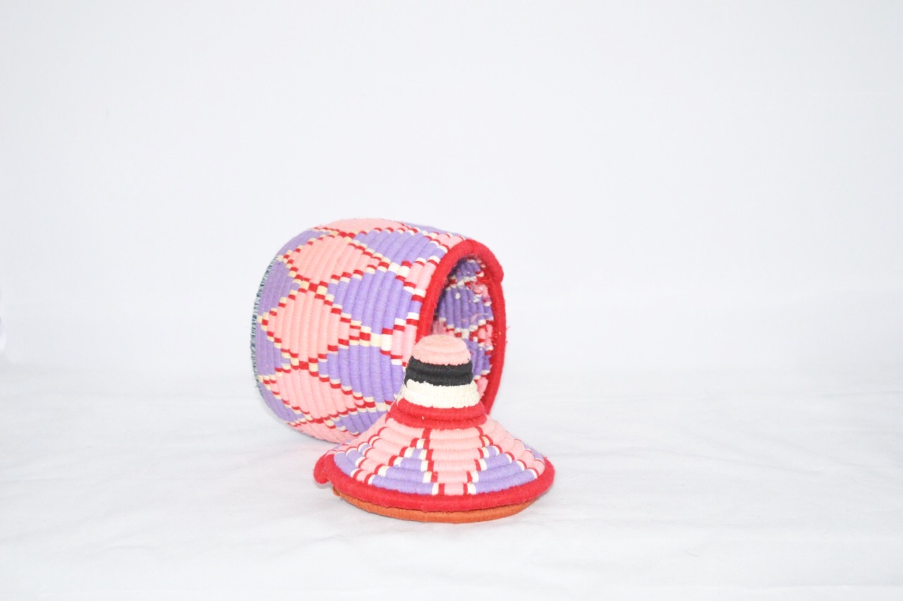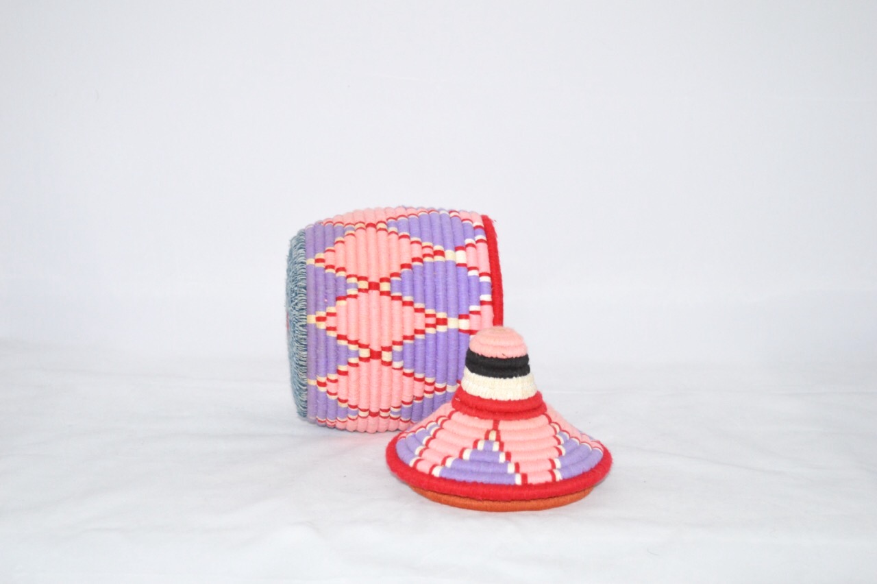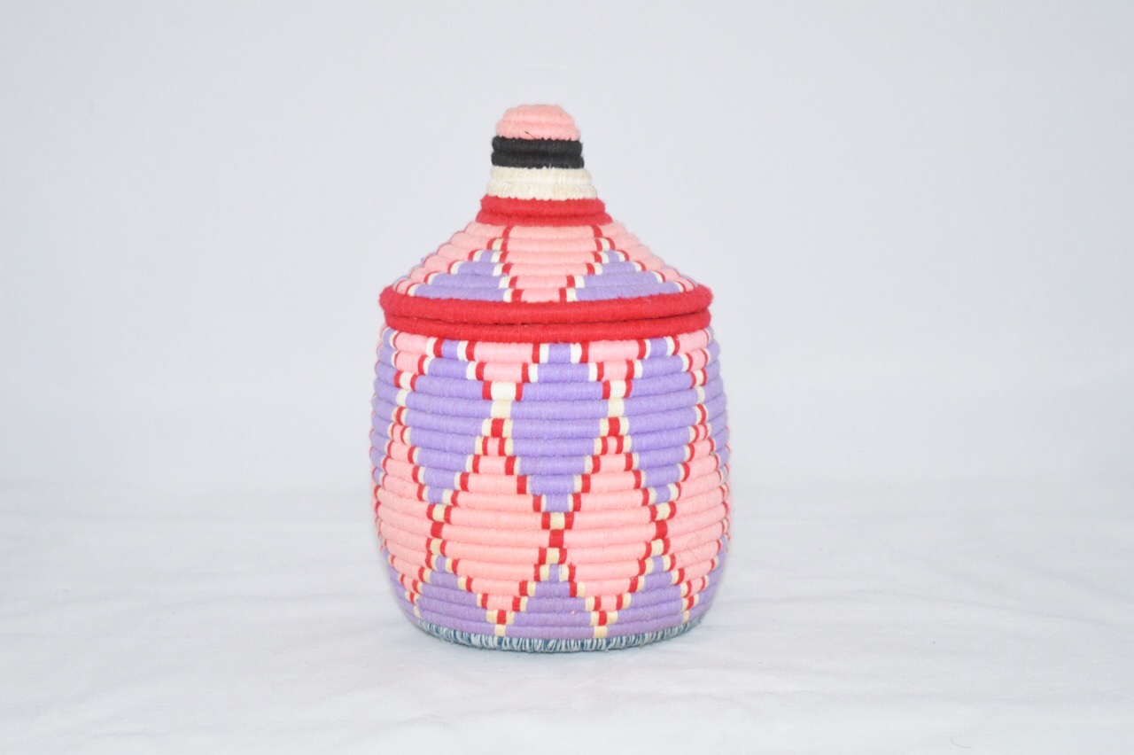 Berber Basket Handwoven Vintage Moroccan Wool Lidded Basket