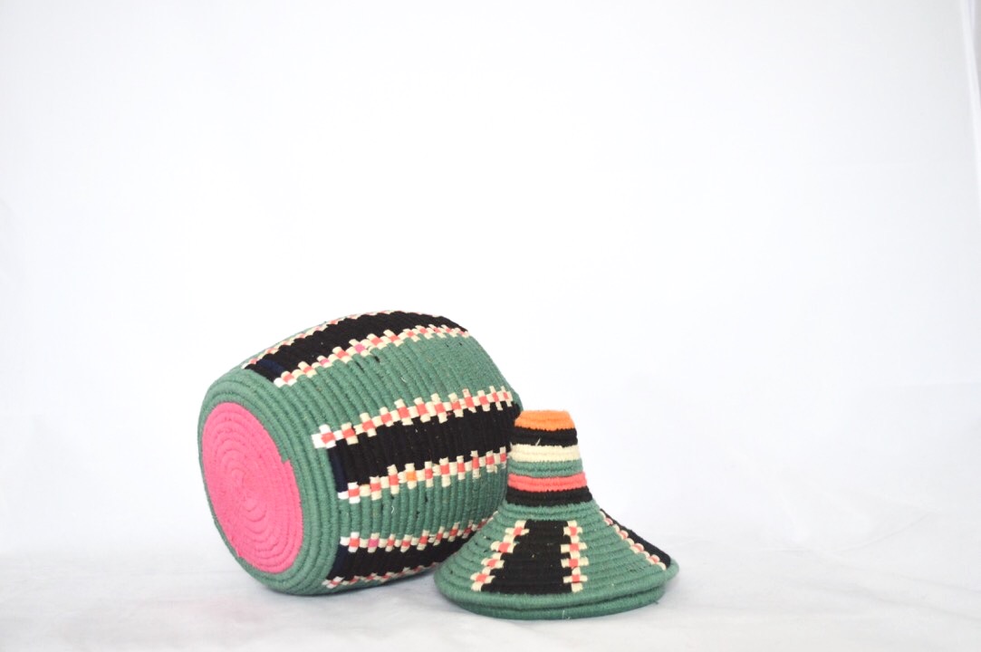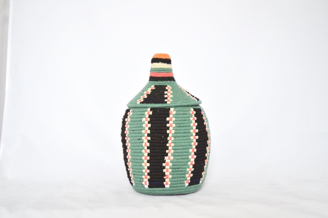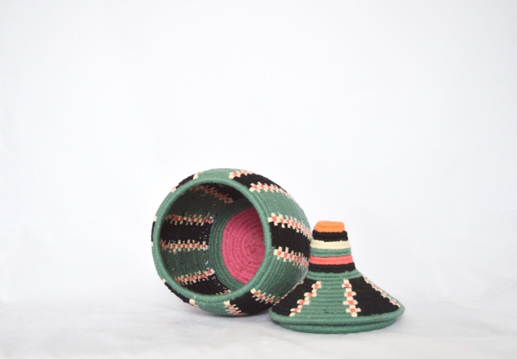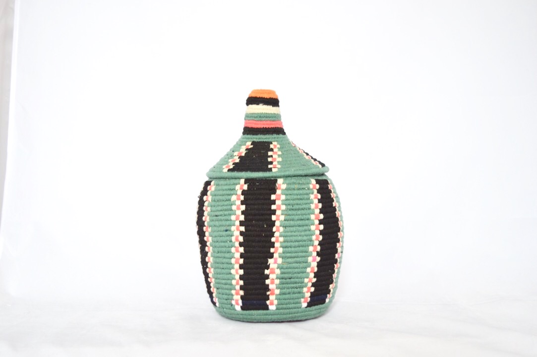 Berber Basket Handwoven Vintage Moroccan Wool Lidded Basket