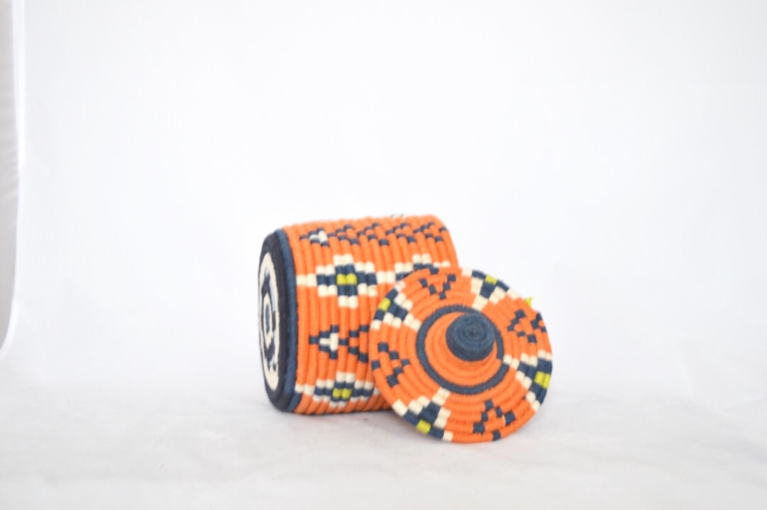 SOLD SOLD SOLD Berber Basket Handwoven Vintage Moroccan Wool Lidded Basket