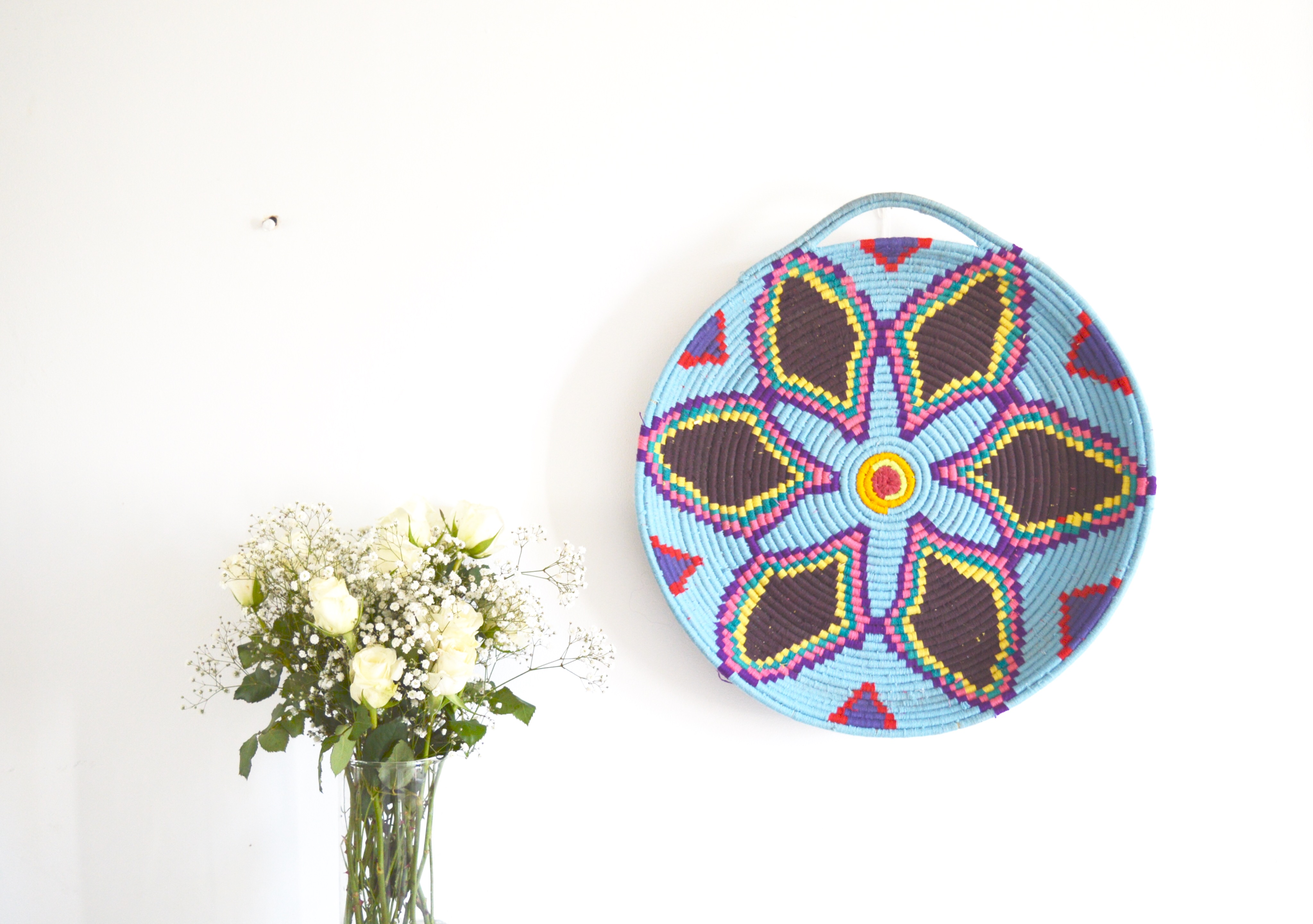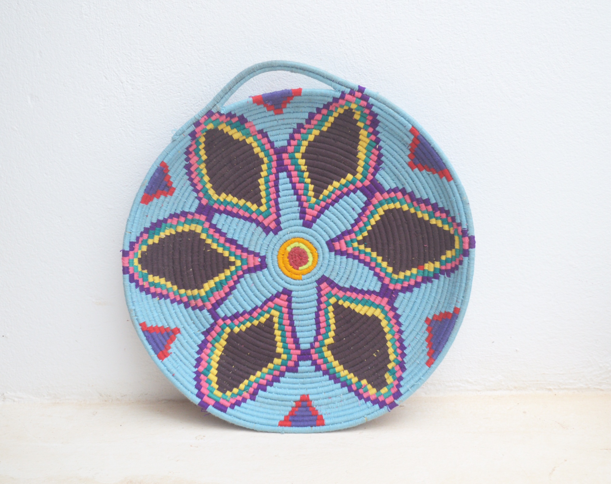 Handwoven Vintage Moroccan Berber Baskets Bowls were used to servie Bread Pancakes or as used for storage. Dazzling colours and Abstract designs create an individual unique item.