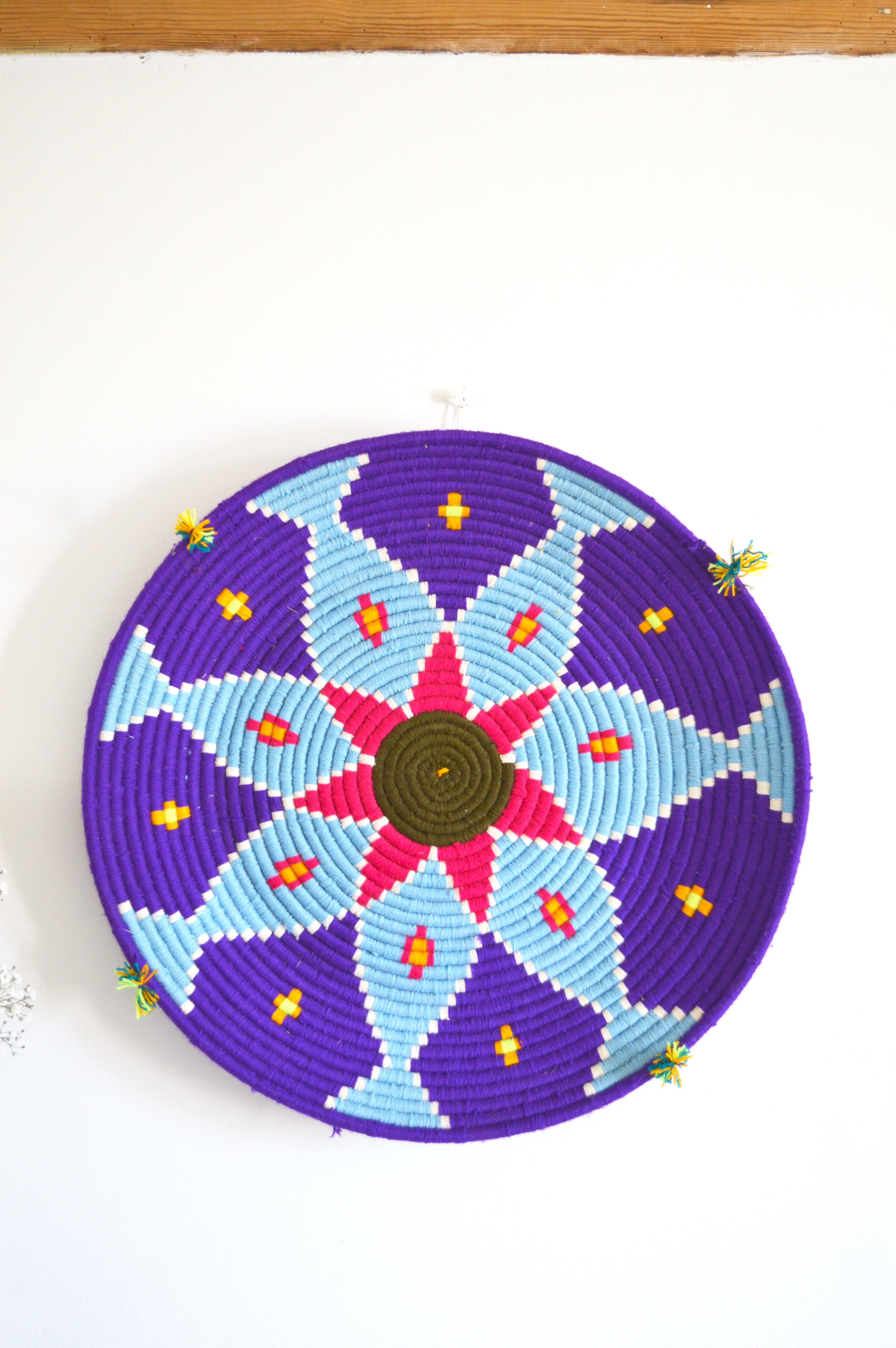 Handwoven Vintage Moroccan Berber Baskets Bowls were used to servie Bread Pancakes or as used for storage. Dazzling colours and Abstract designs create an individual unique item.