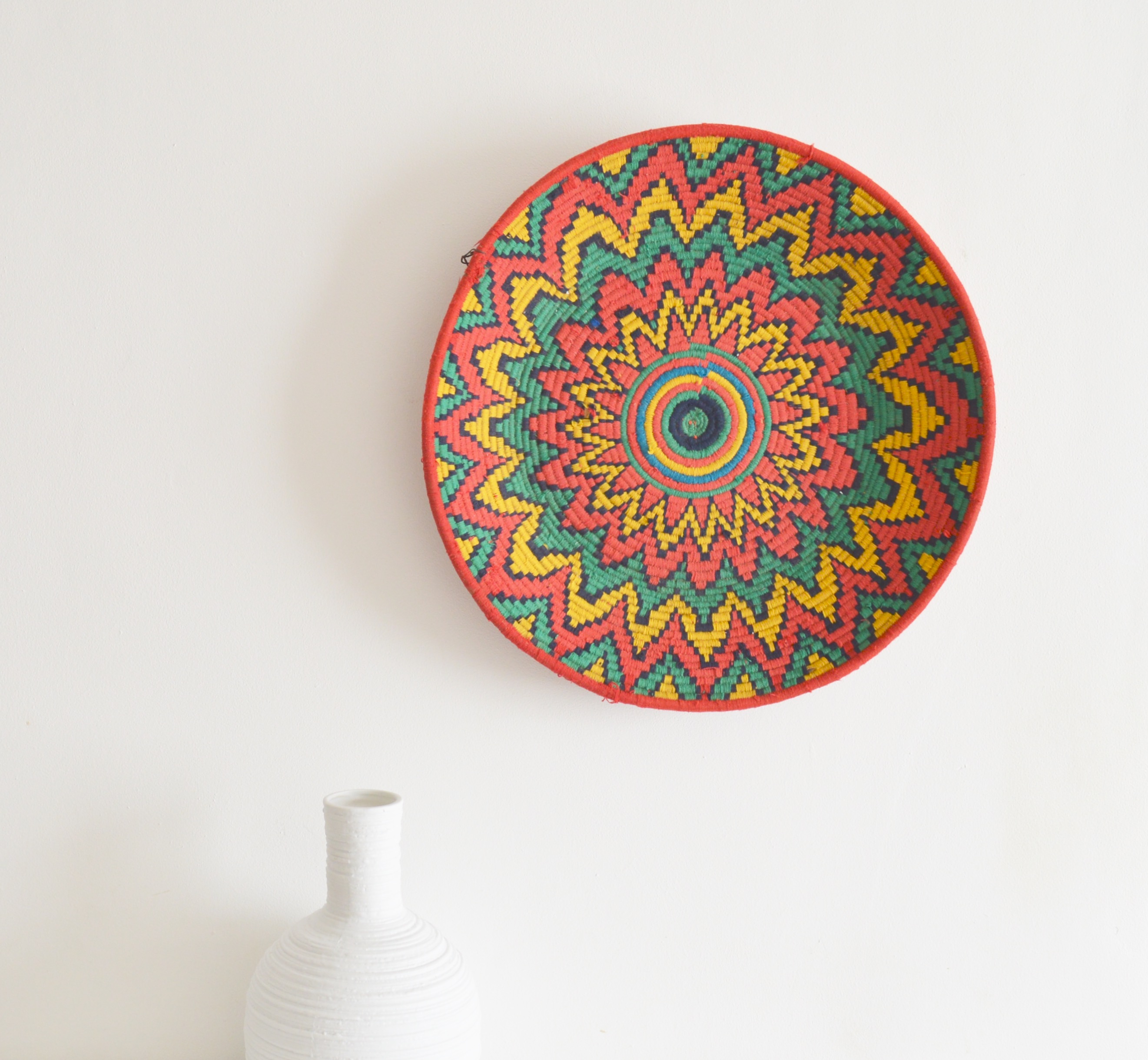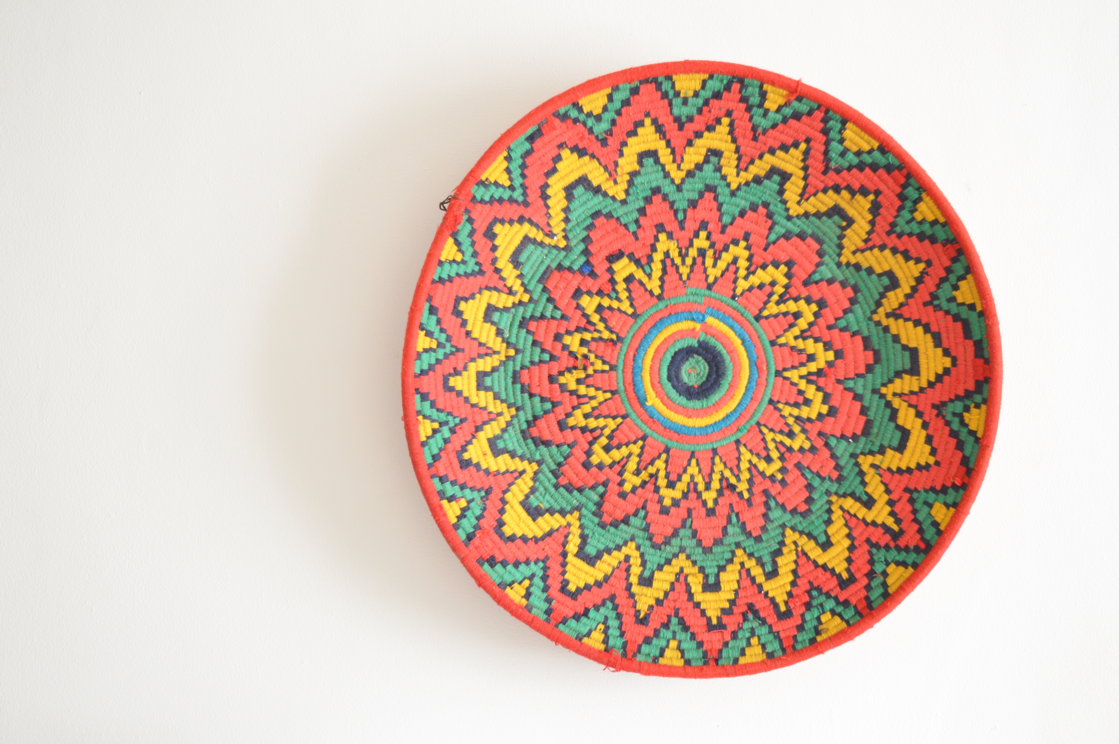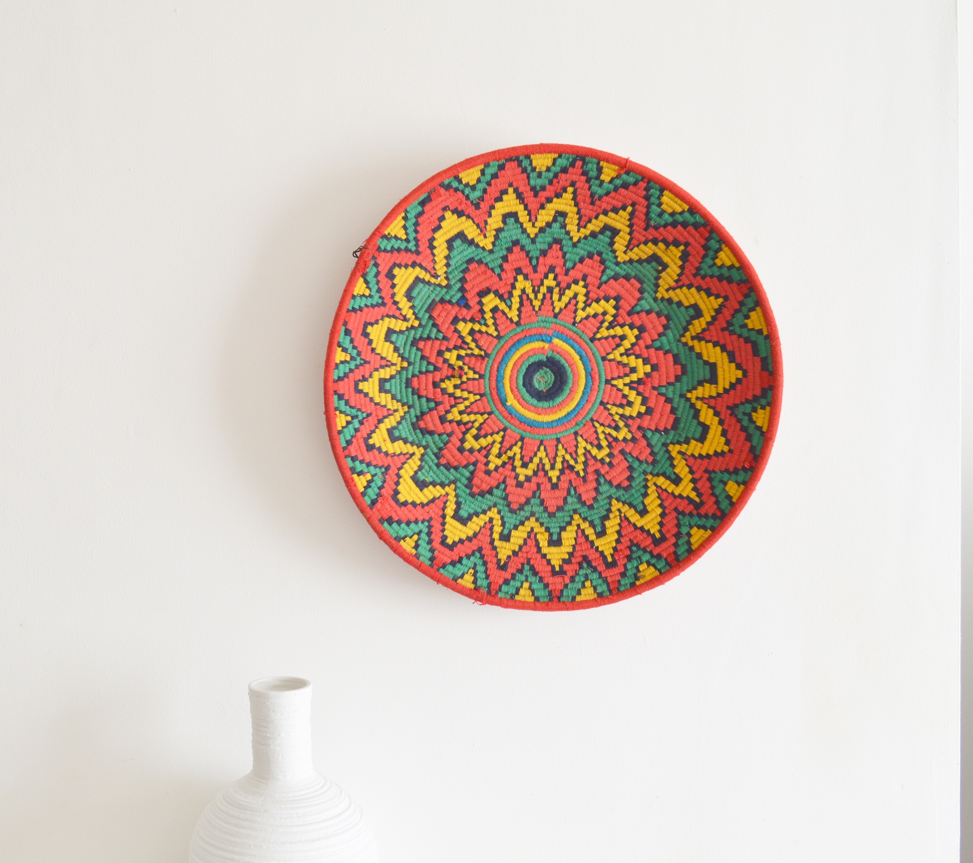 Handwoven Vintage Moroccan Berber Baskets Platters were used to servie Bread Pancakes or as used for storage. Dazzling colours and Abstract designs create an individual unique item.