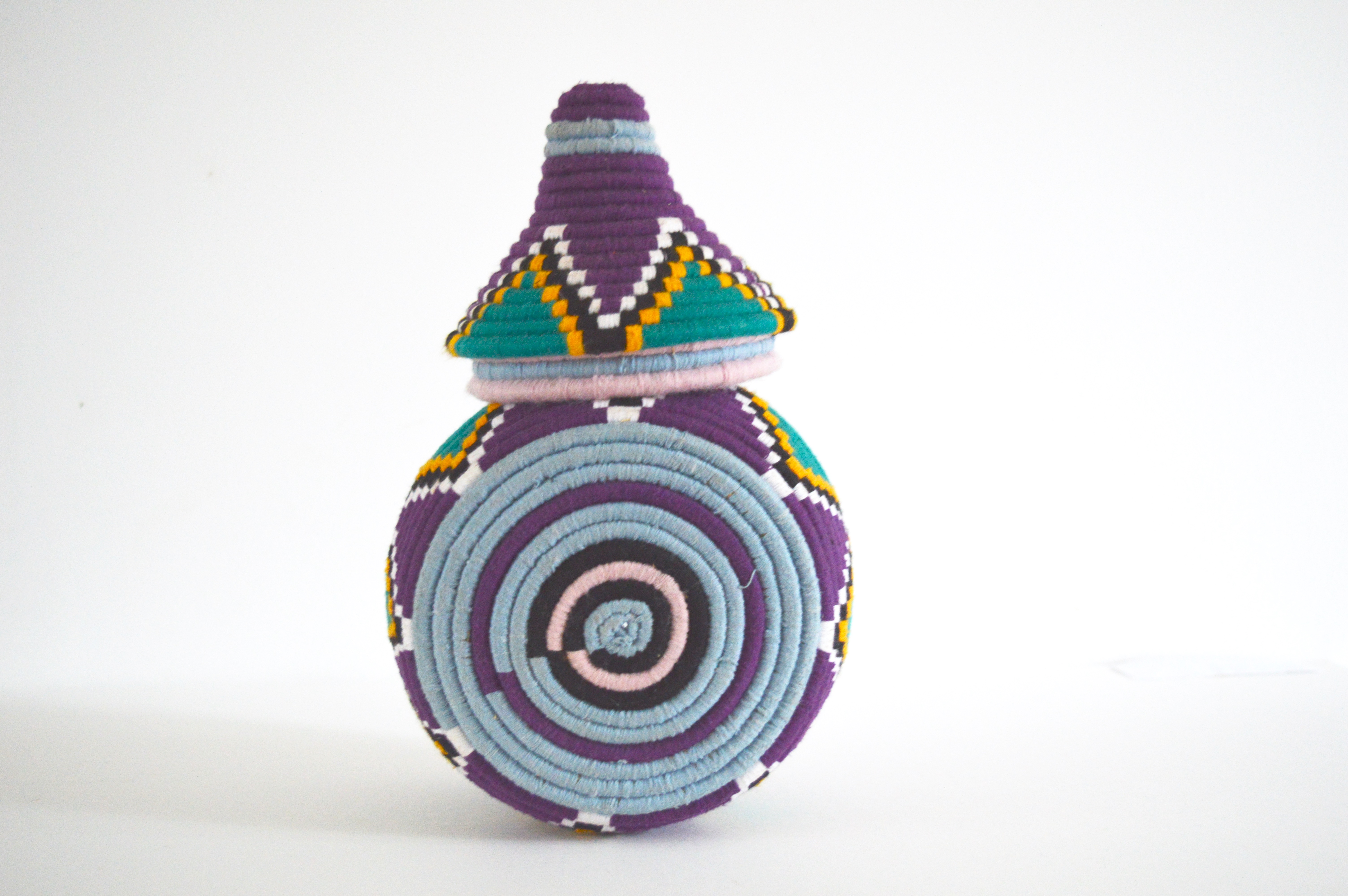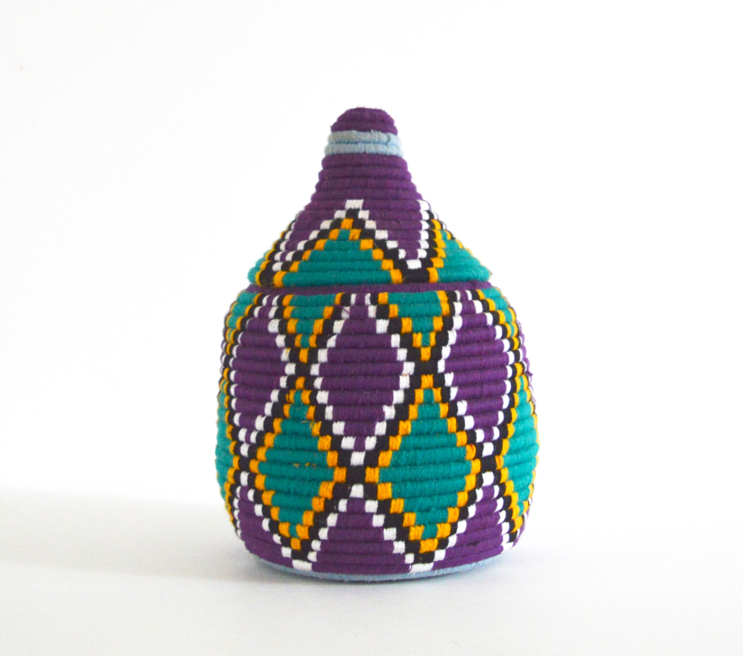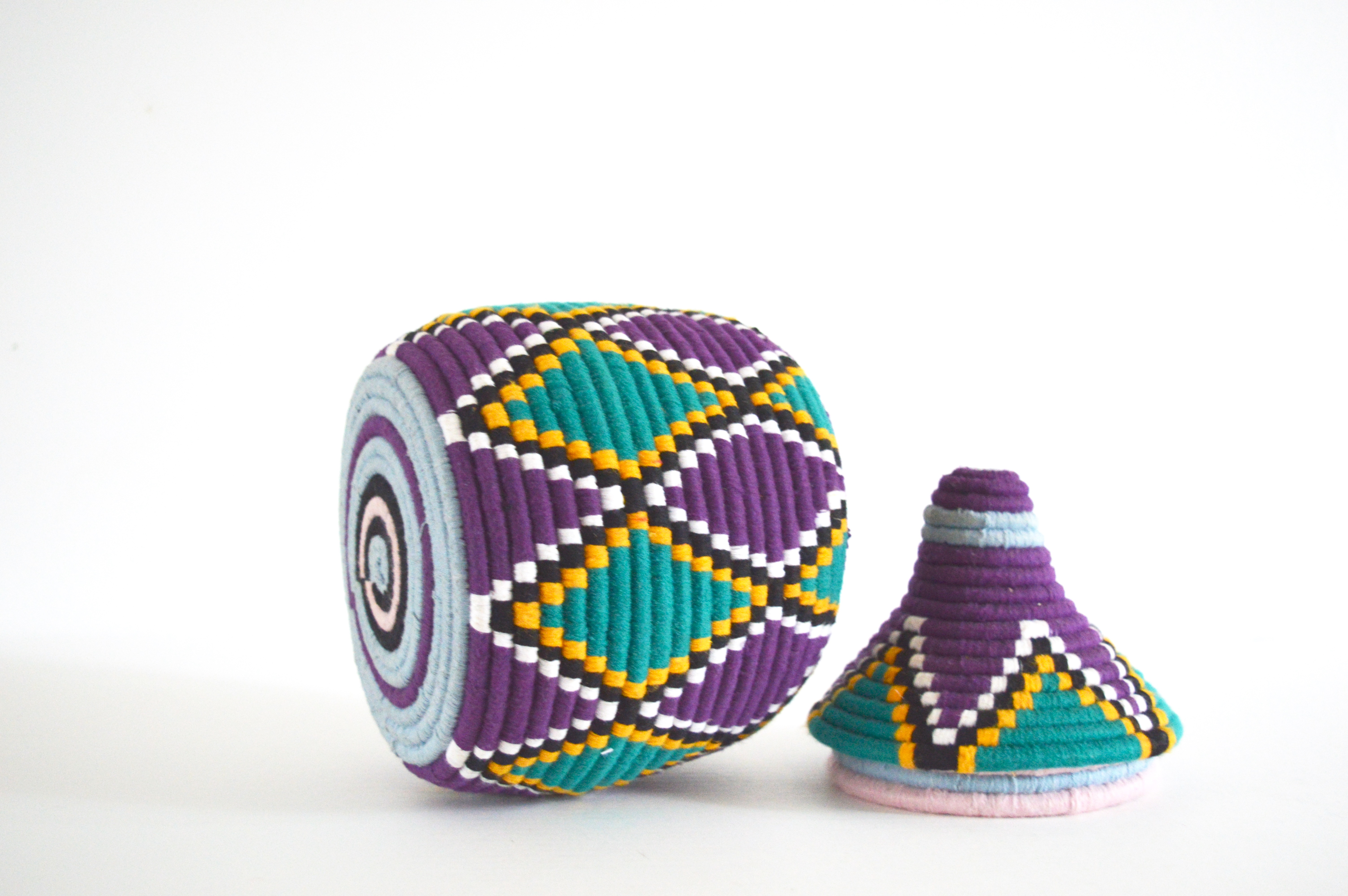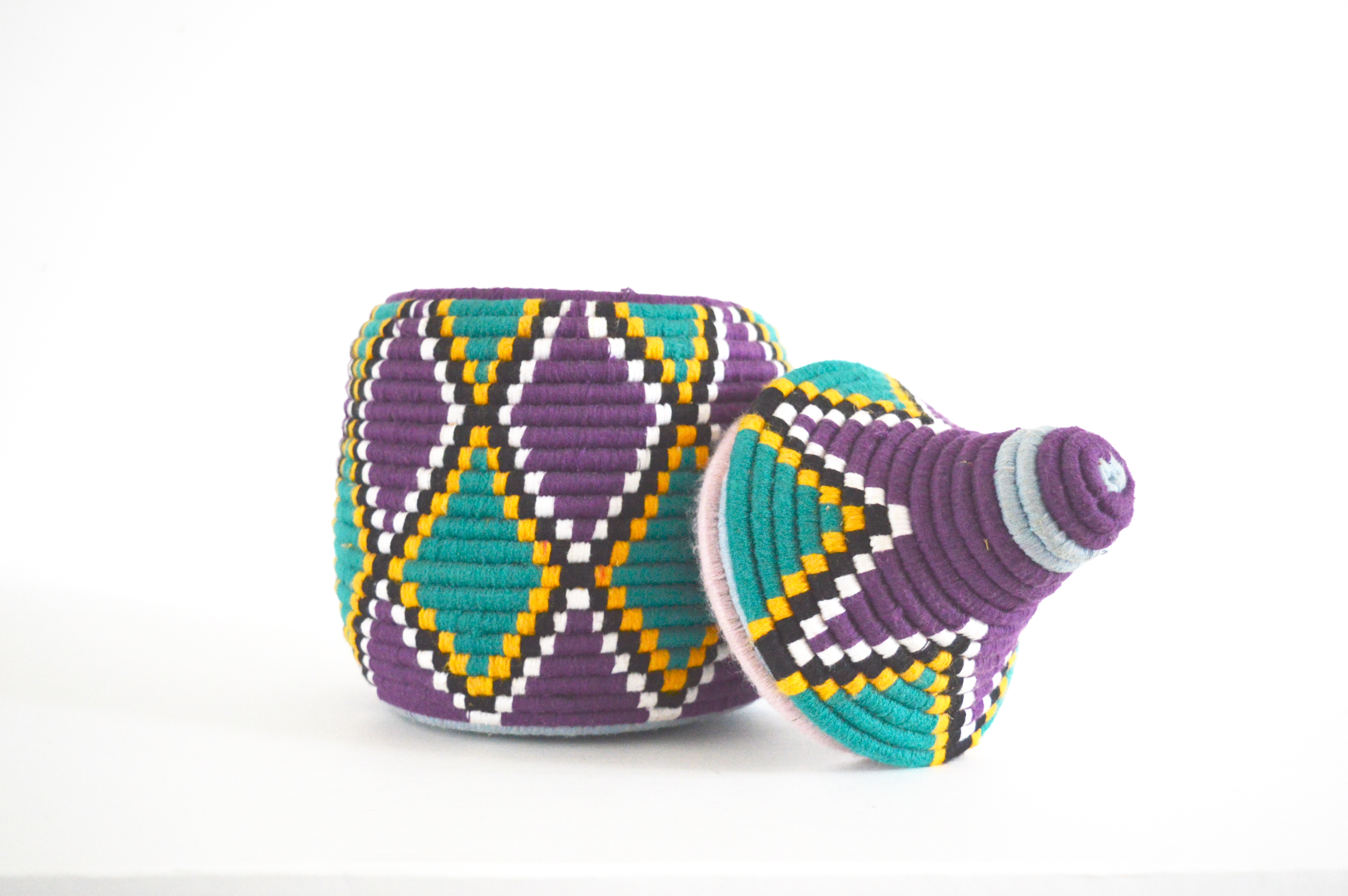 Berber Basket Handwoven Vintage Moroccan Wool Lidded Basket