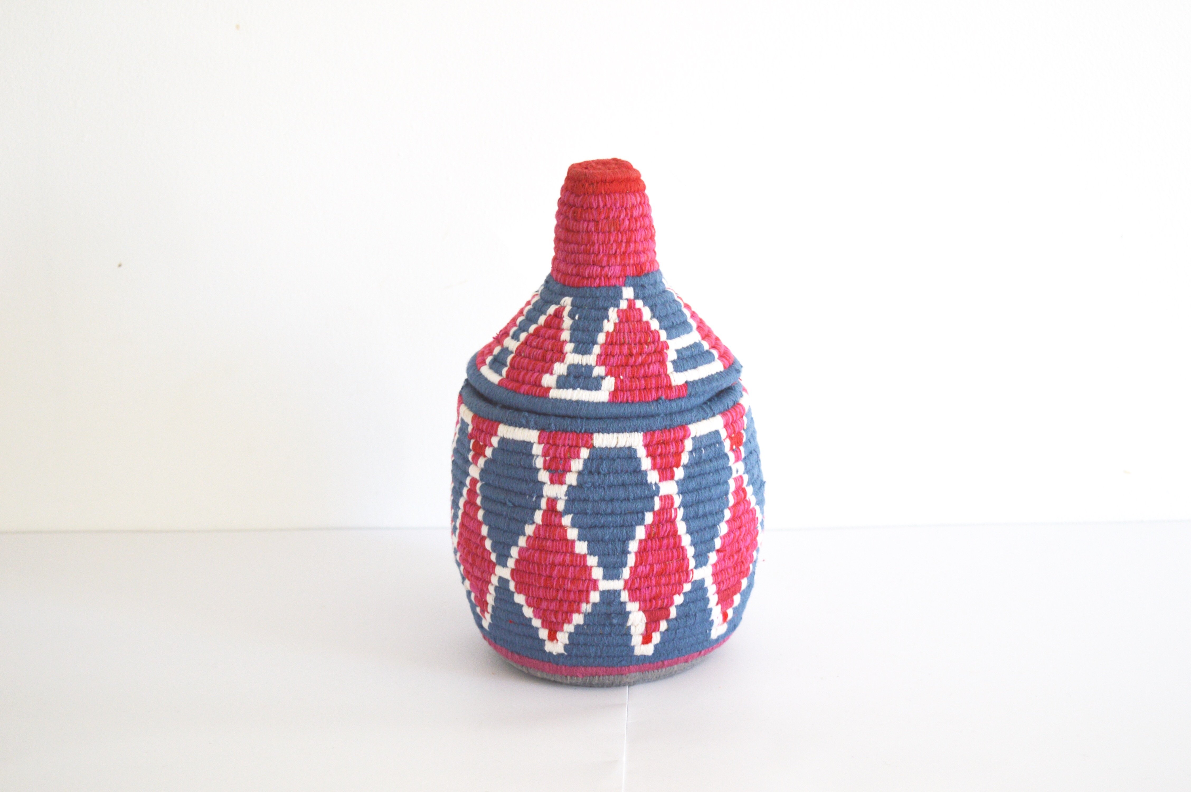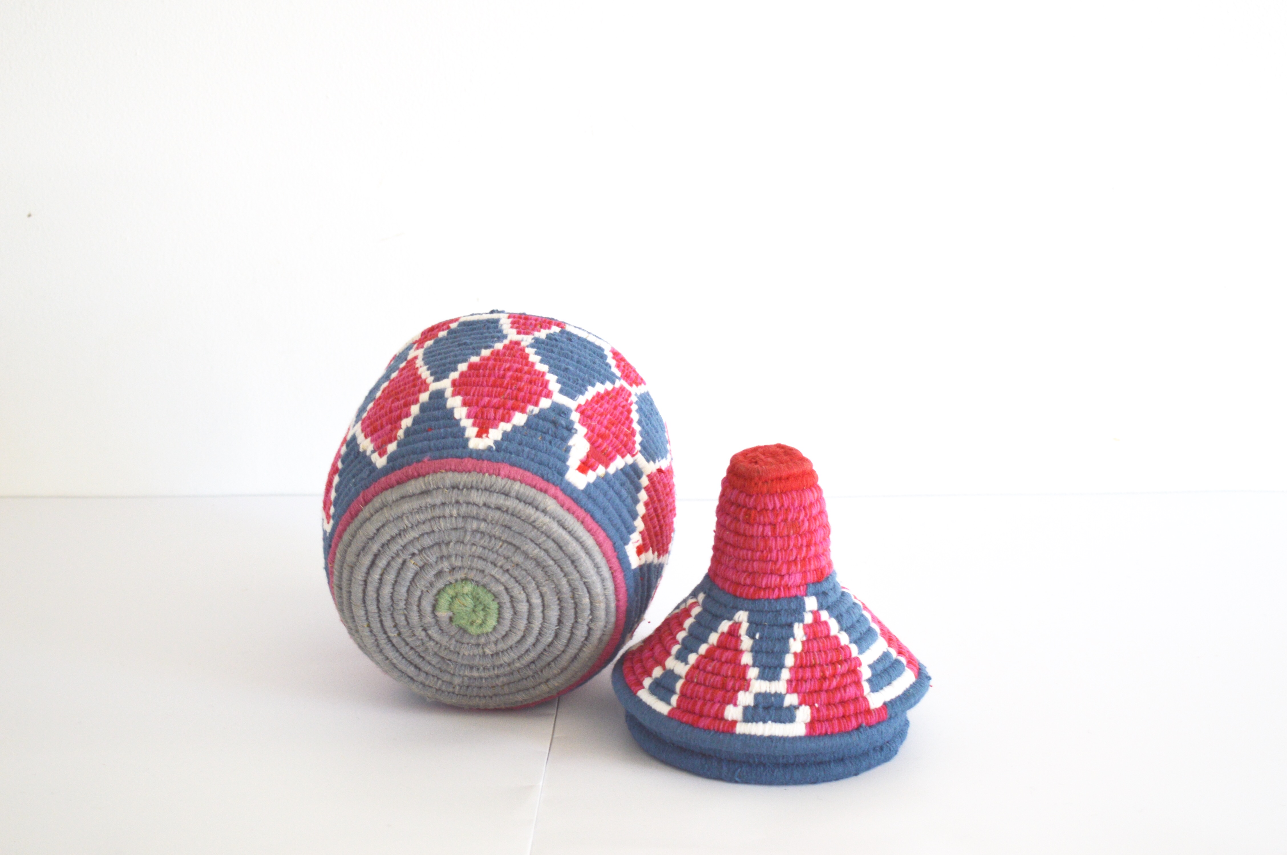 Berber Basket Handwoven Vintage Moroccan Wool Lidded Basket