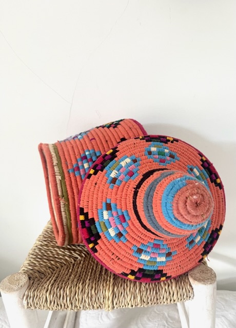Handwoven Moroccan Berber Baskets were crafted to store "Khobz" Bread. Contrasting colours and Abstract designs create an individual unique item.