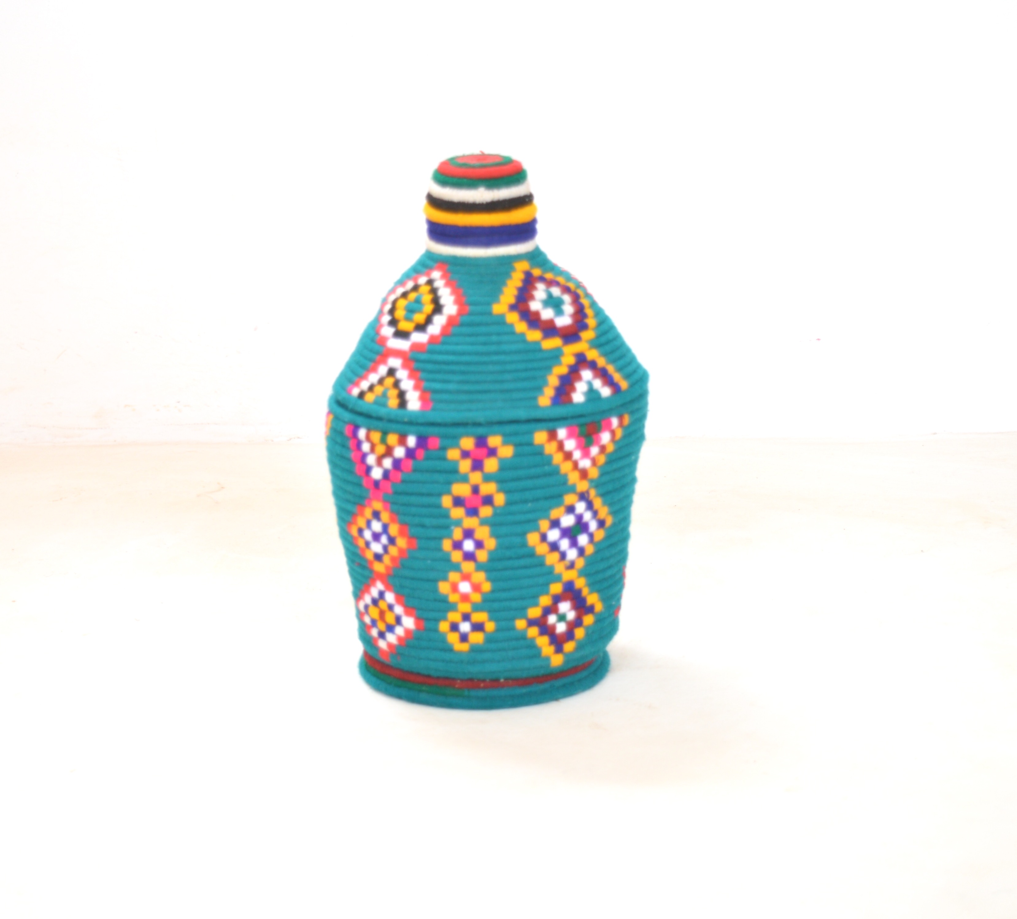 Berber Basket Handwoven Vintage Moroccan Wool Lidded Basket