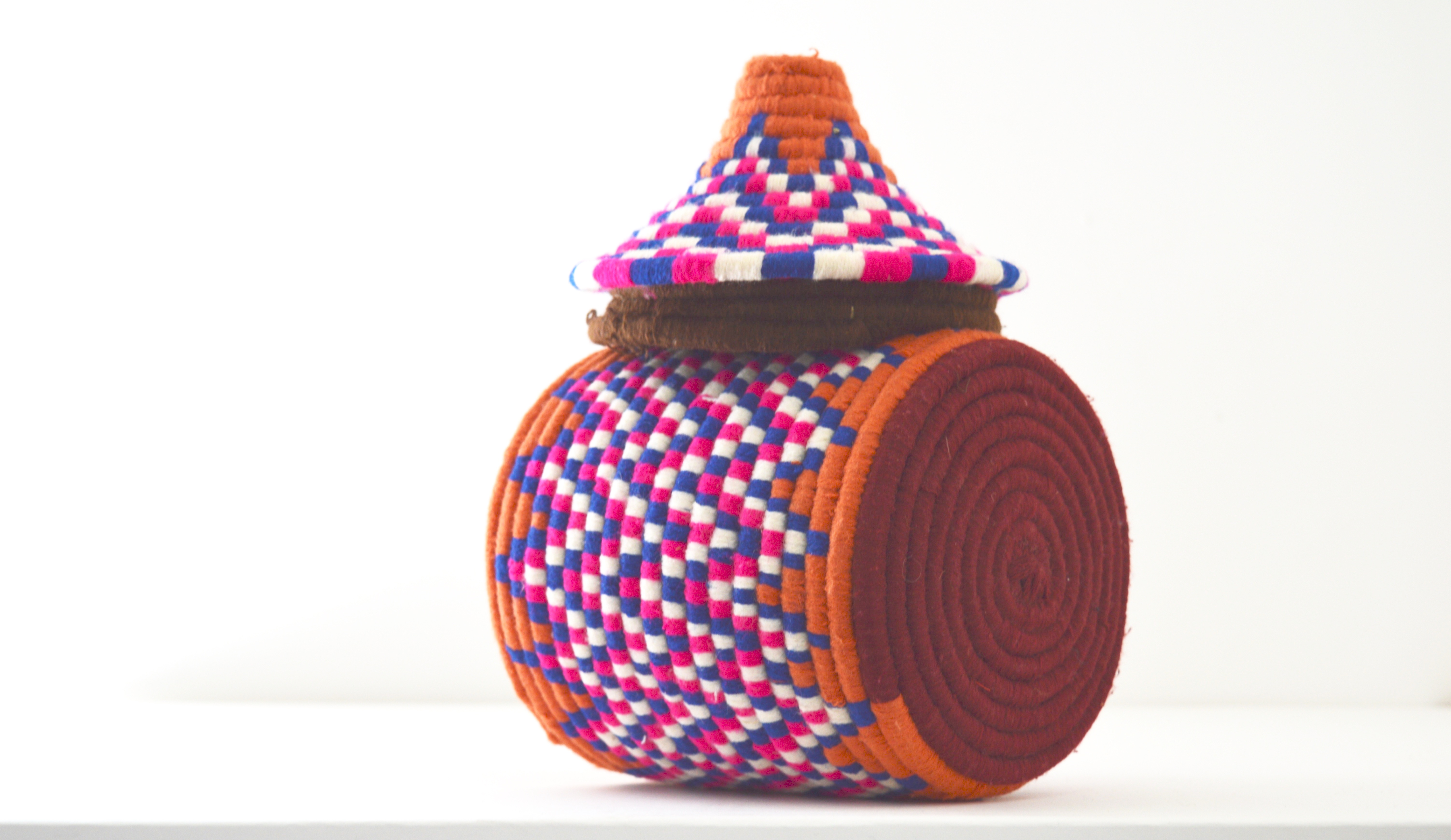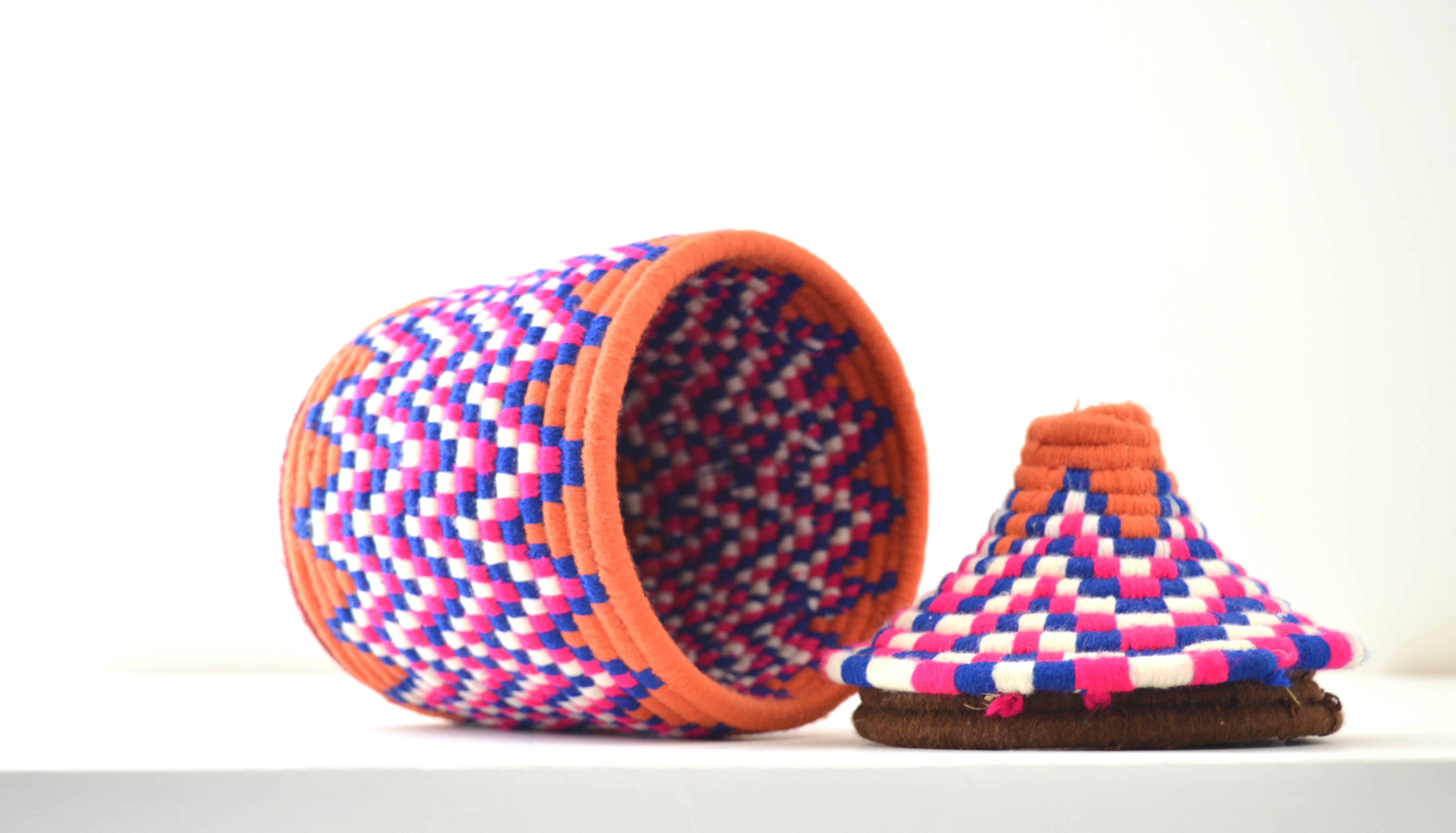 Berber Basket Handwoven Vintage Moroccan Wool Lidded Basket