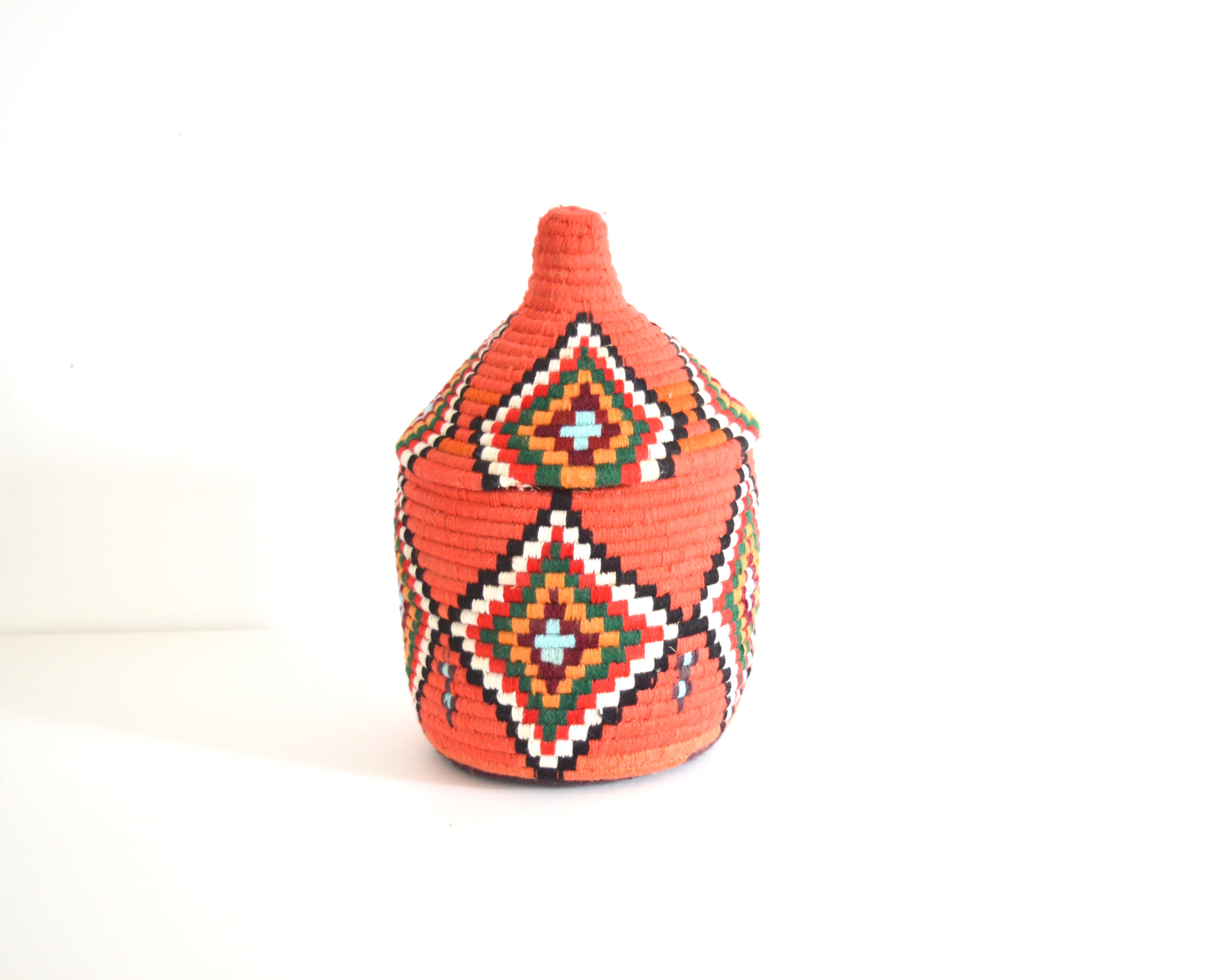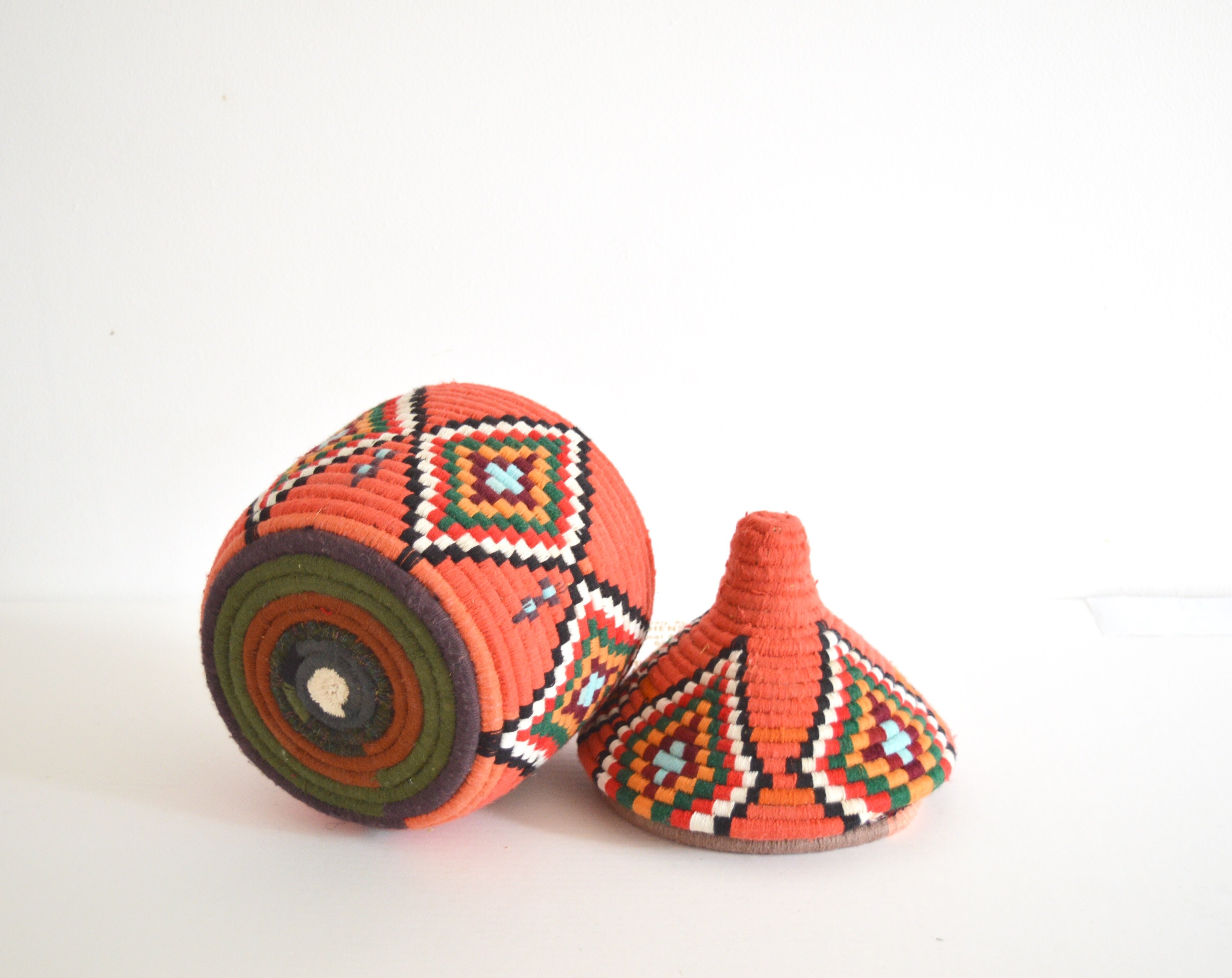 SOLD SOLD SOLD Berber Basket Handwoven Vintage Moroccan Wool Lidded Basket