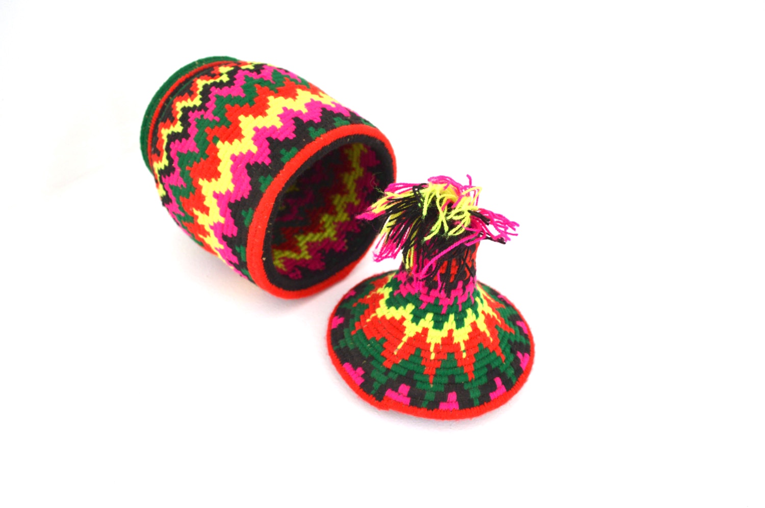 SOLD SOLD SOLD Berber Basket Handwoven Vintage Moroccan Wool Lidded Basket