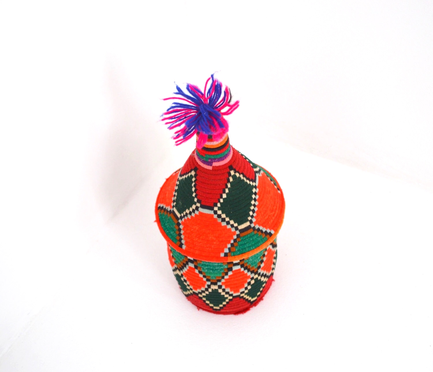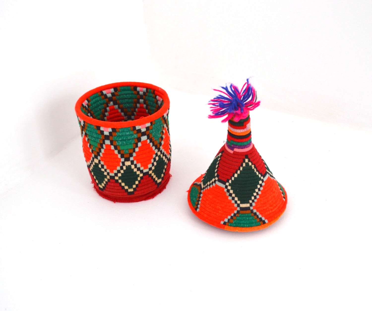 SOLD SOLD SOLD Berber Basket Handwoven Vintage Moroccan Wool Lidded Basket