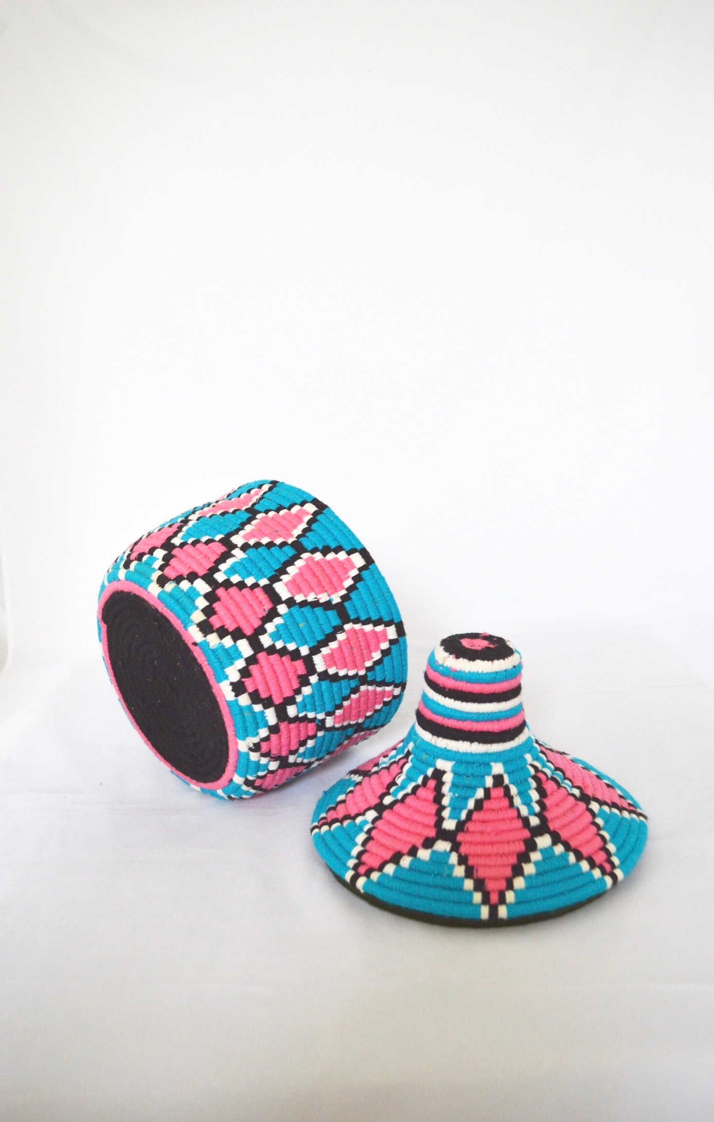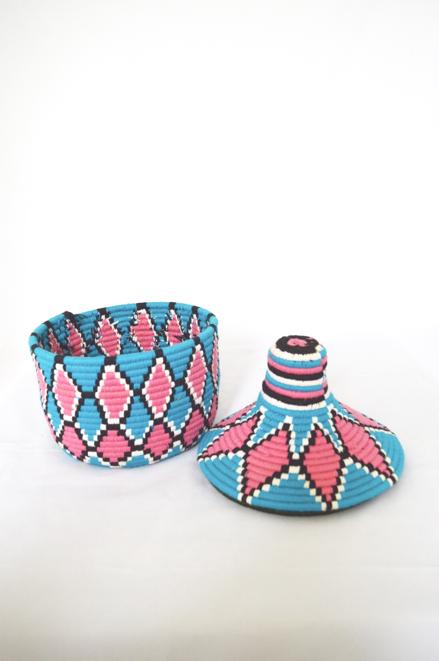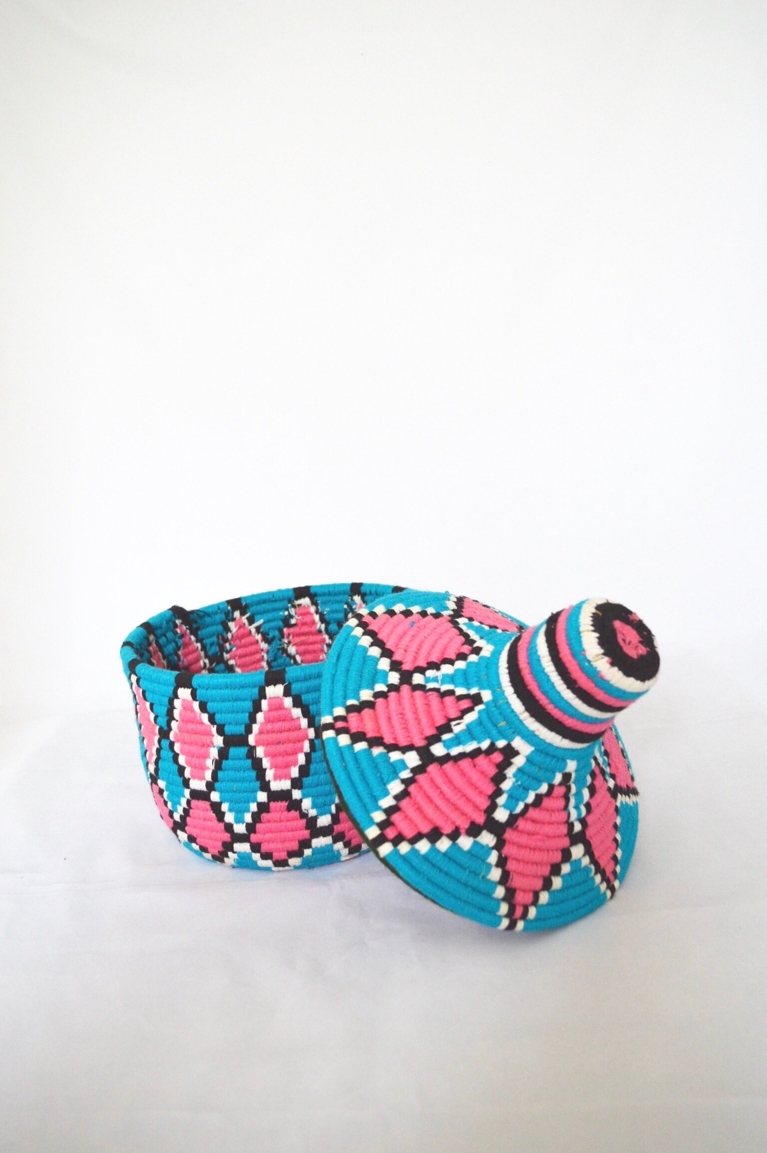SOLD SOLD SOLD Berber Basket Handwoven Vintage Moroccan Berber Wool Lidded Basket