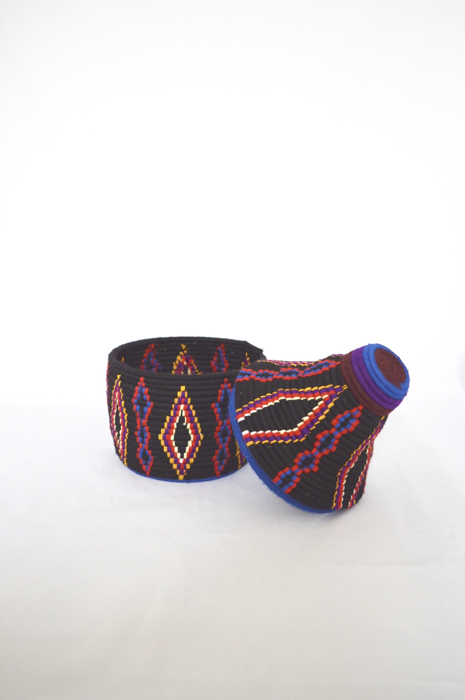 SOLD SOLD SOLD Berber Basket Handwoven Vintage Moroccan Wool Lidded Basket