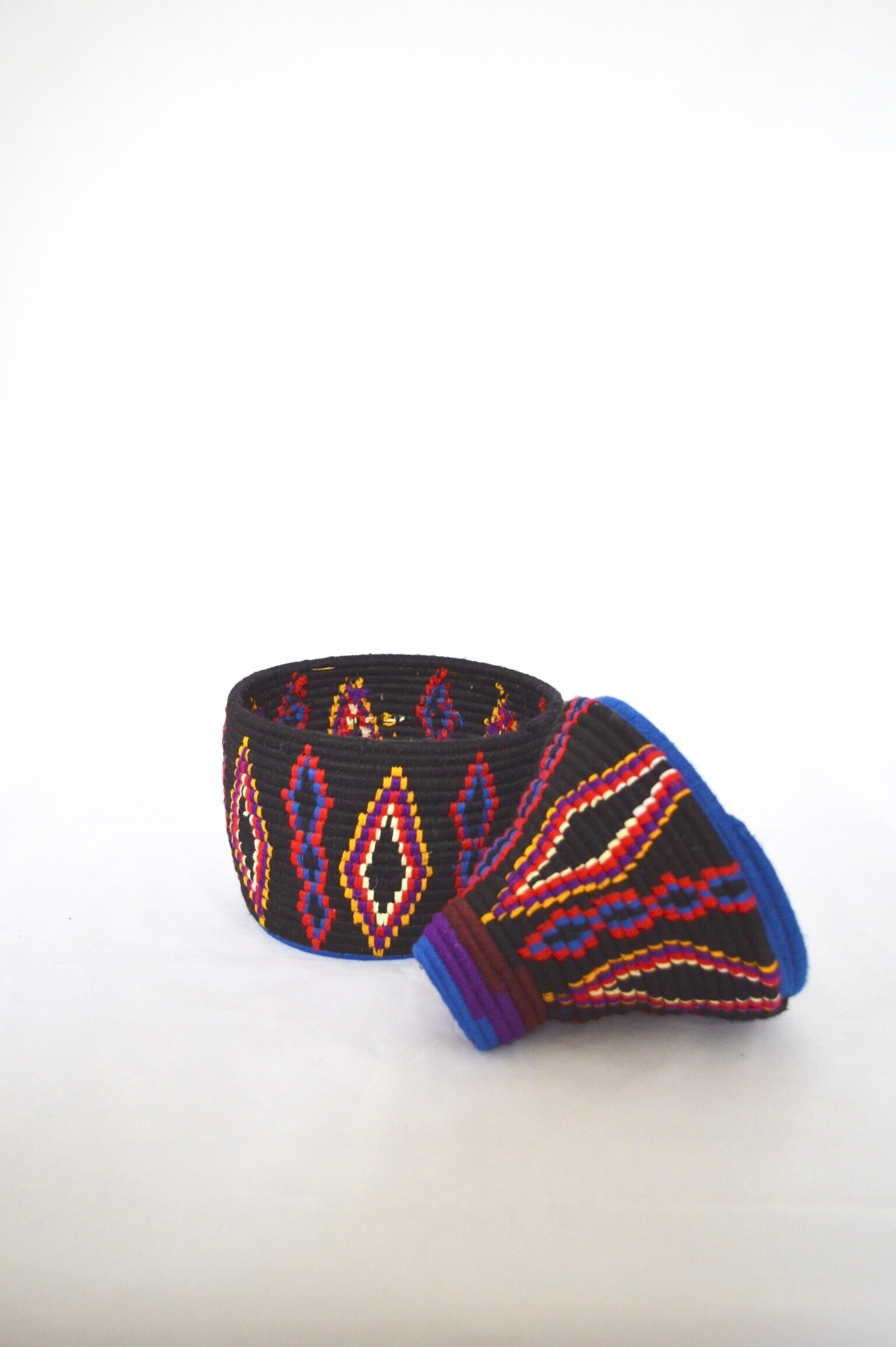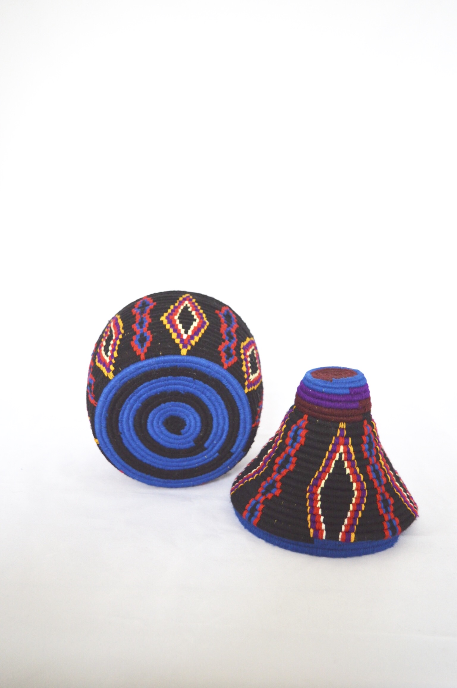 Handwoven Vintage Moroccan Berber Baskets were crafted to store "Khobz" Bread. Contrasting colours and Abstract designs create an individual unique item.