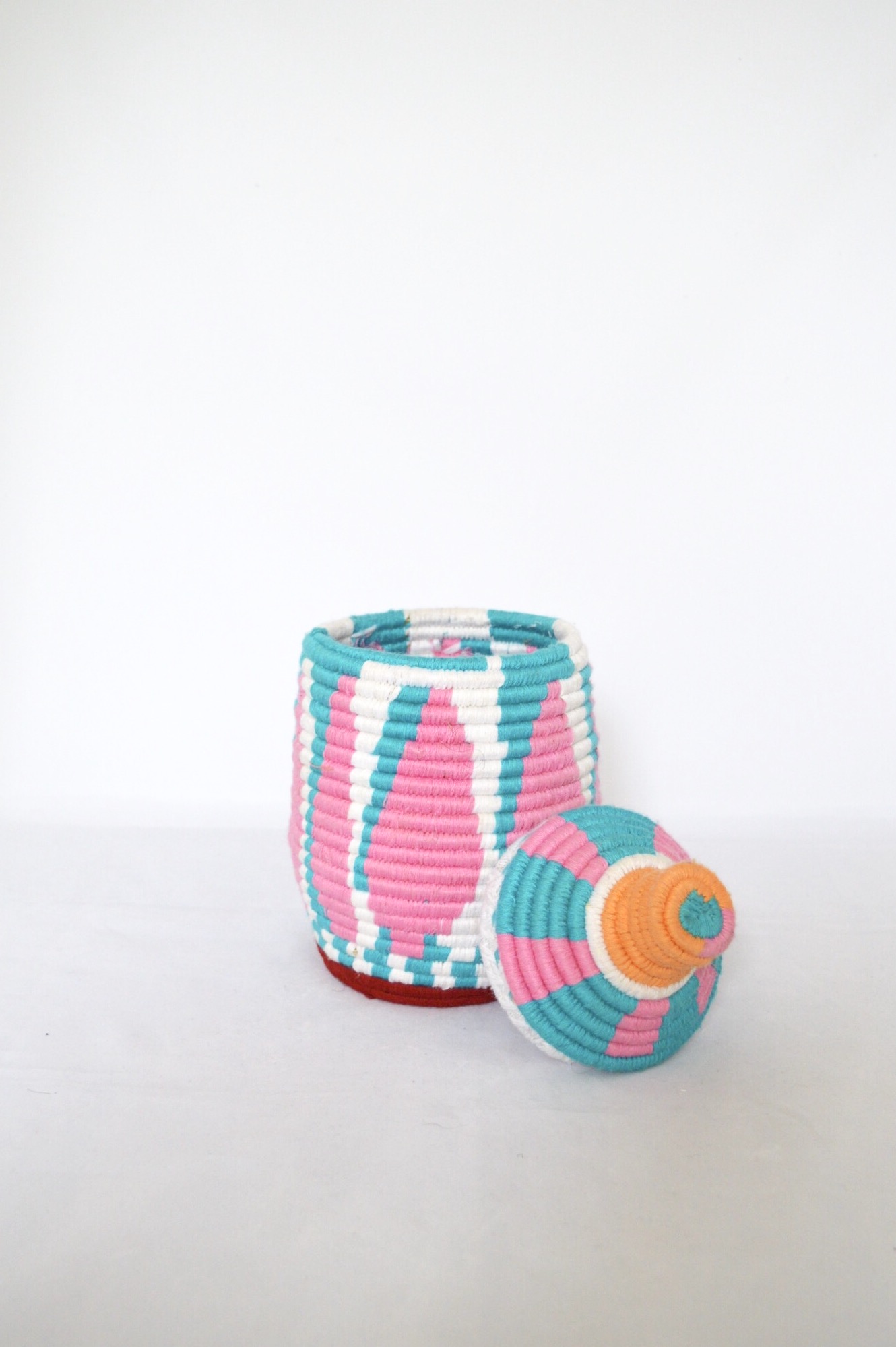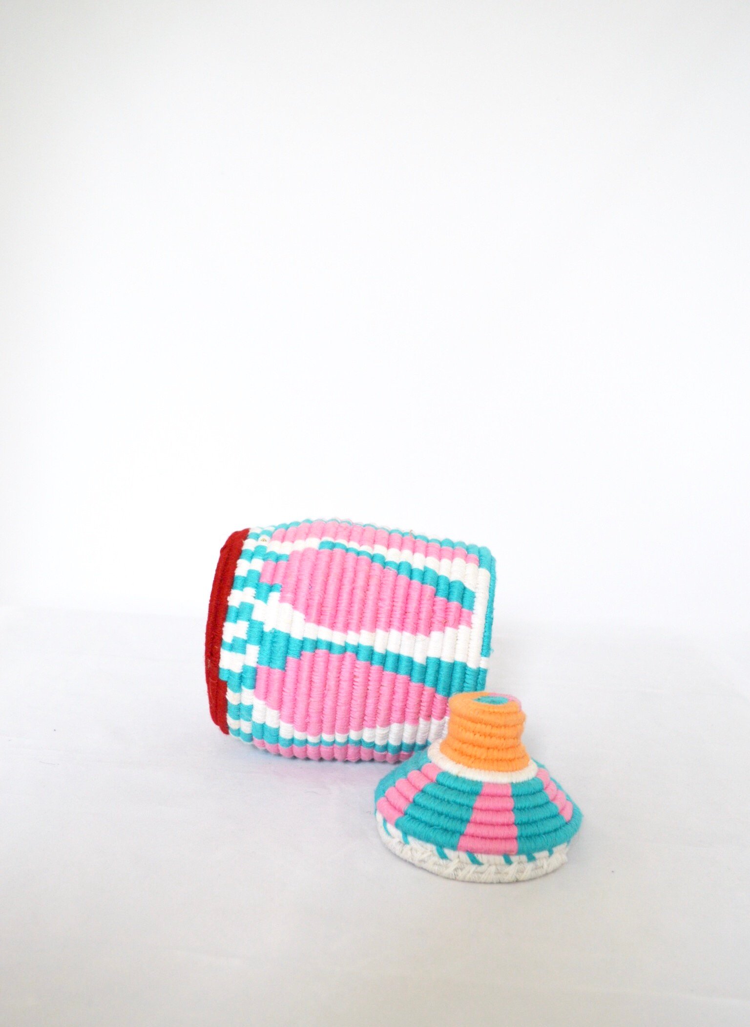 SOLD SOLD SOLD Berber Basket Handwoven Vintage Moroccan Wool Lidded Basket