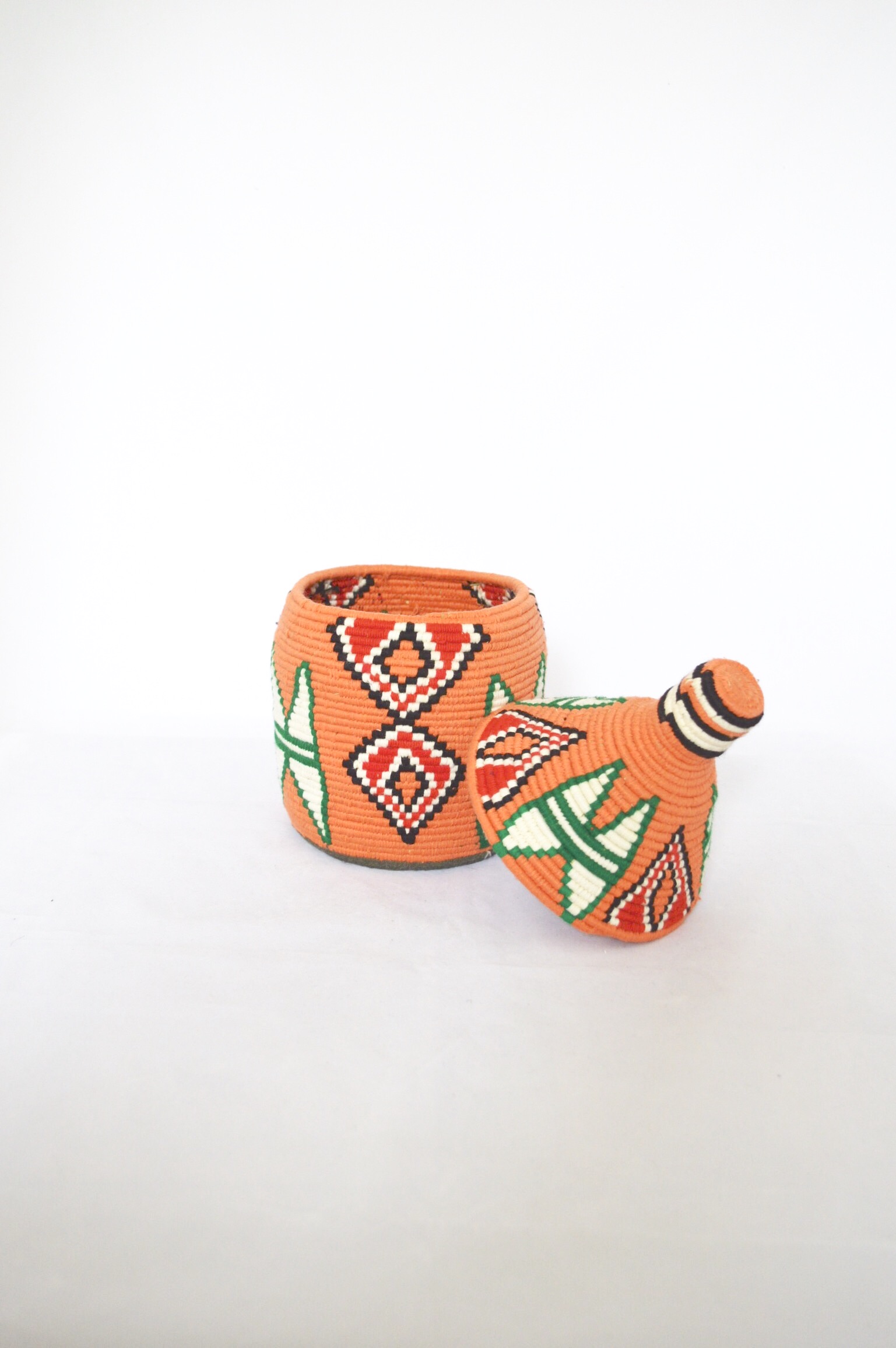 SOLD SOLD SOLD Berber Basket Handwoven Vintage Moroccan Wool Lidded Basket