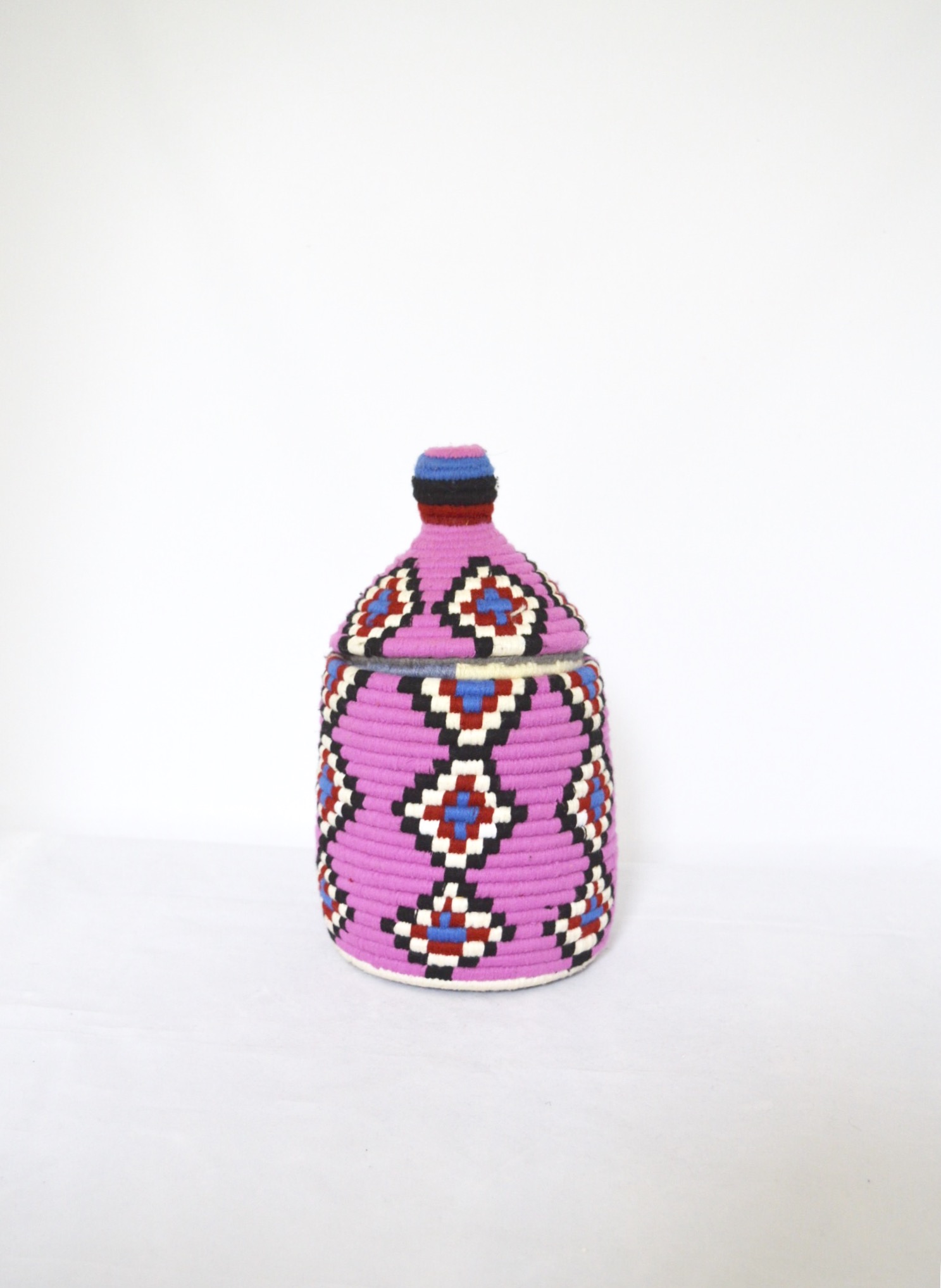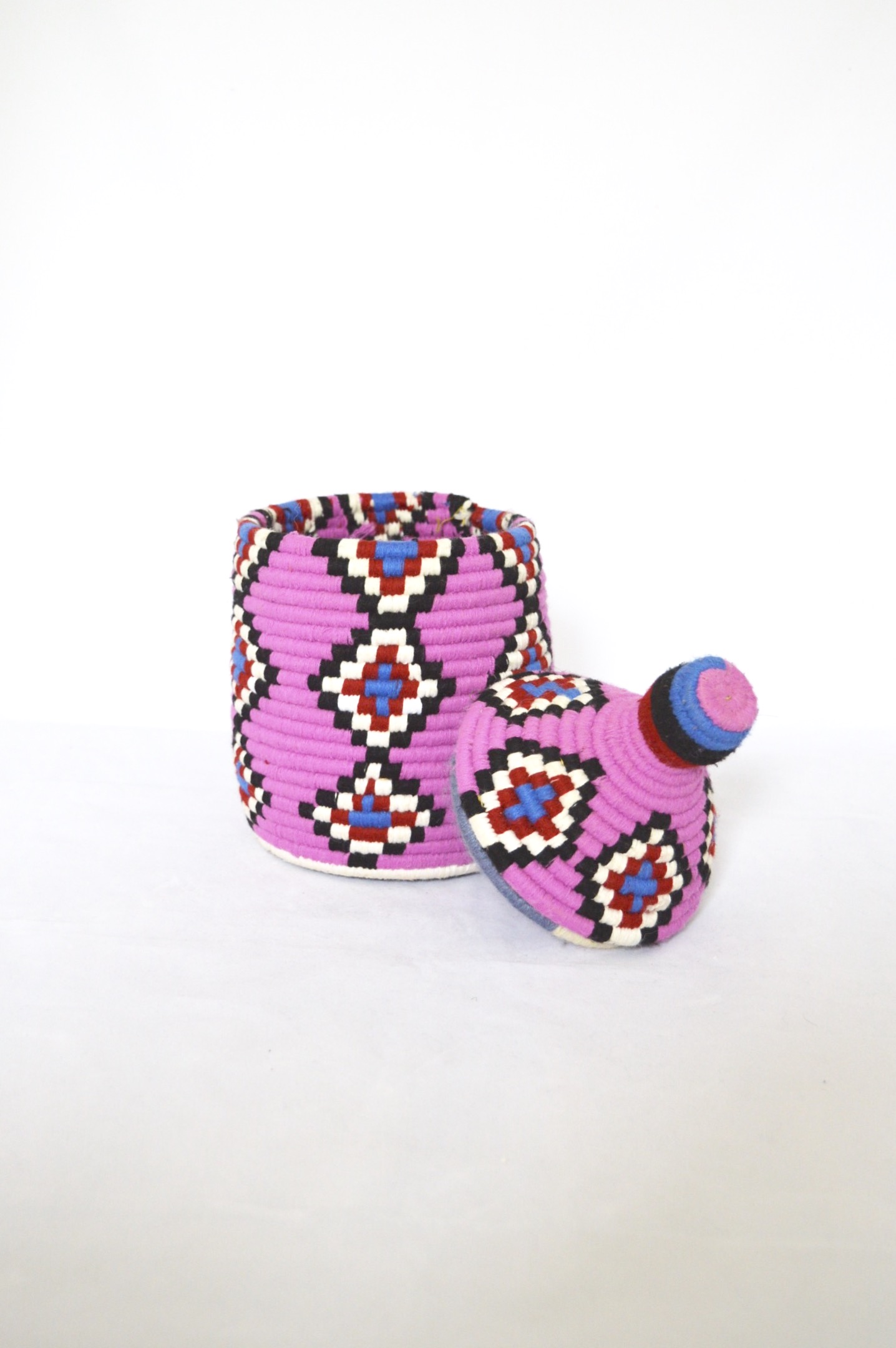 SOLD SOLD SOLD Berber Basket Handwoven Vintage Moroccan Wool Lidded Basket