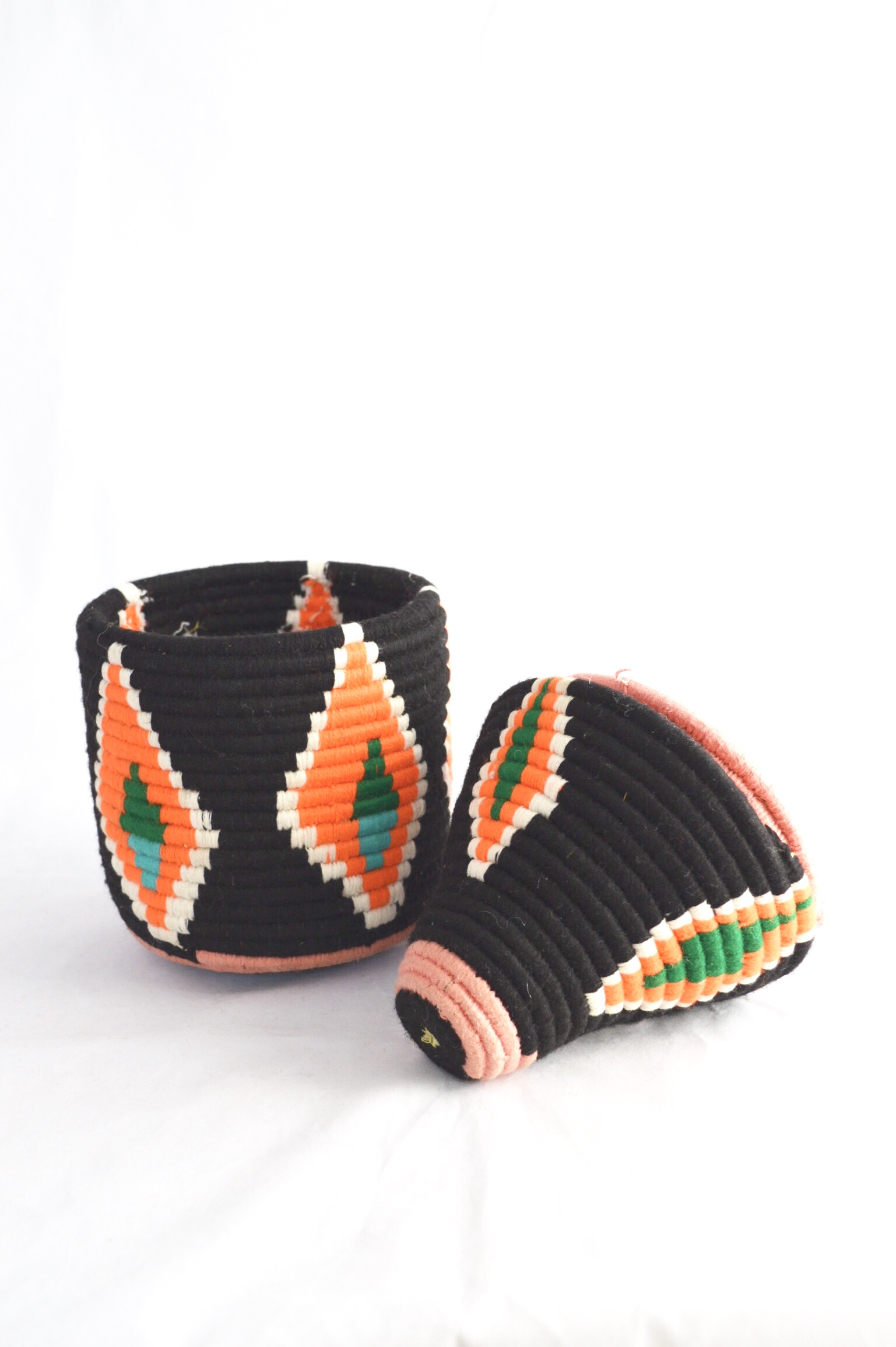 Handwoven Vintage Moroccan Berber Baskets were crafted to store "Khobz" Bread. Contrasting colours and Abstract designs create an individual unique item.