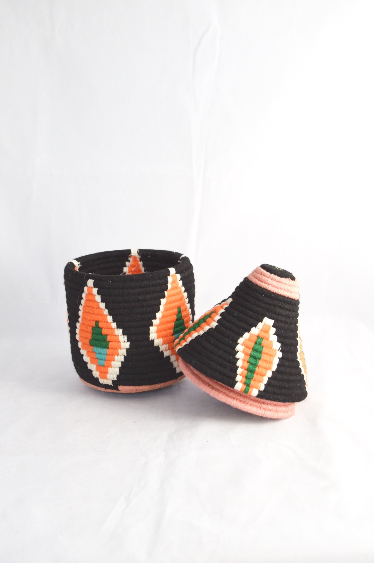 SOLD SOLD SOLD Berber Basket Handwoven Vintage Moroccan Wool Lidded Basket