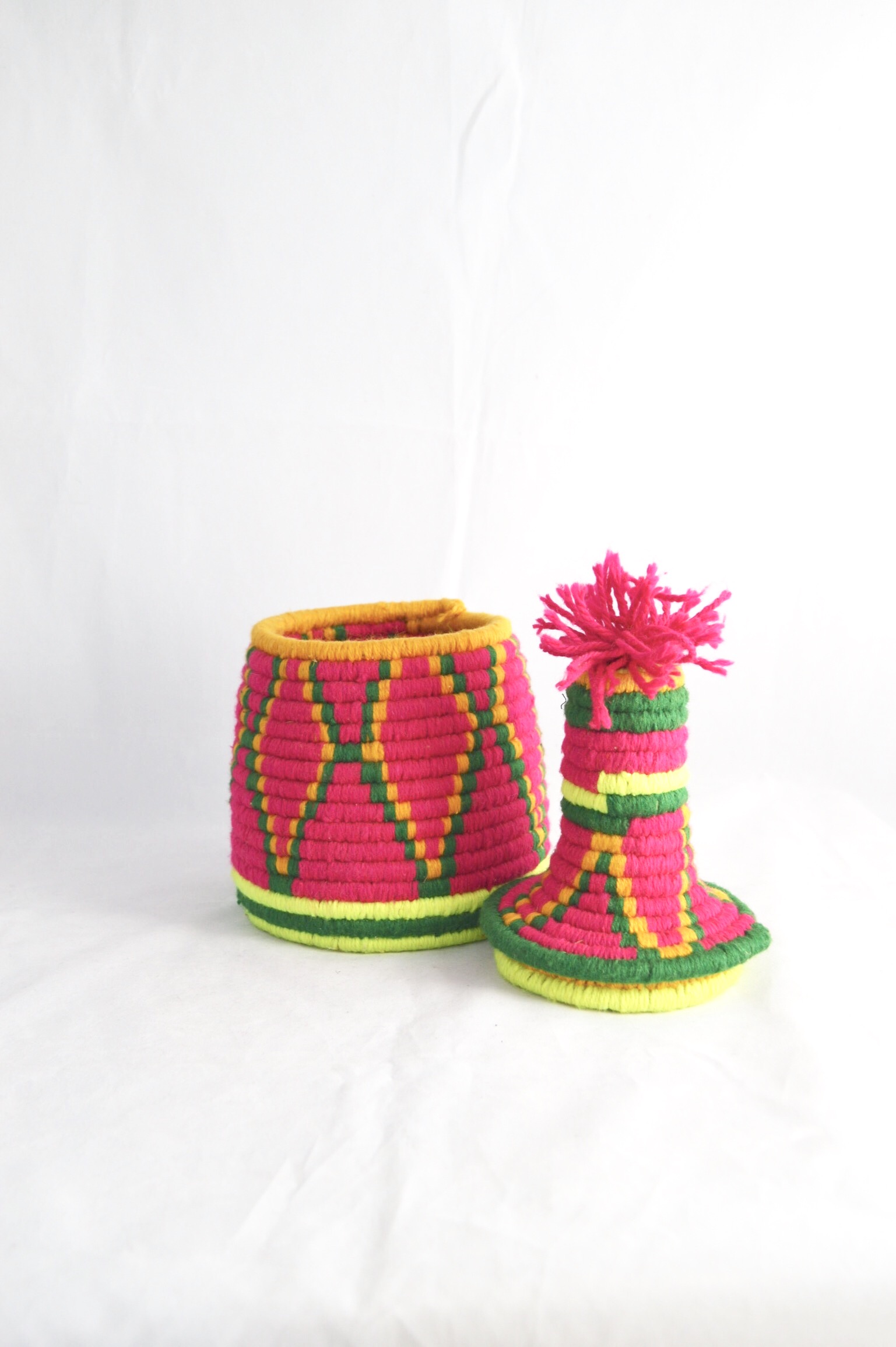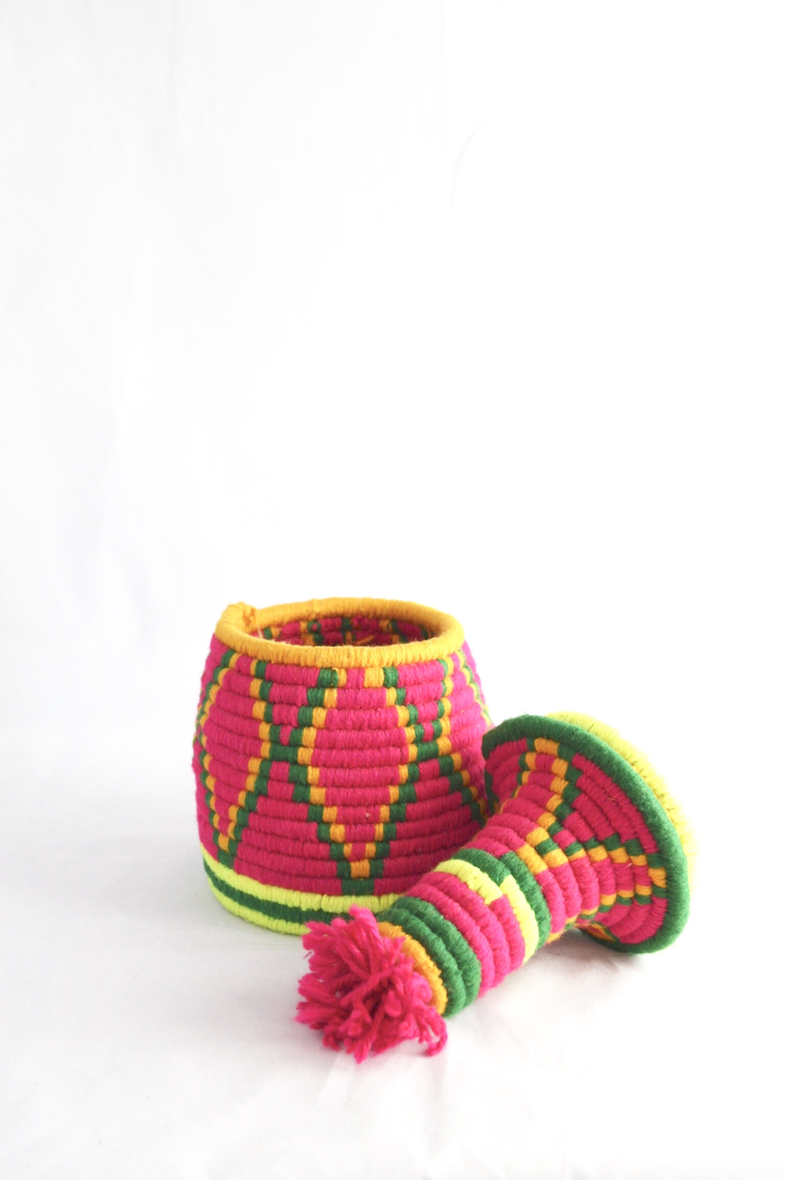 Berber Basket Handwoven Vintage Moroccan Wool Lidded Basket