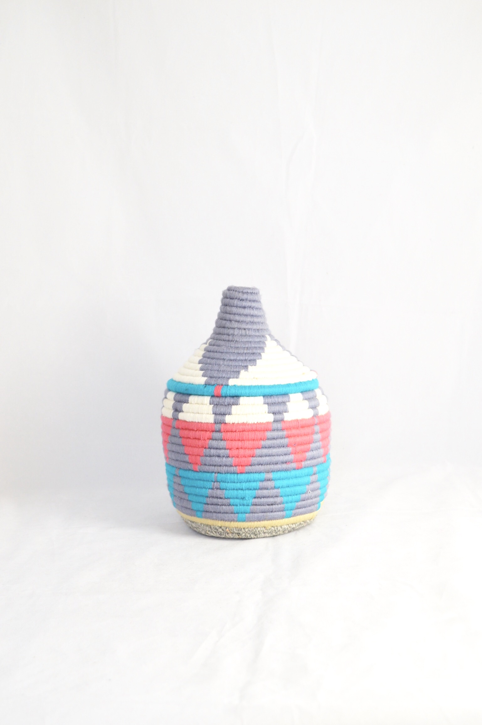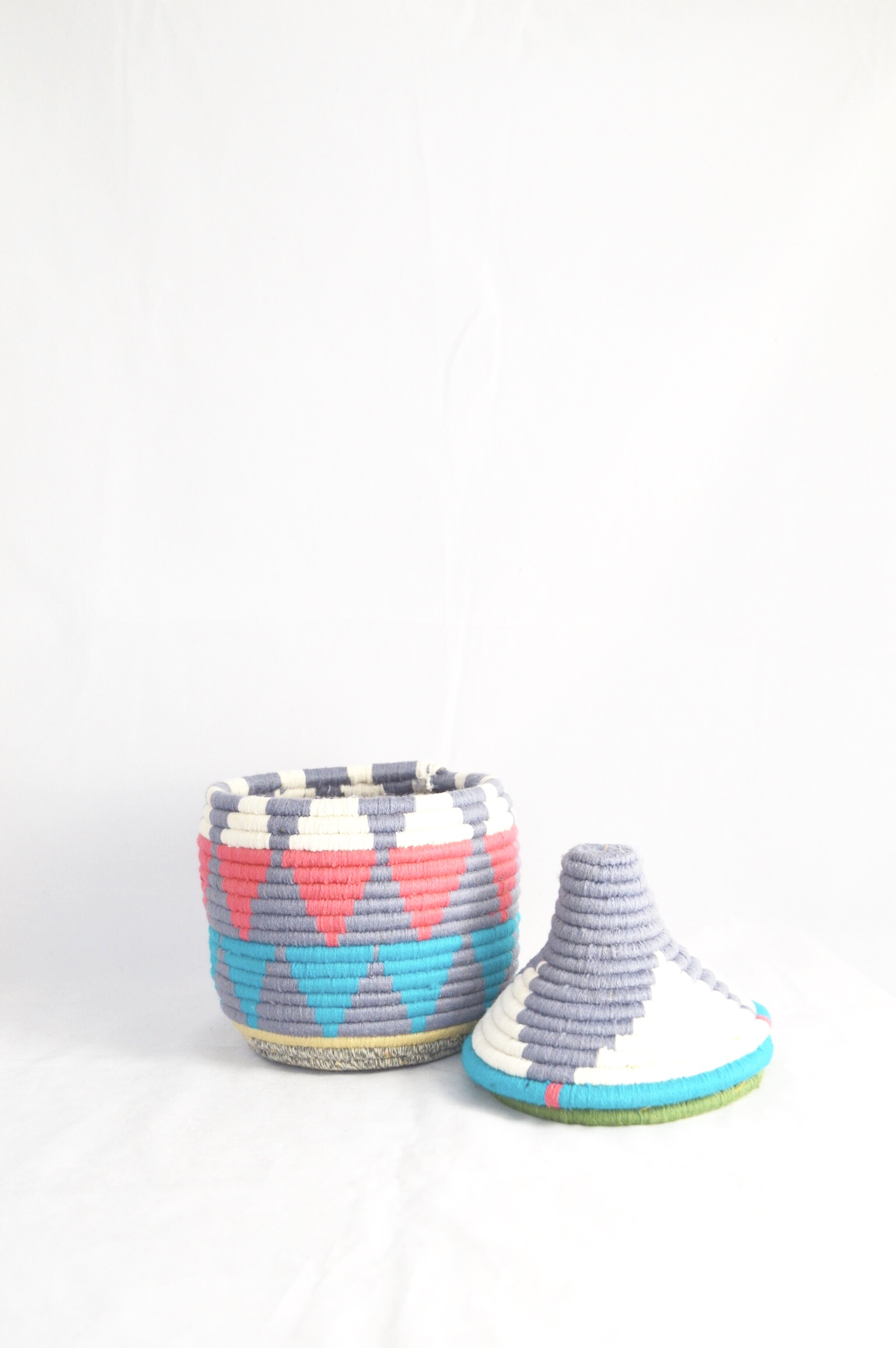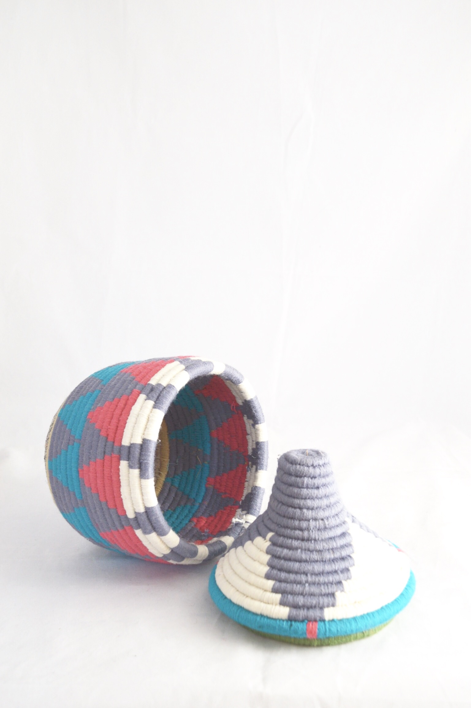 Berber Basket Handwoven Vintage Moroccan Wool Lidded Basket