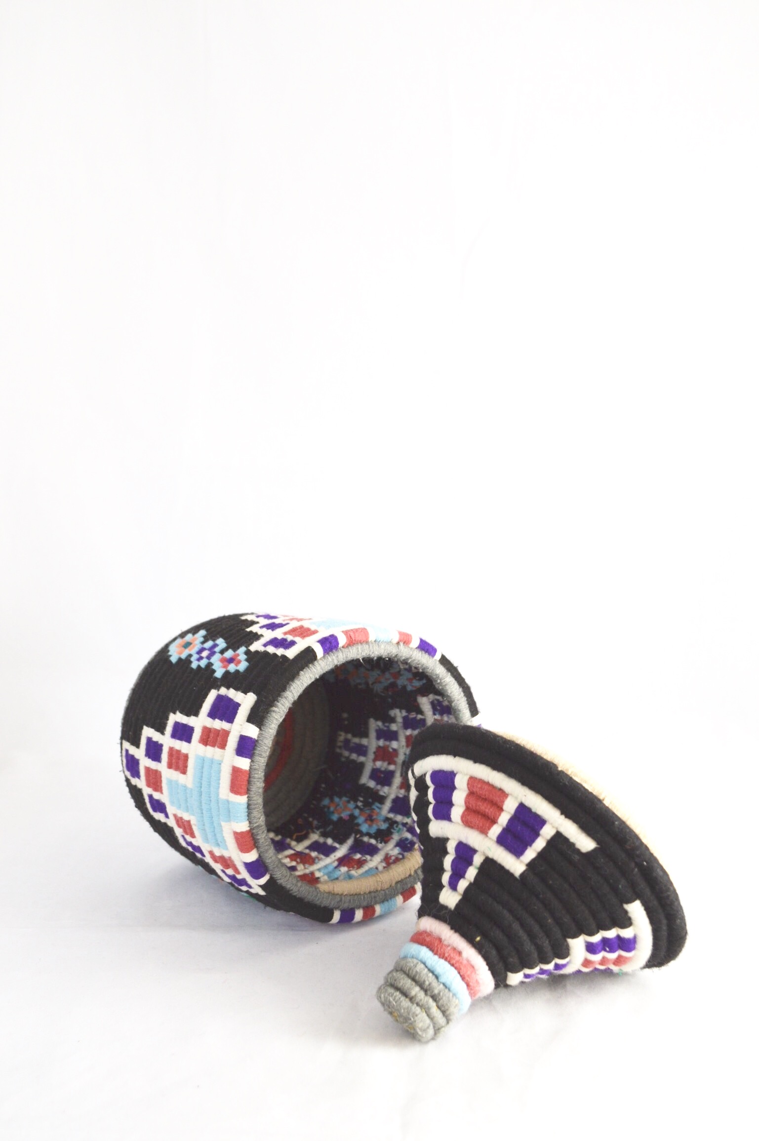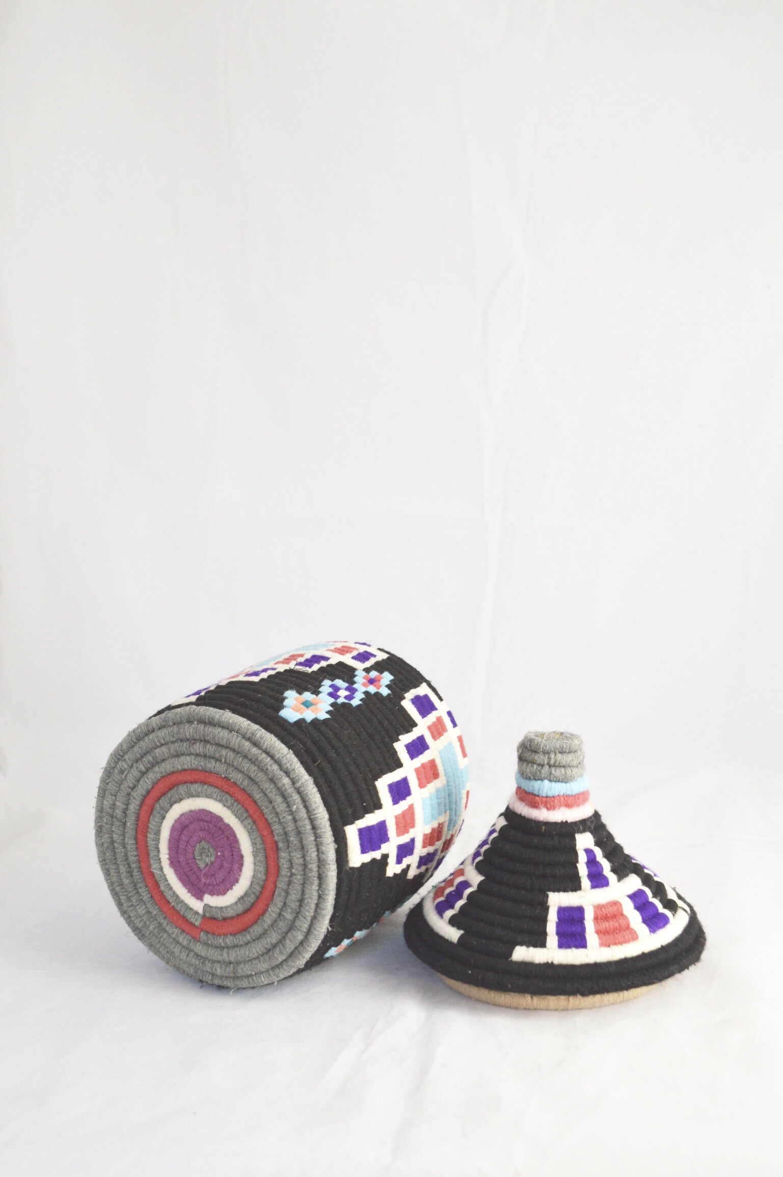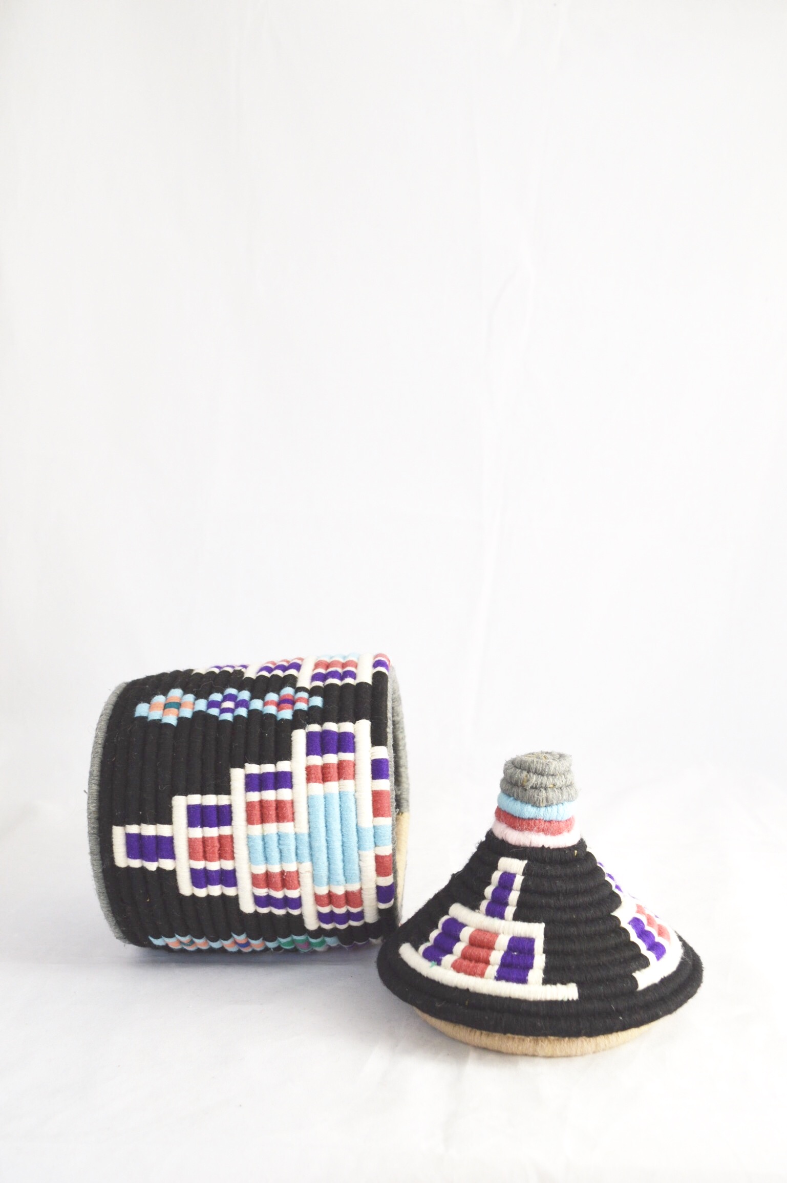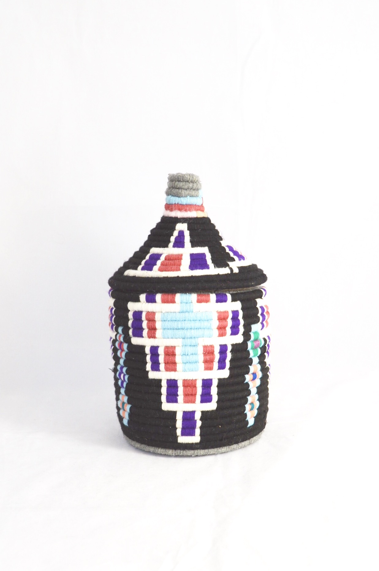 SOLD SOLD SOLD Berber Basket Handwoven Vintage Moroccan Wool Lidded Basket