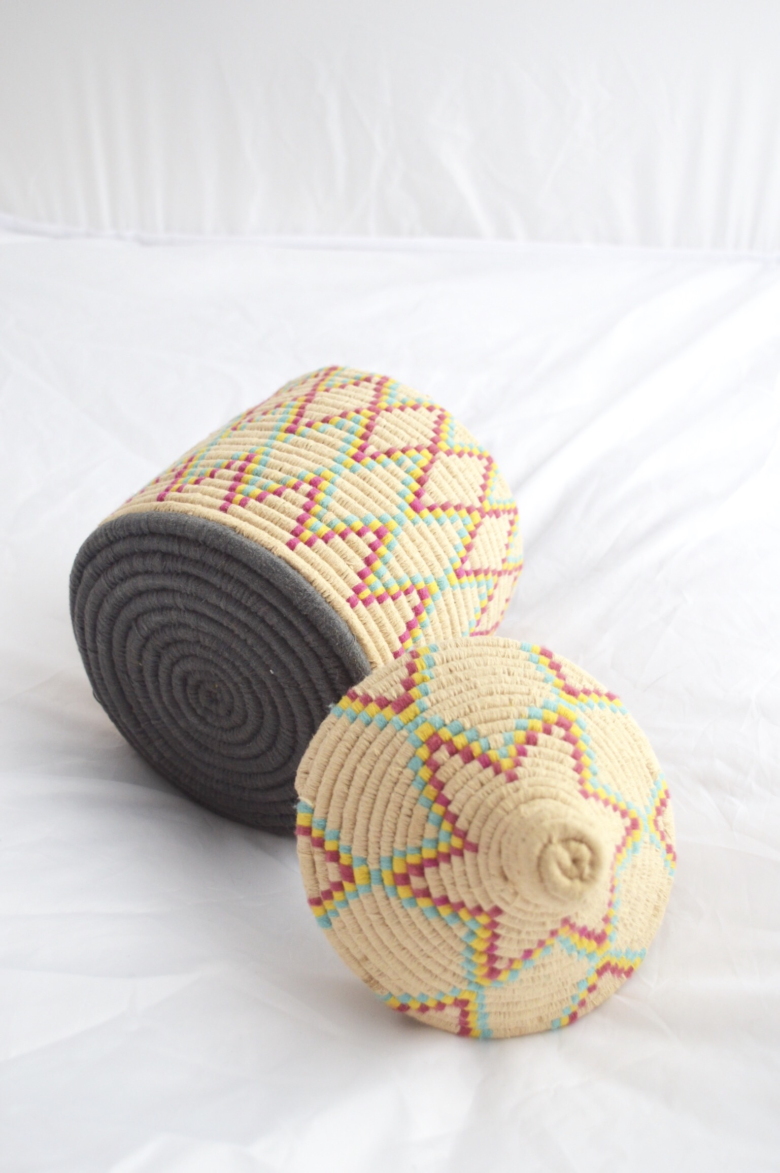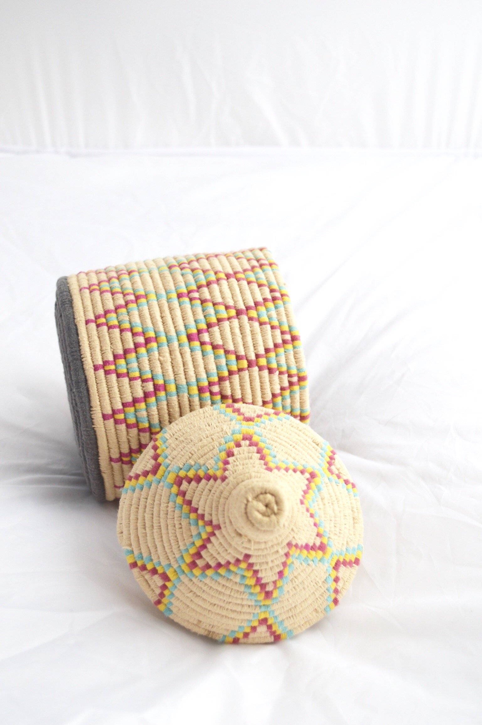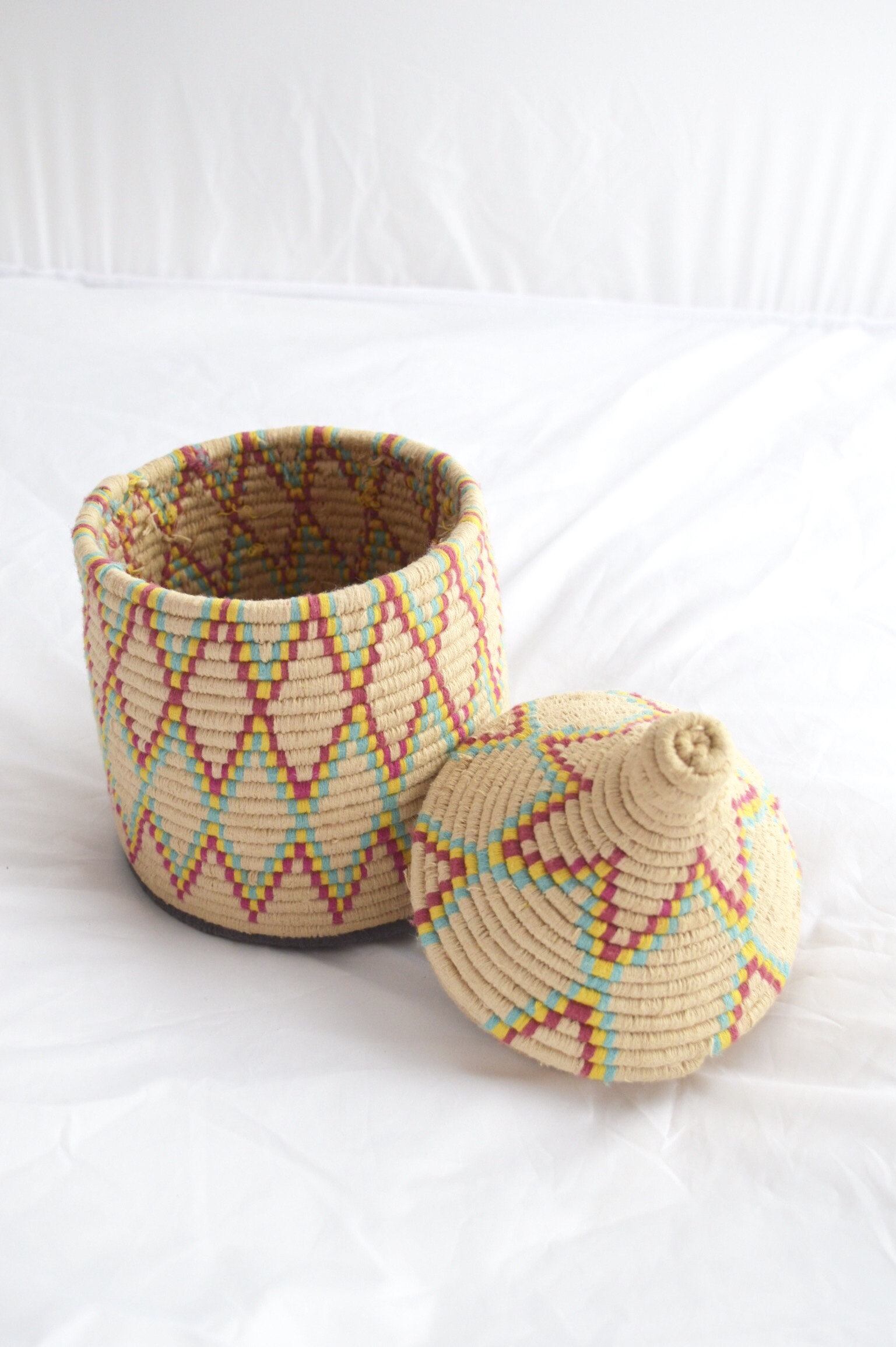 Berber Basket Handwoven Moroccan Wool Lidded Basket