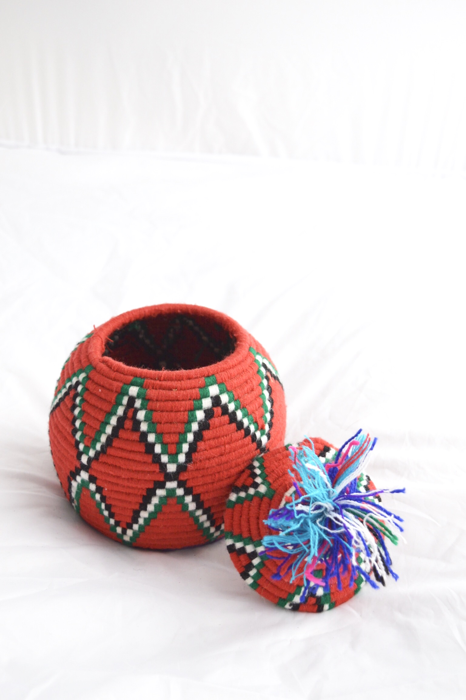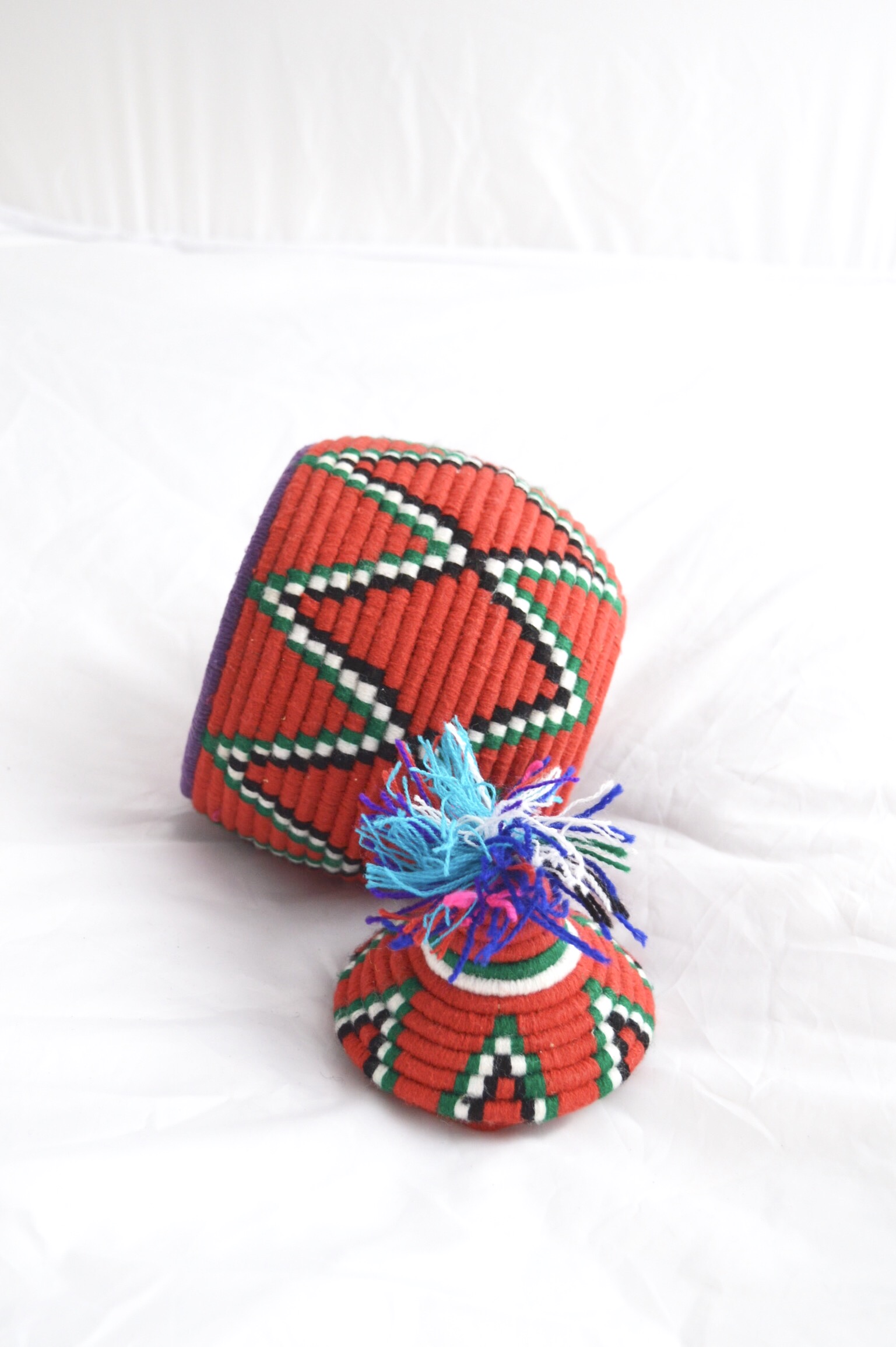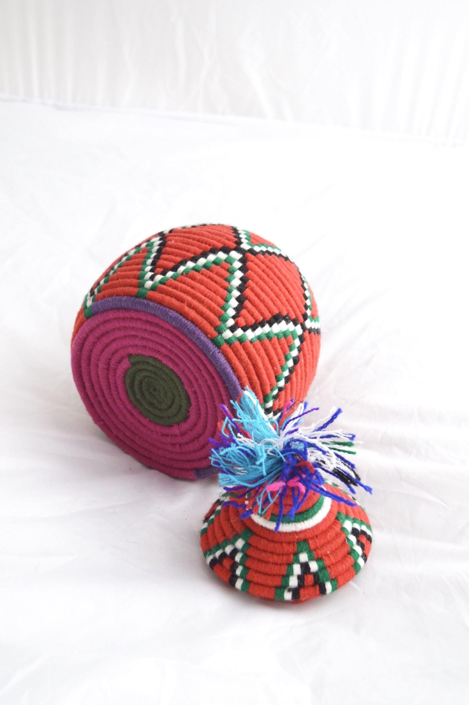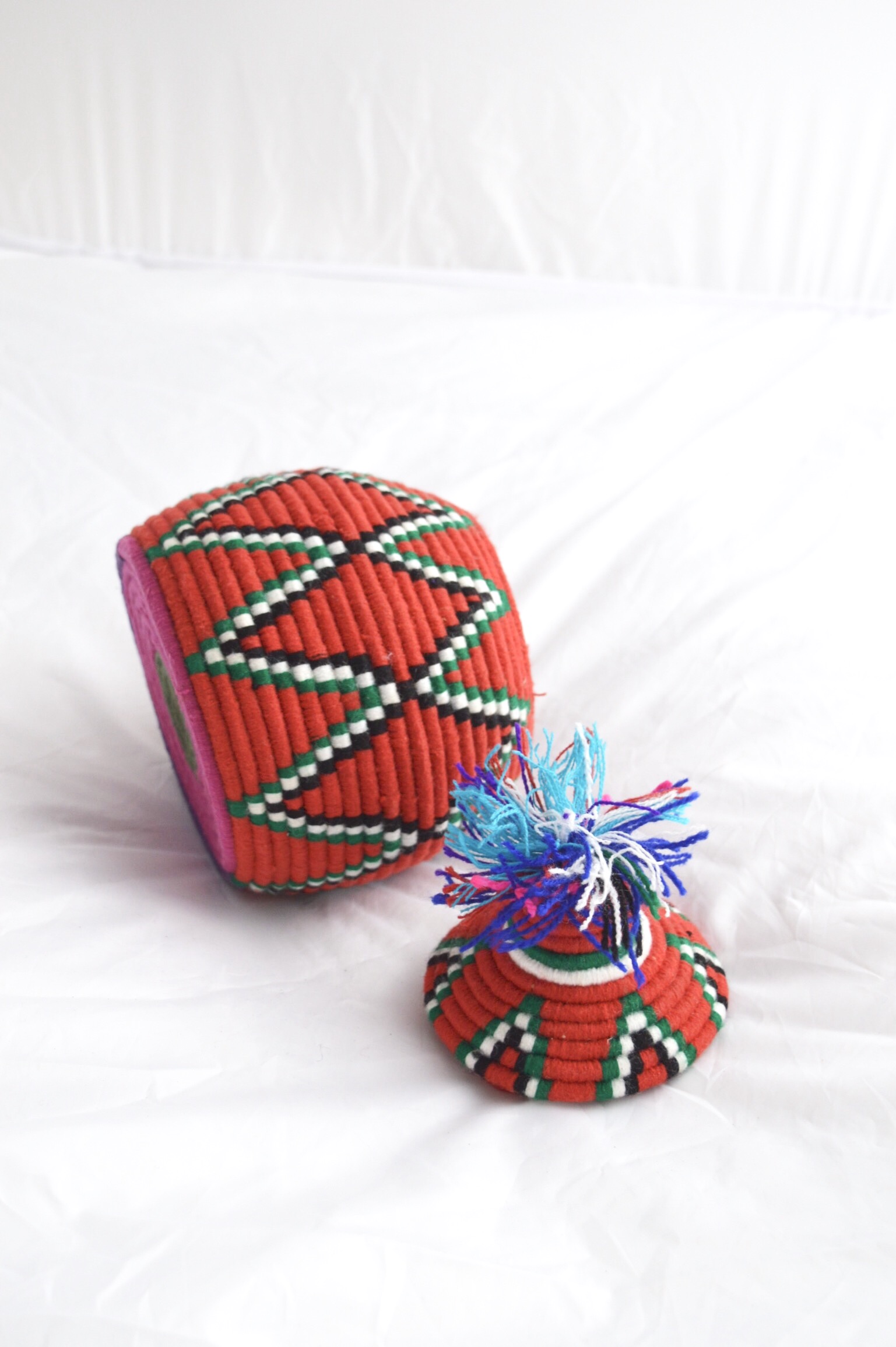 Berber Basket Handwoven Vintage Moroccan Wool Lidded Basket