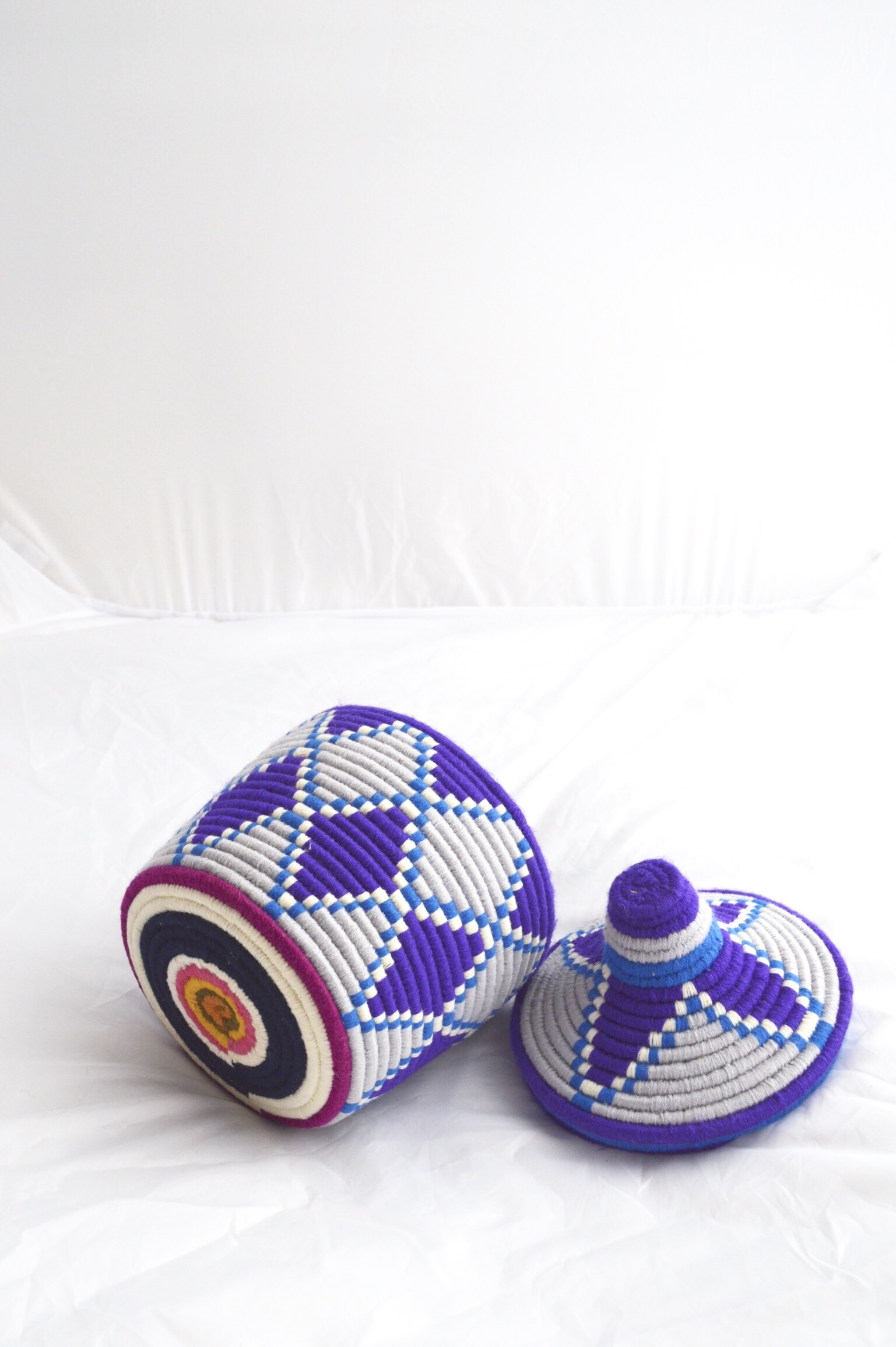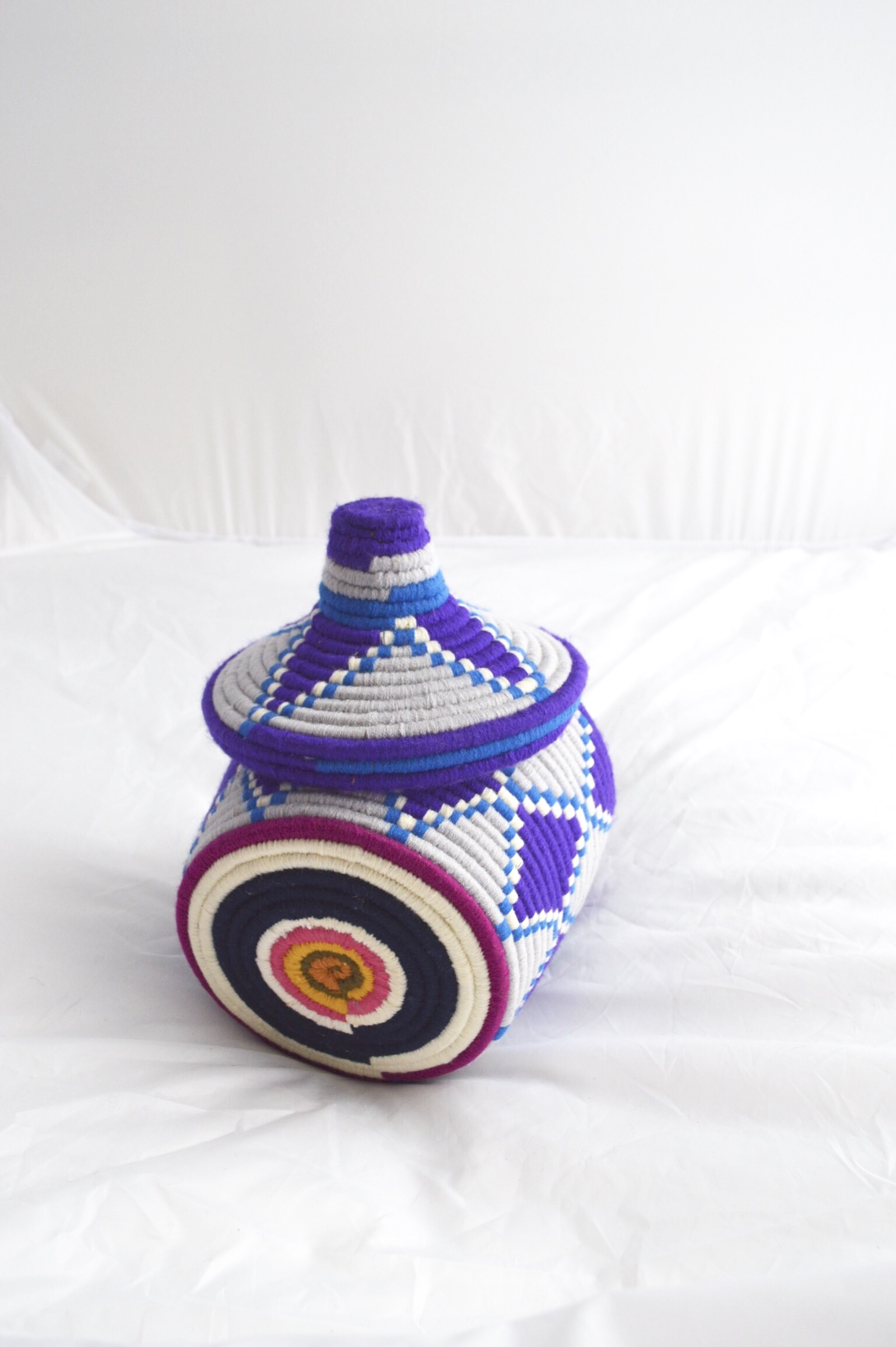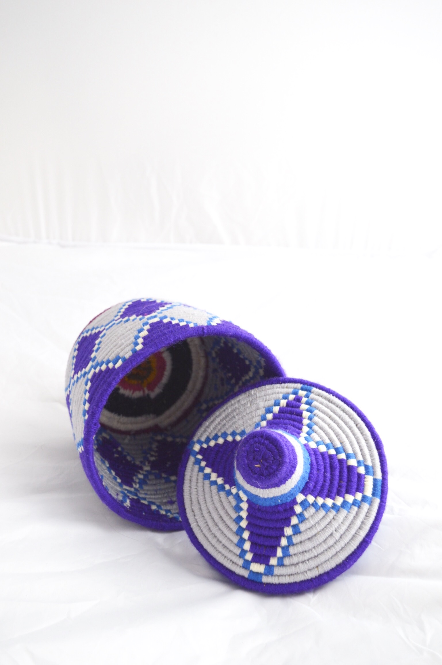 Berber Basket Handwoven Vintage Moroccan Wool Lidded Basket