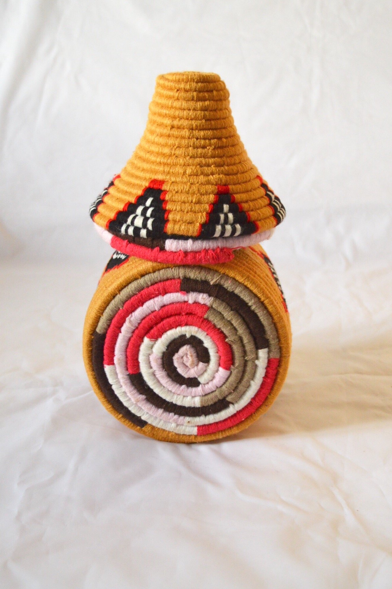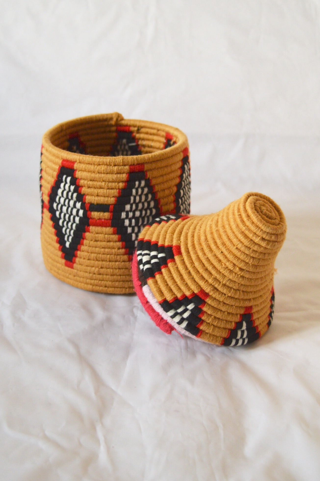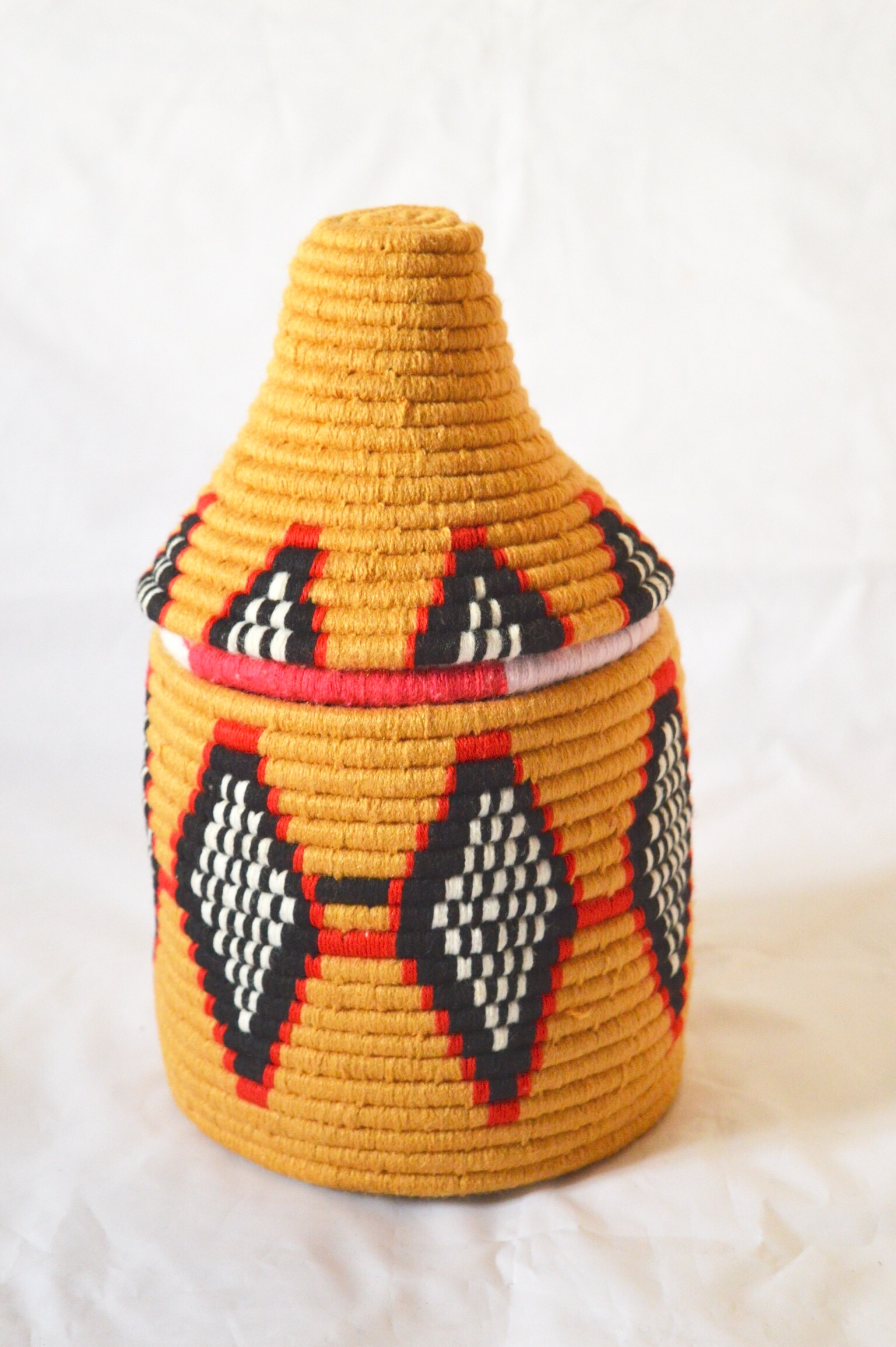 Berber Basket Handwoven Vintage Moroccan Wool Lidded Basket