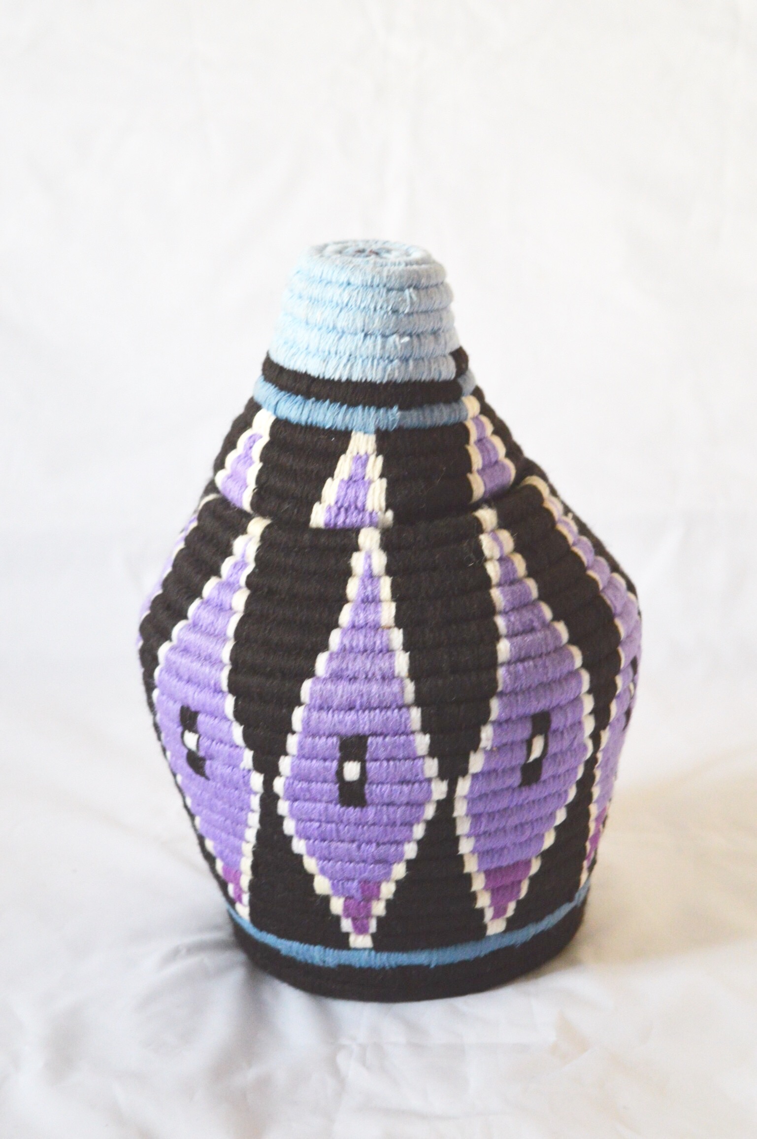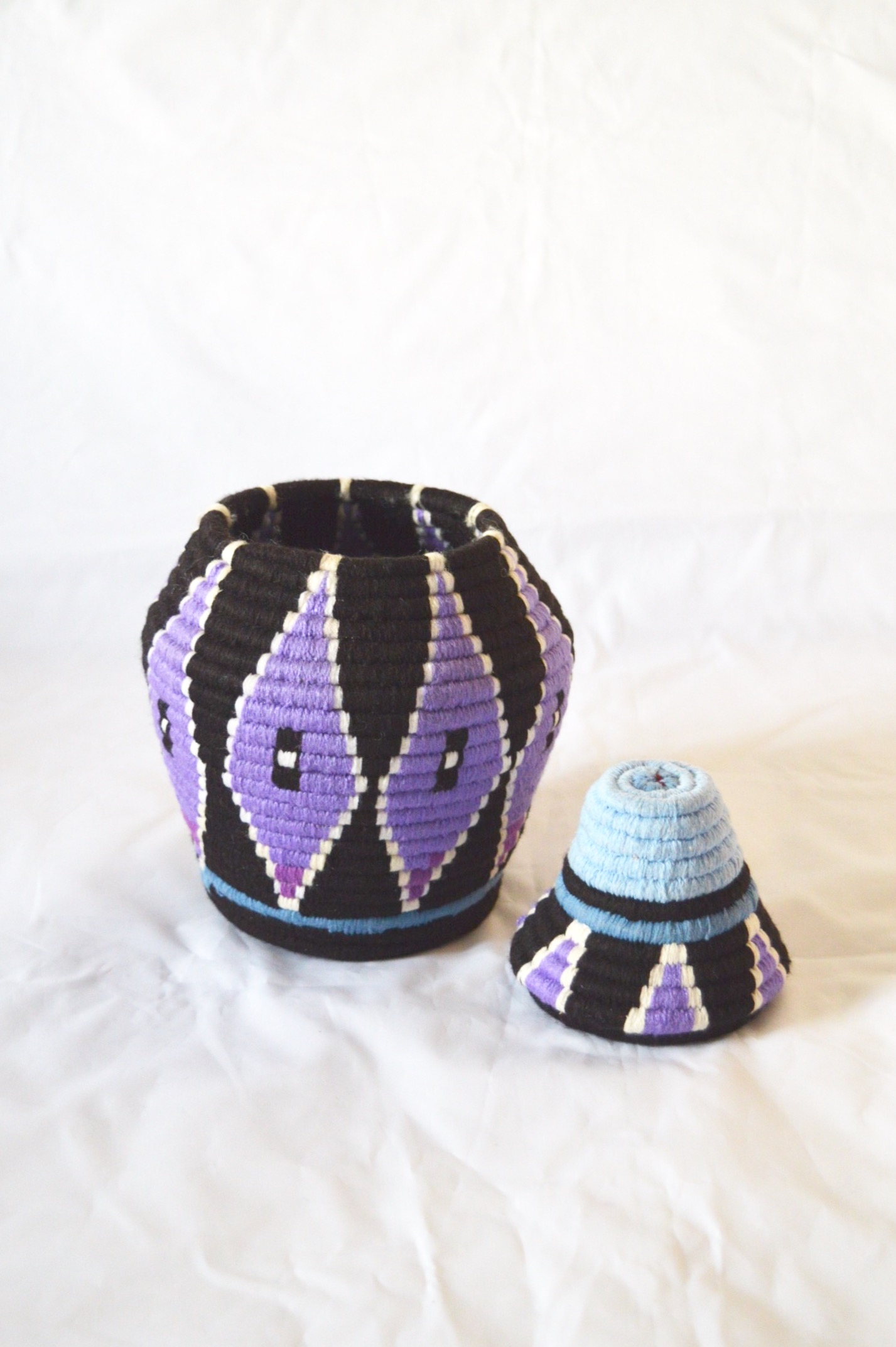 Berber Basket Handwoven Vintage Moroccan Wool Lidded Basket