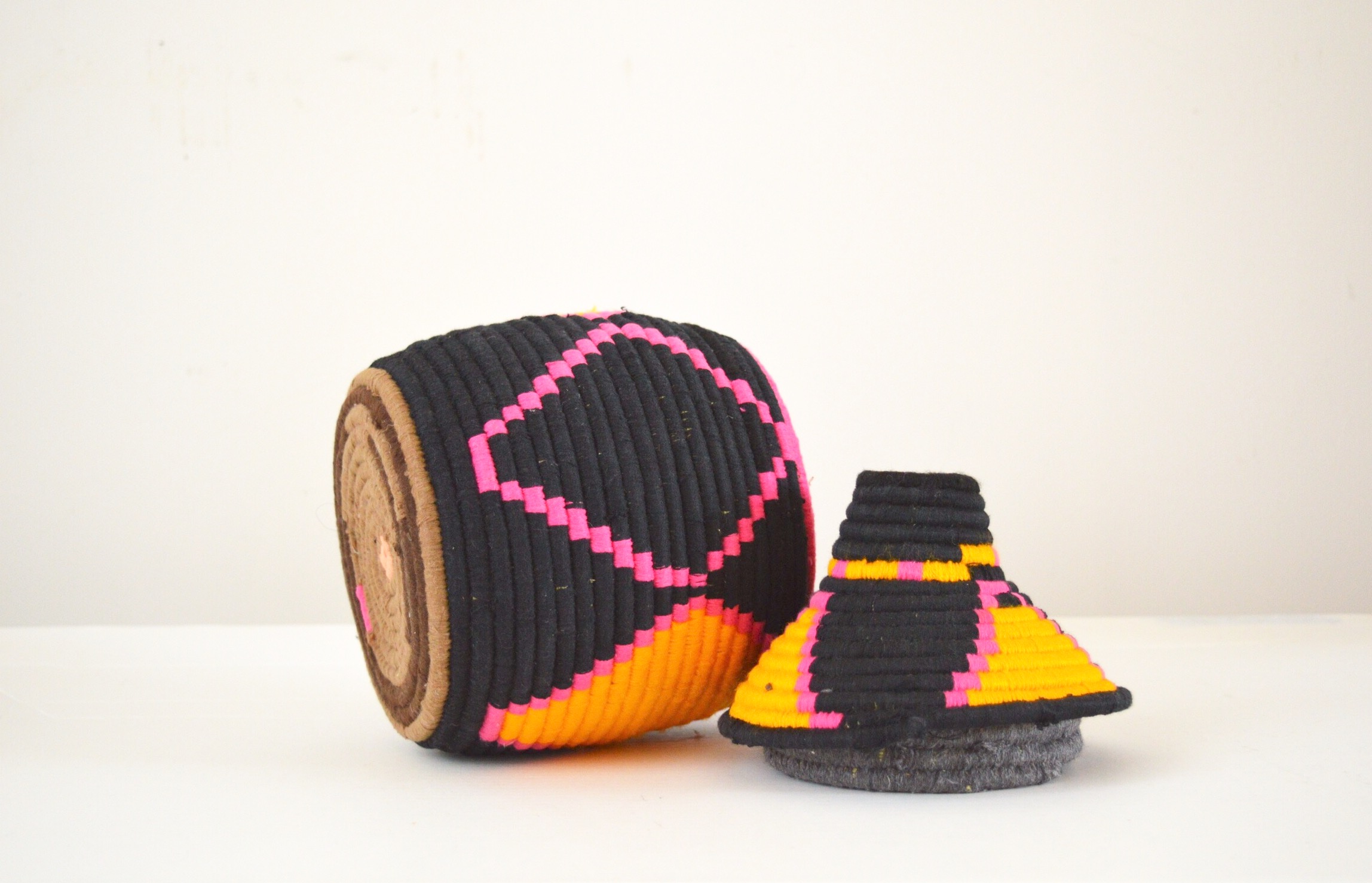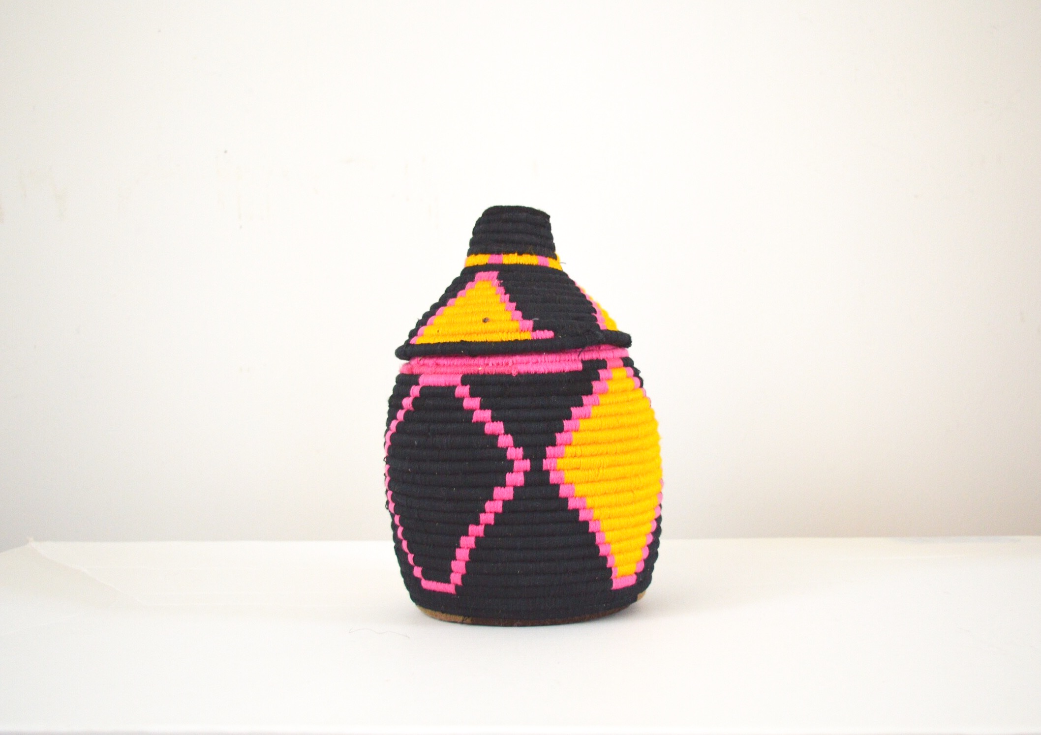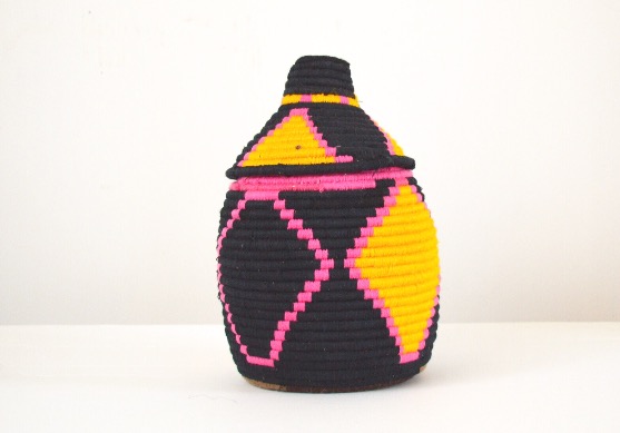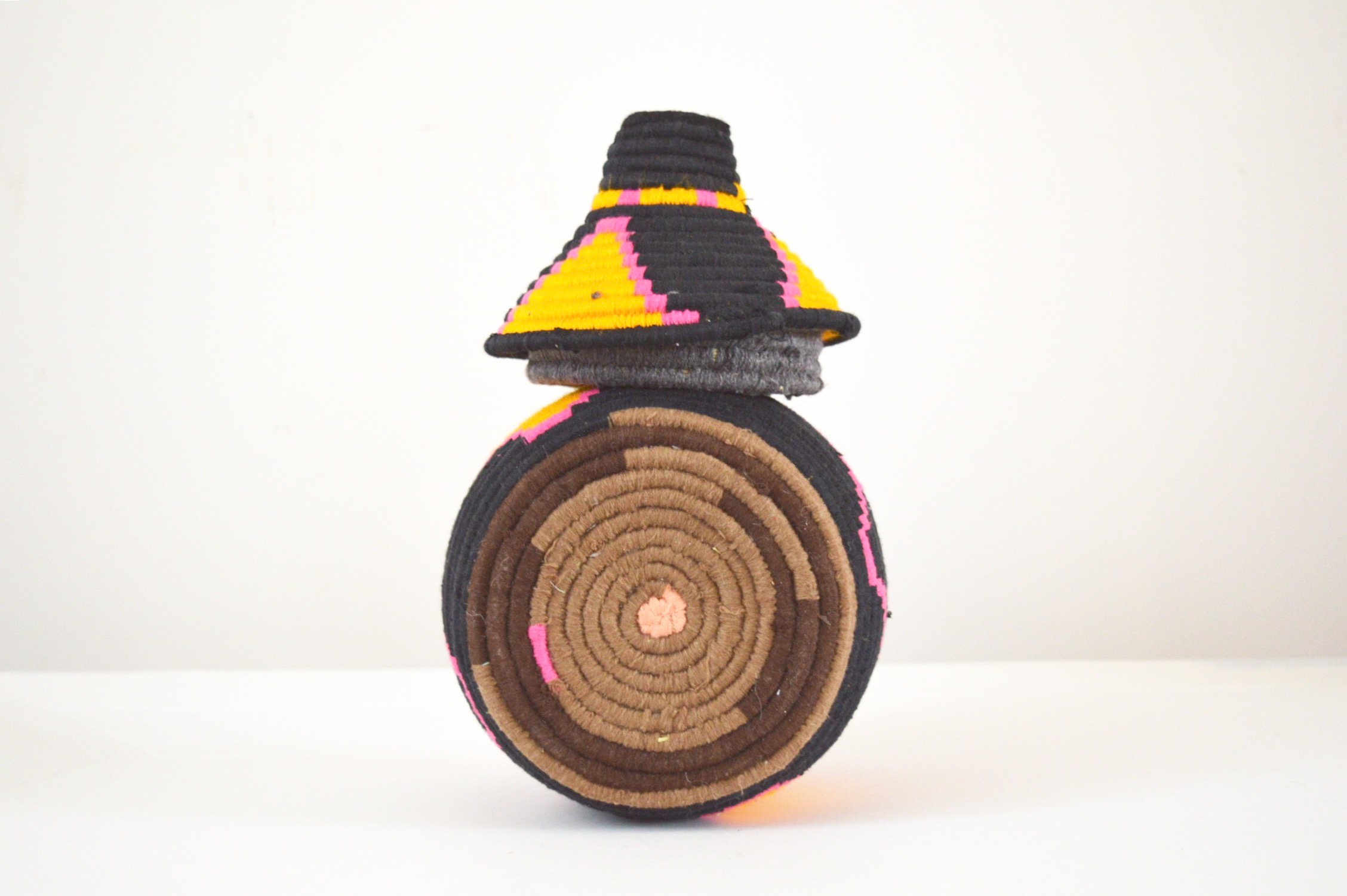 Berber Basket Handwoven Vintage Moroccan Wool Lidded Basket