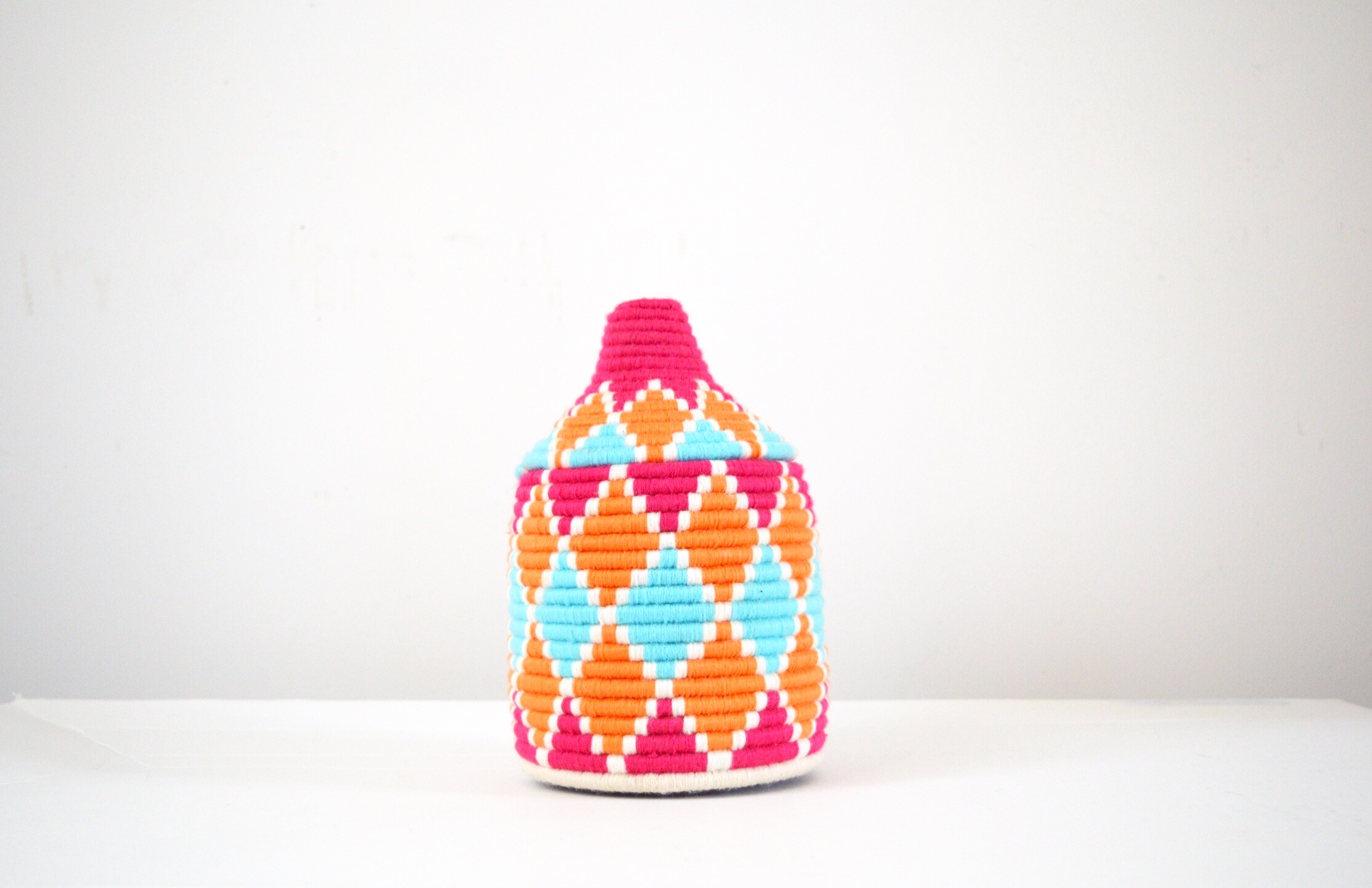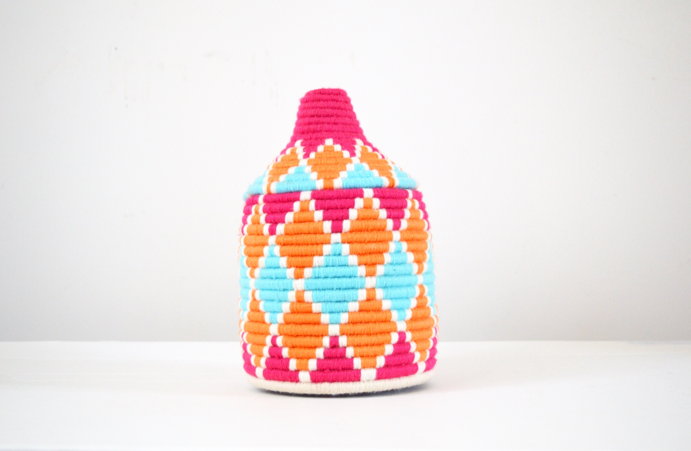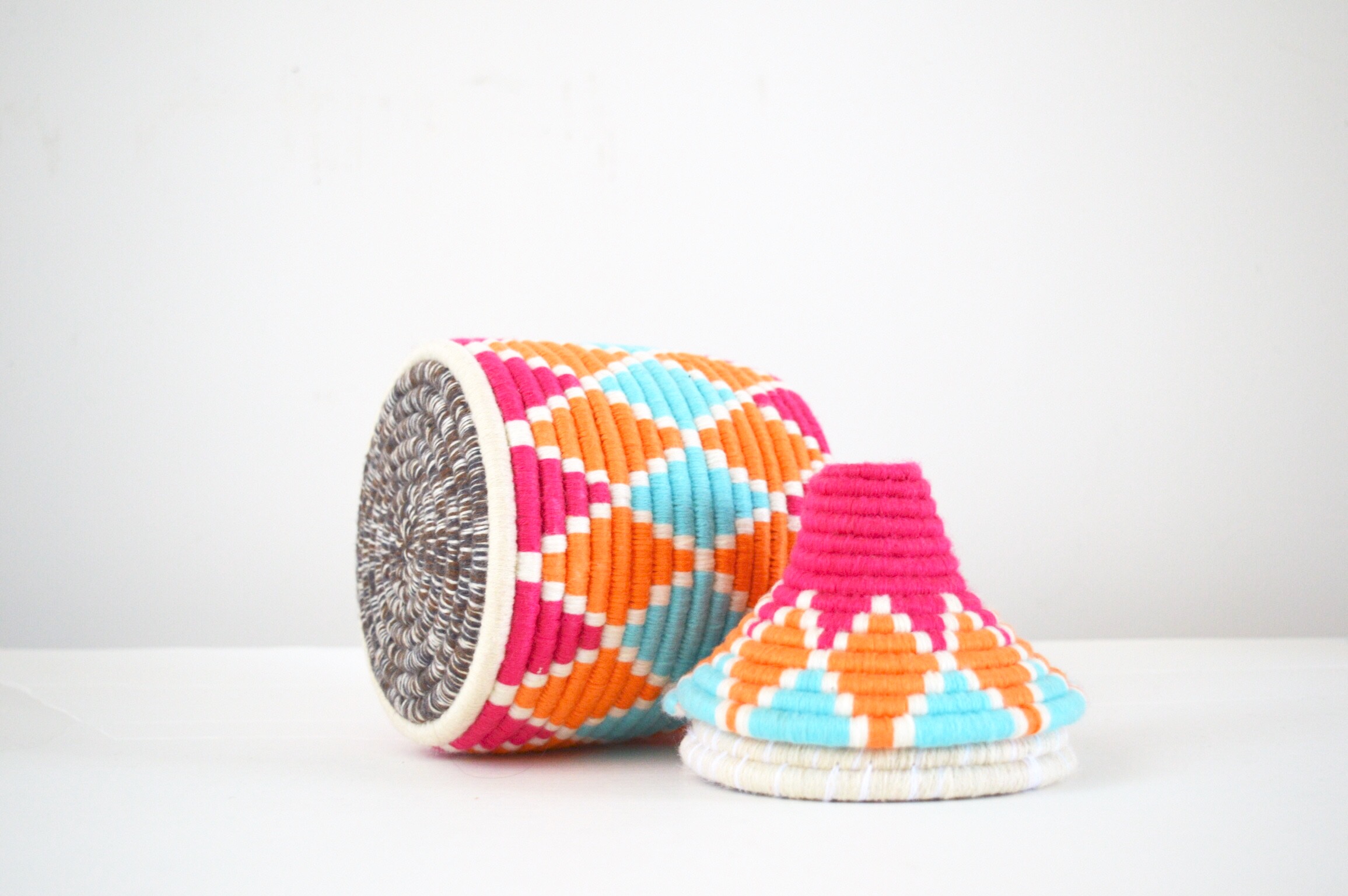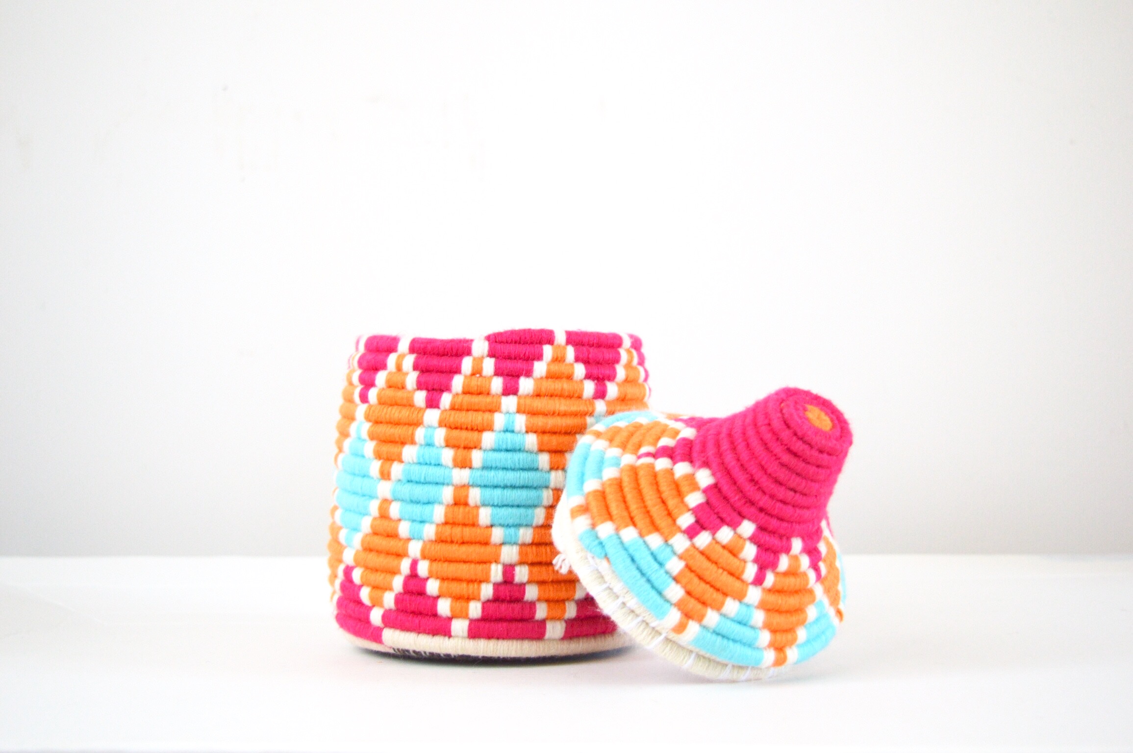 Berber Basket Handwoven Vintage Moroccan Wool Lidded Basket