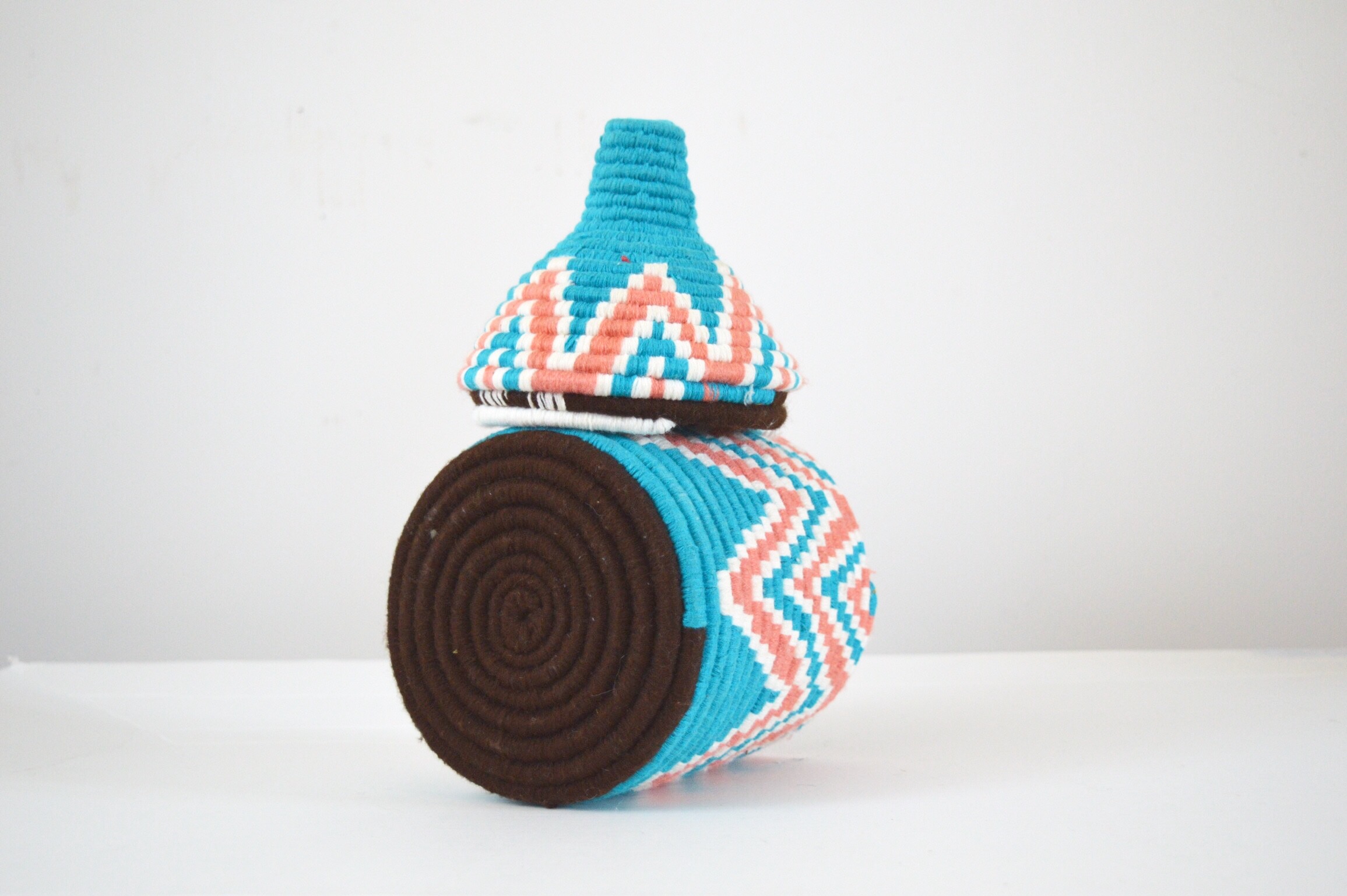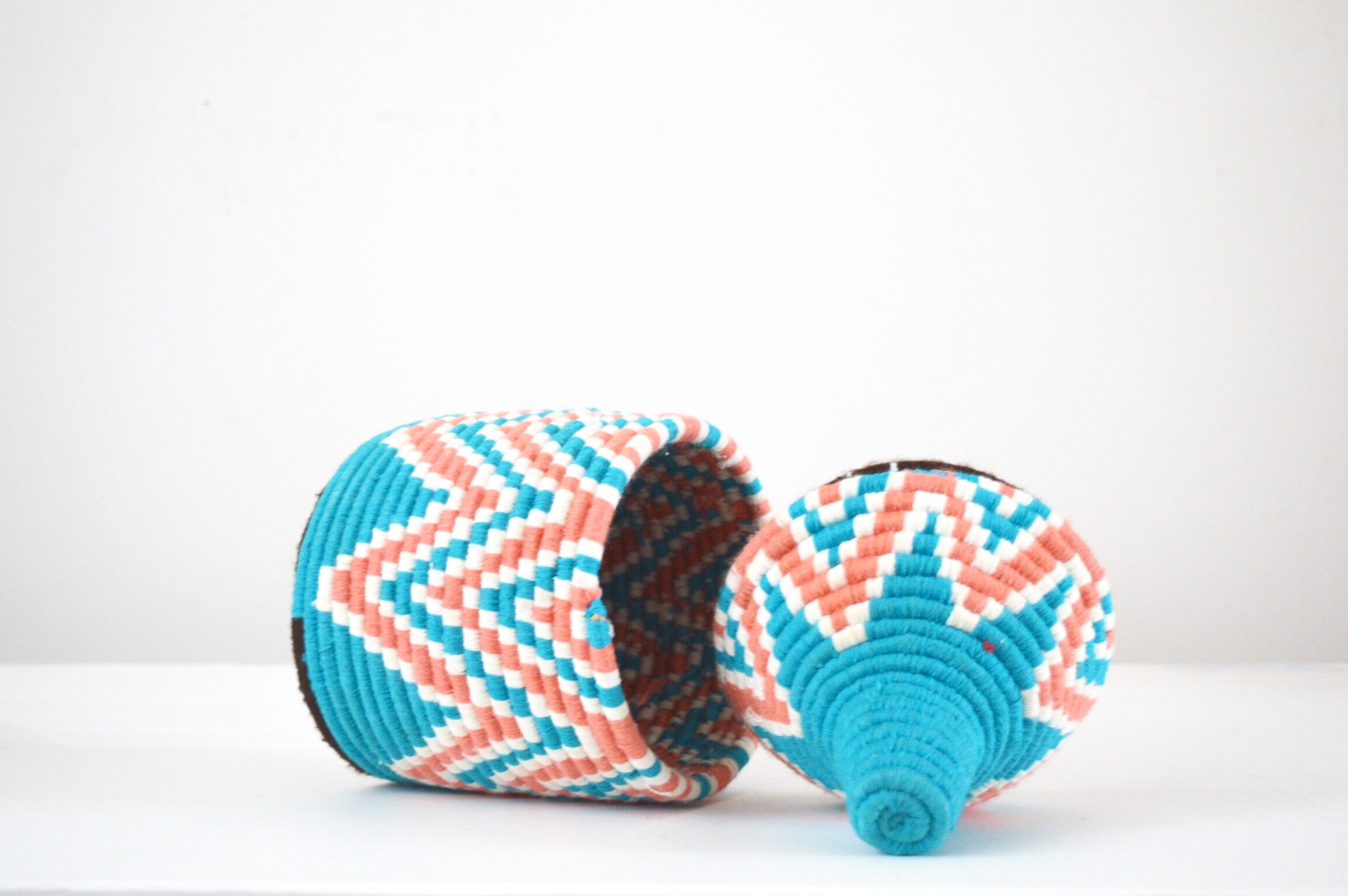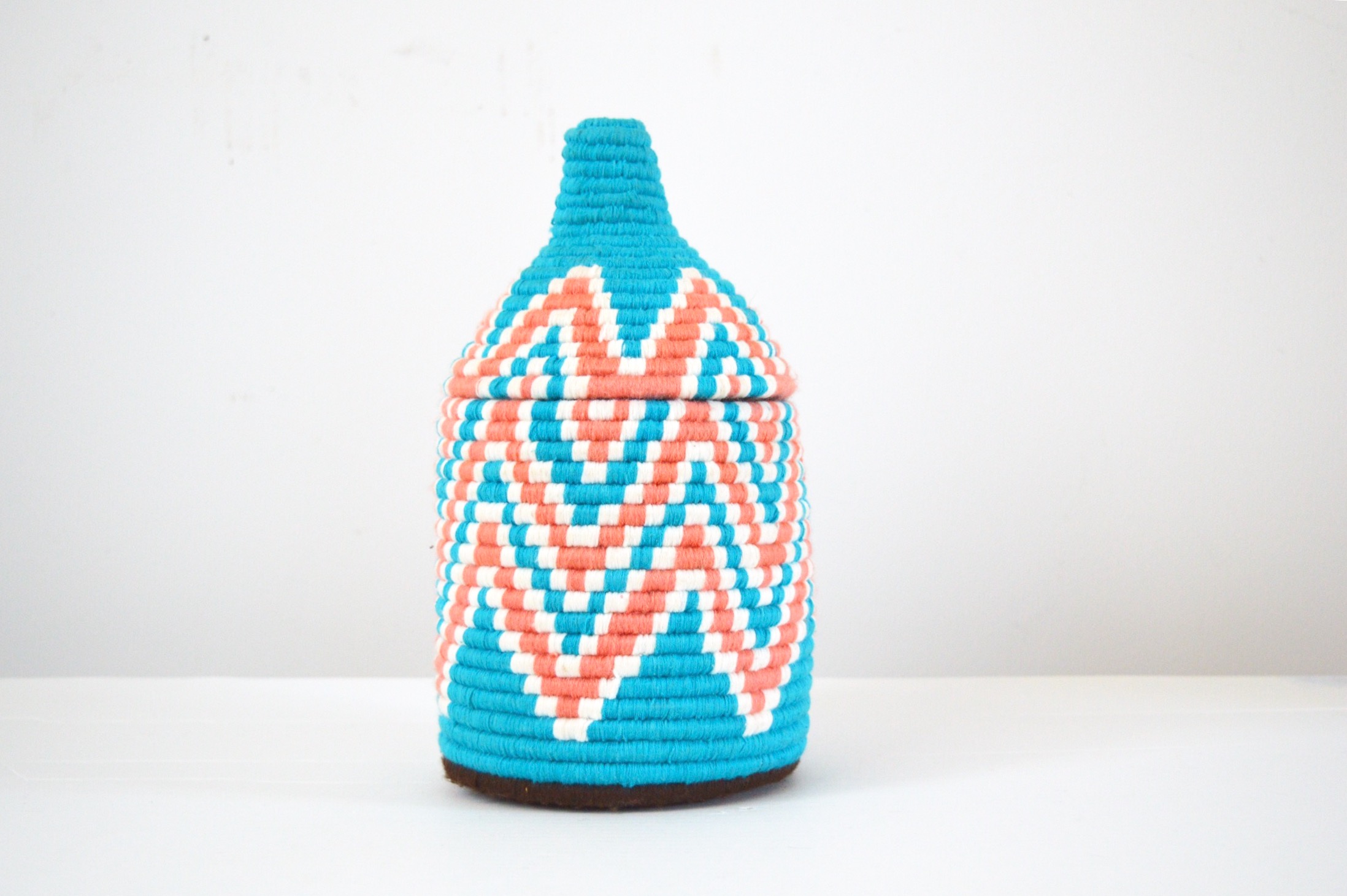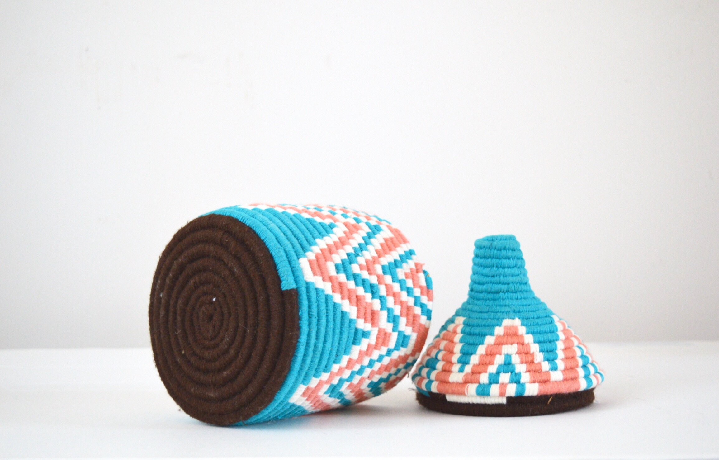 Berber Basket Handwoven Vintage Moroccan Wool Lidded Basket