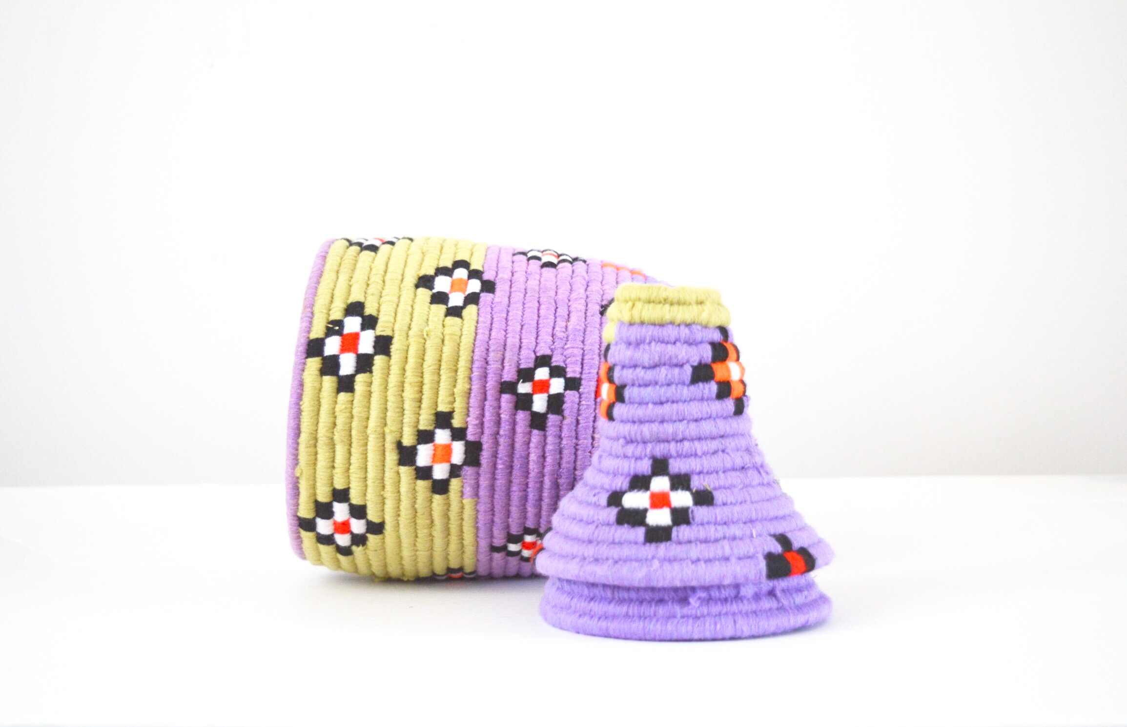 SOLD SOLD SOLD Berber Basket Handwoven Vintage Moroccan Wool Lidded Basket